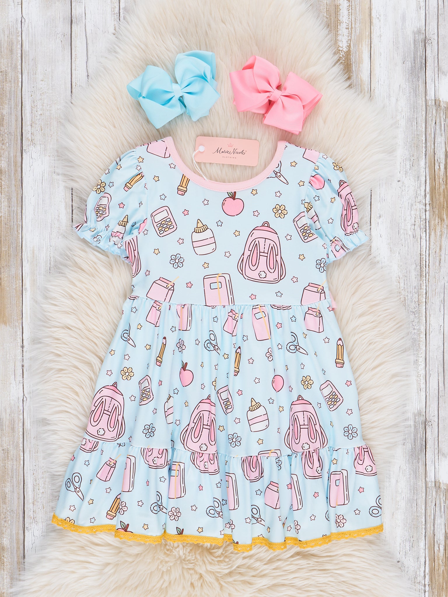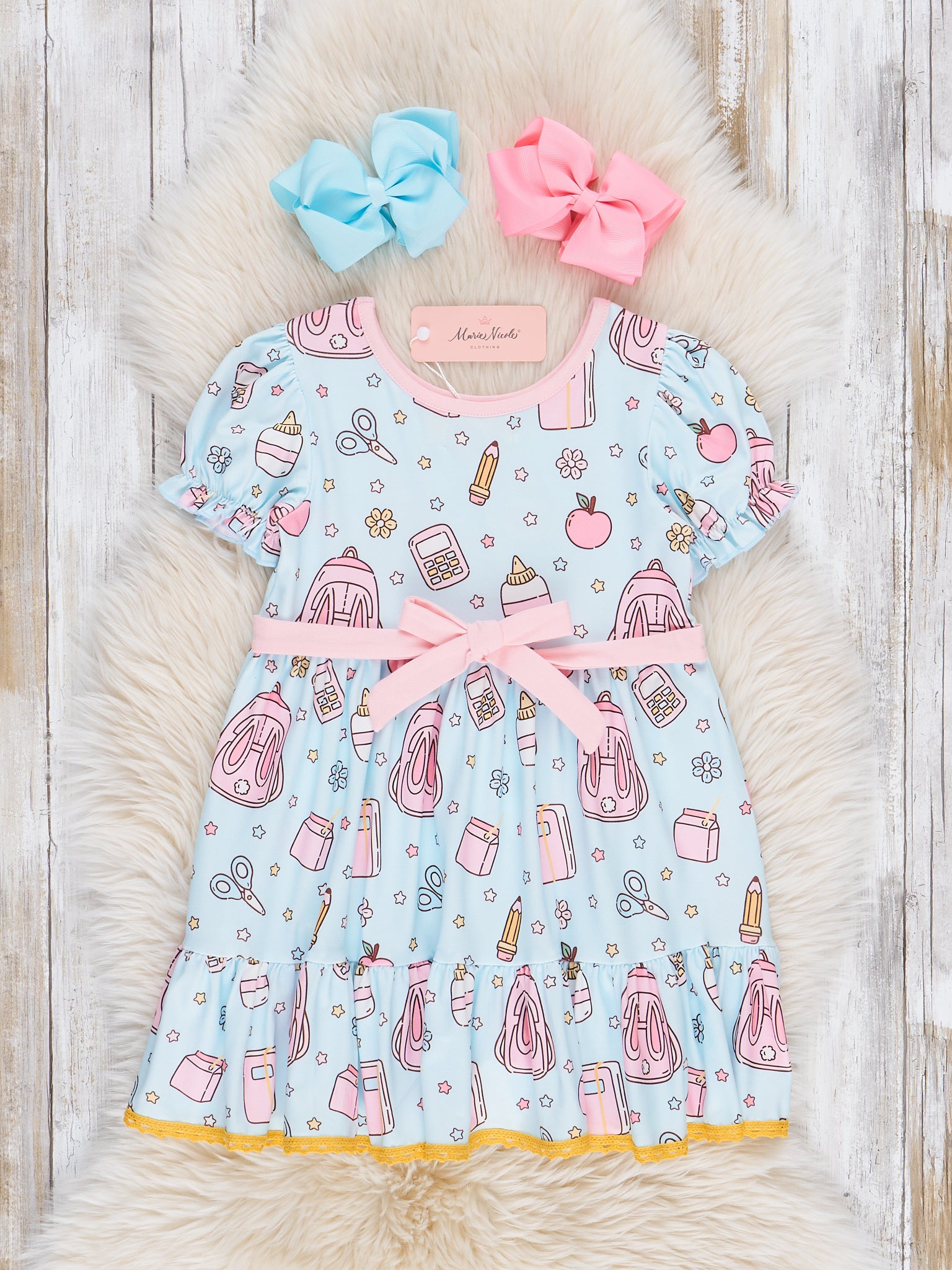 The Off to Class Ruffle Dress is a polished and playful piece that’s perfect for picture day, classroom fun, or any school-day adventure. Featuring sweet ruffle and bow details and classic back-to-school charm, this dress from Marie Nicole Clothing blends timeless style with all-day comfort. Soft, breathable fabric makes it easy to wear from morning bell to afternoon play.