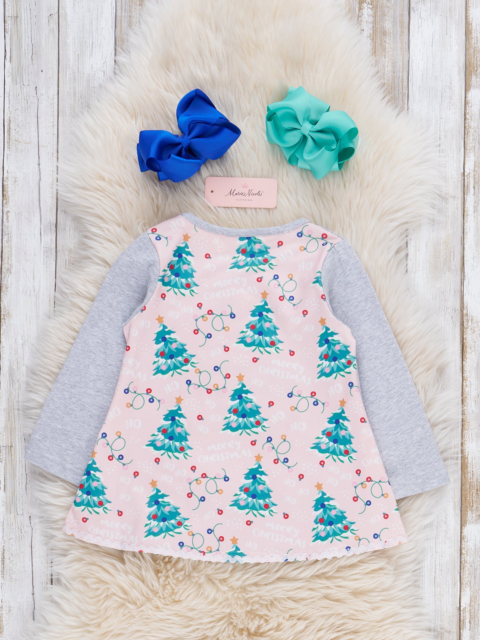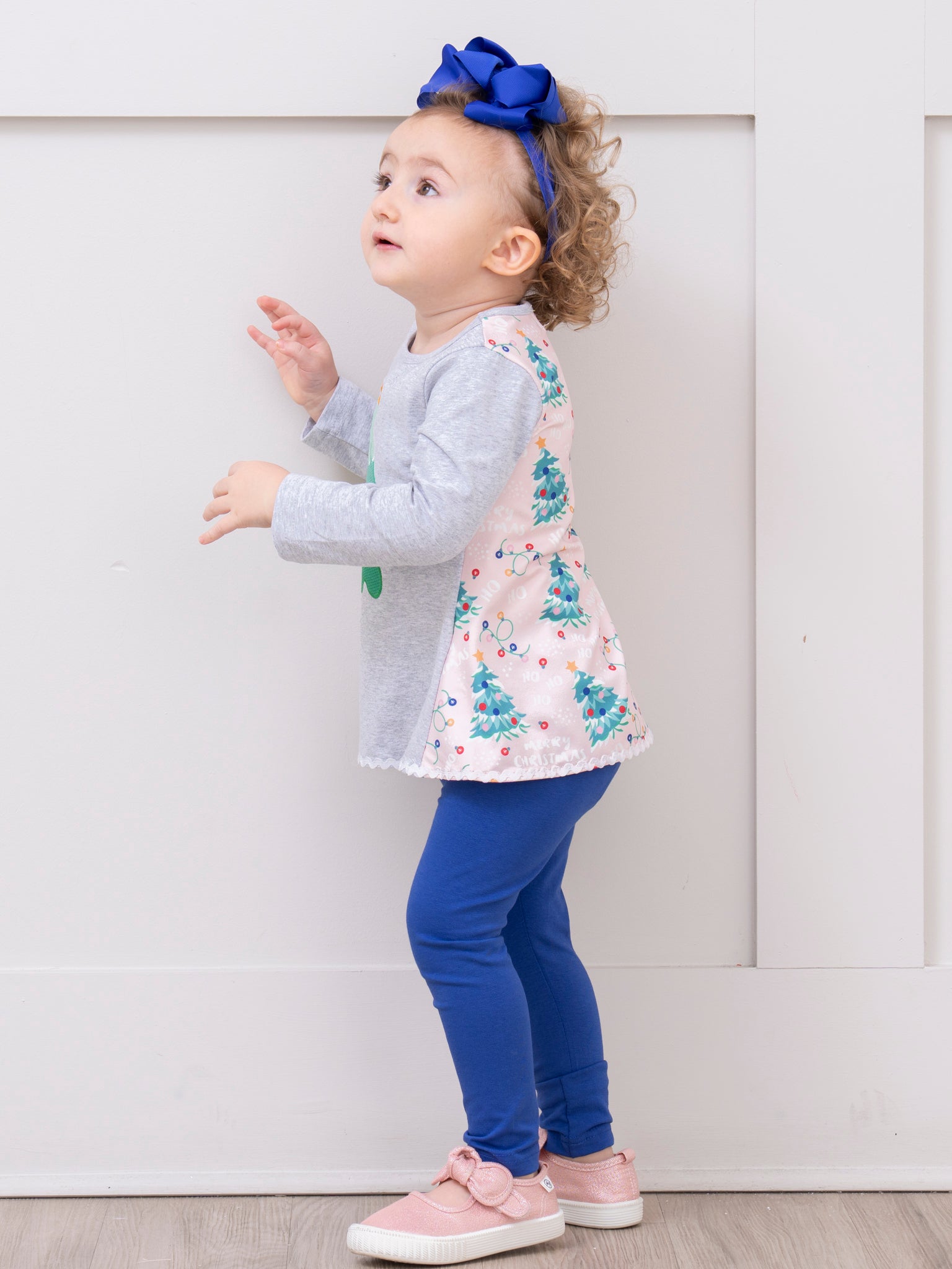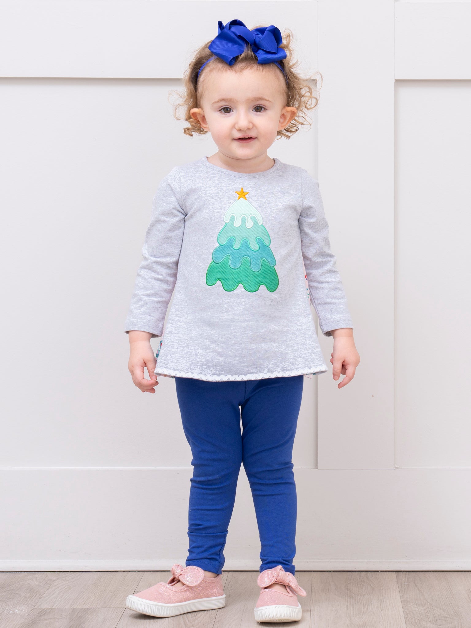 The Christmas Cheer Tree Embroidered Outfit is a festive set featuring a top with a lively embroidered tree design and solid matching leggings designed by Marie Nicole Clothing, perfect for celebrating the holiday season. This ensemble is designed for cheer, comfort, and easy movement, making it a great choice for parties, photos, and joyful family gatherings.