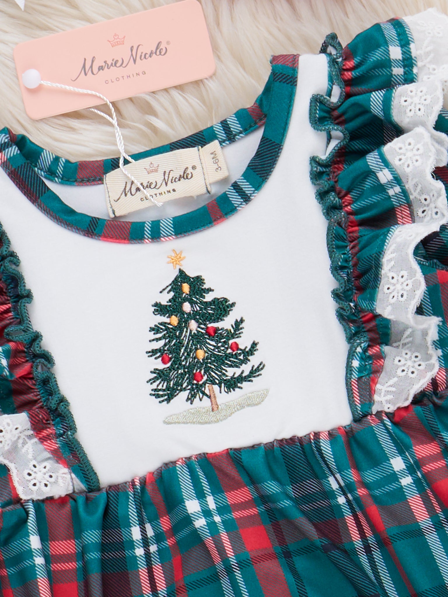 The Evergreen Plaid Embroidered Romper blends classic style with charming seasonal details, featuring a timeless plaid pattern, dainty ruffle trim, and a festive embroidered accent on the bodice. Expertly crafted by Marie Nicole Clothing, this romper is designed for comfort and easy dressing, making it a perfect choice for holiday gatherings and joyful moments throughout the season.