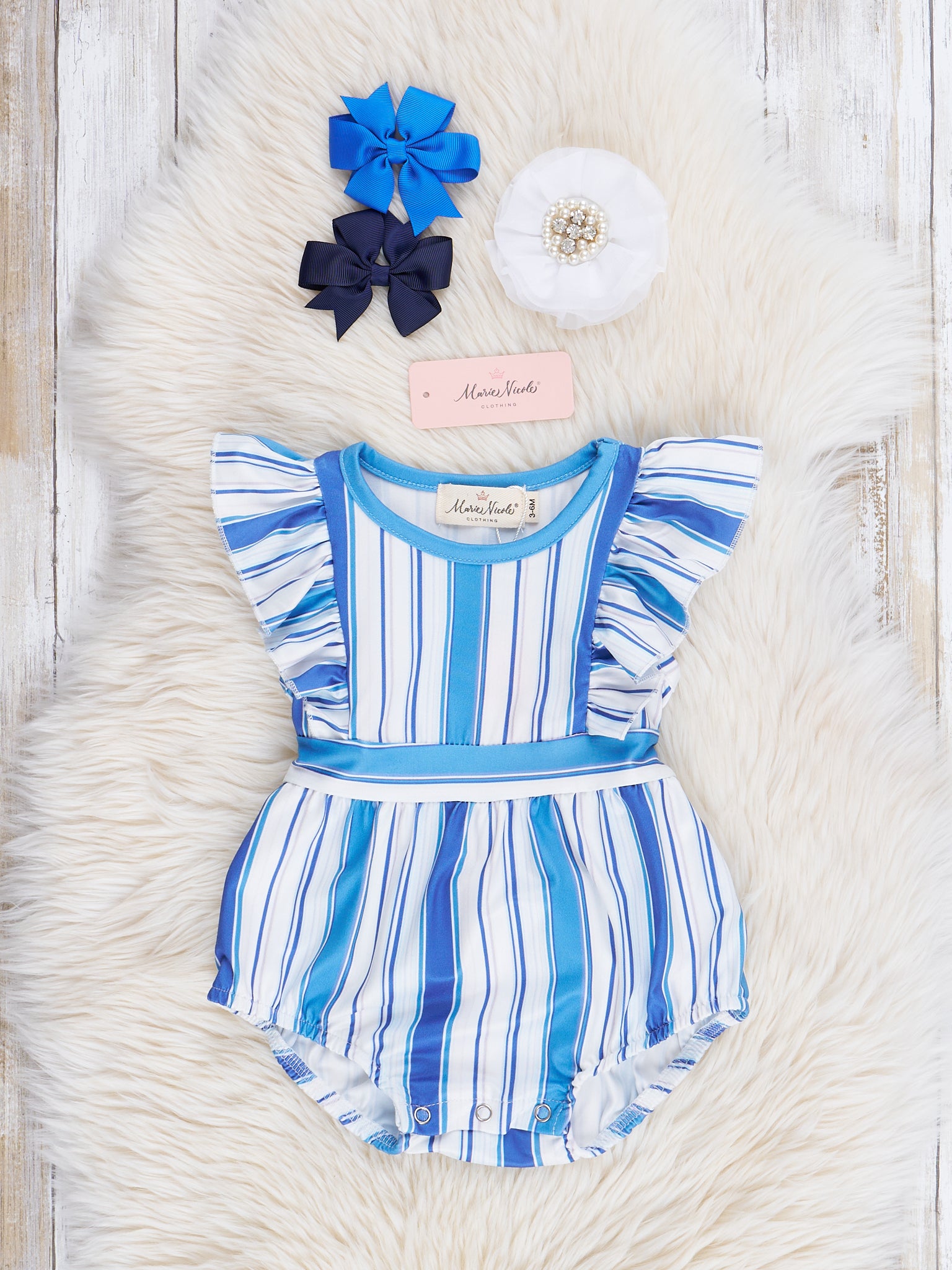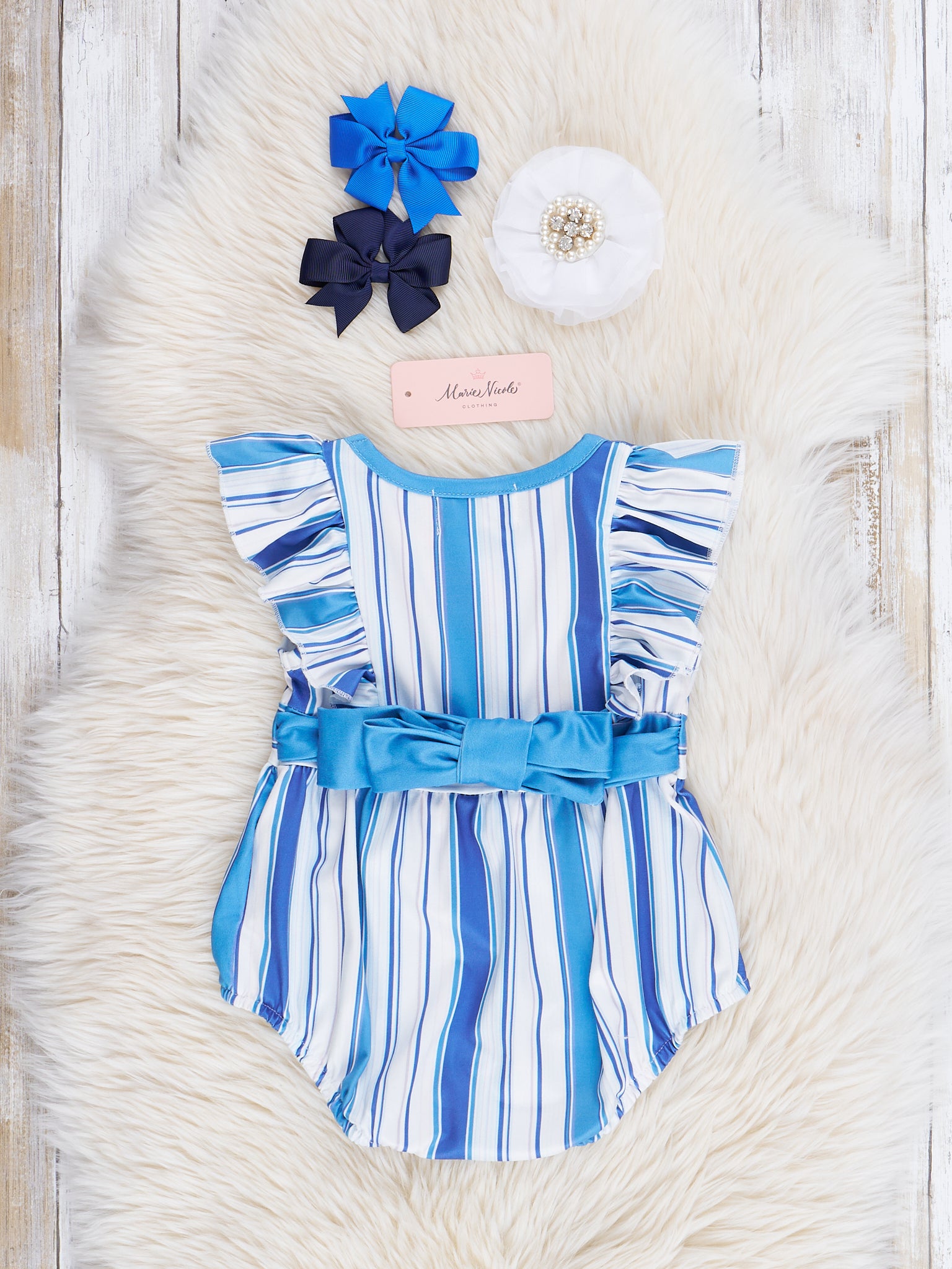 All The Blues Striped Ruffle Bubble