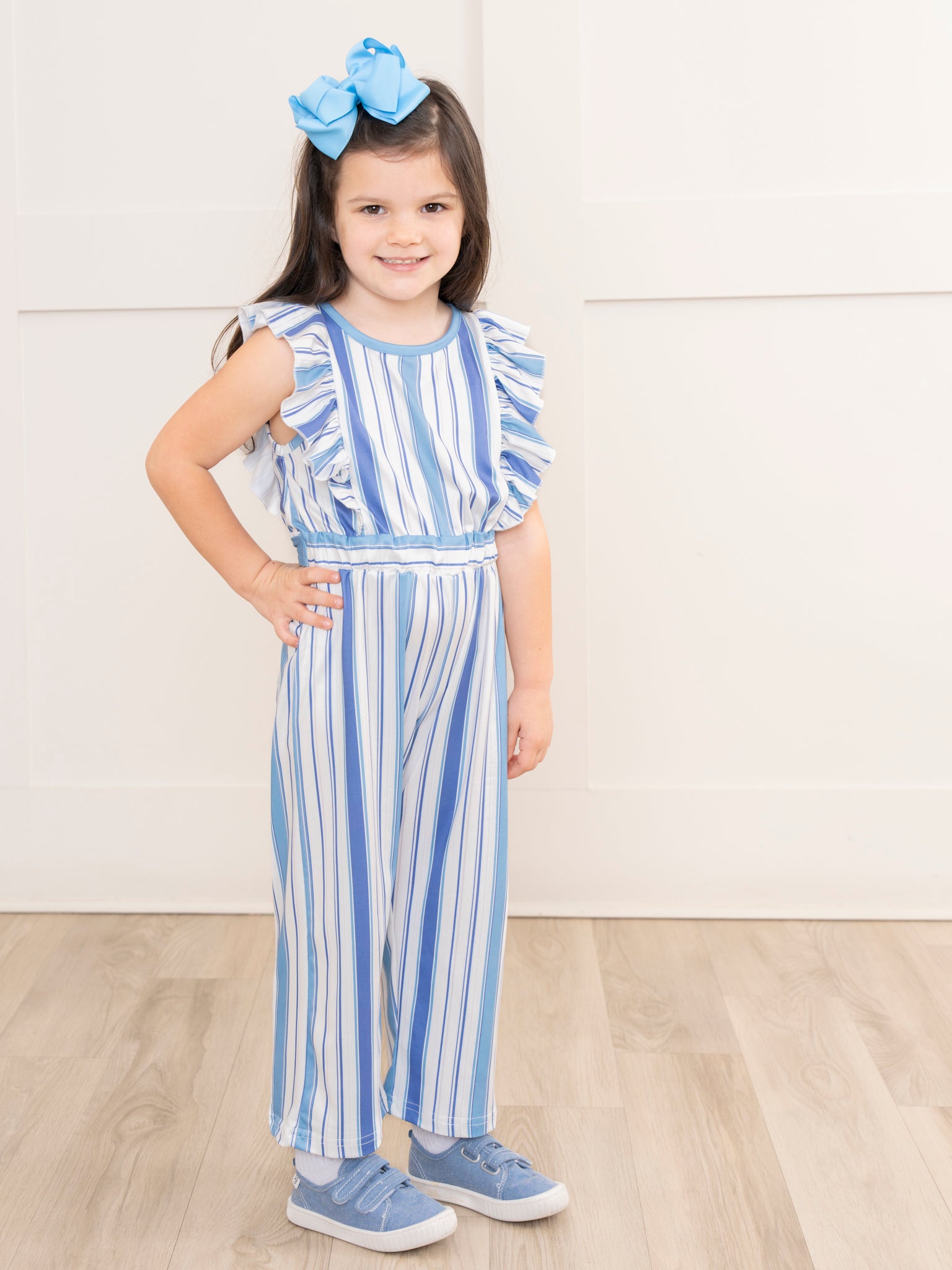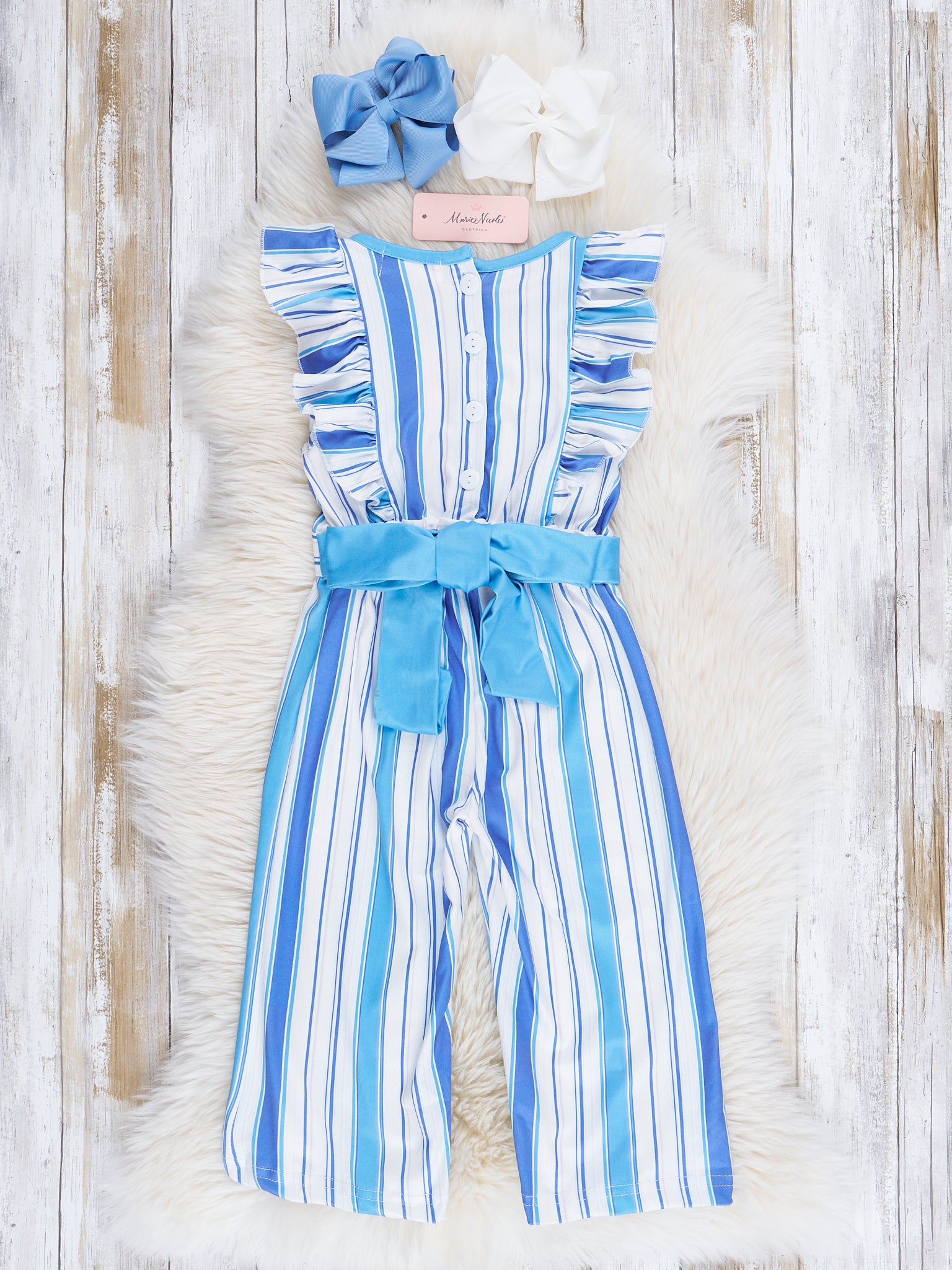 All The Blues Striped Ruffle Jumpsuit