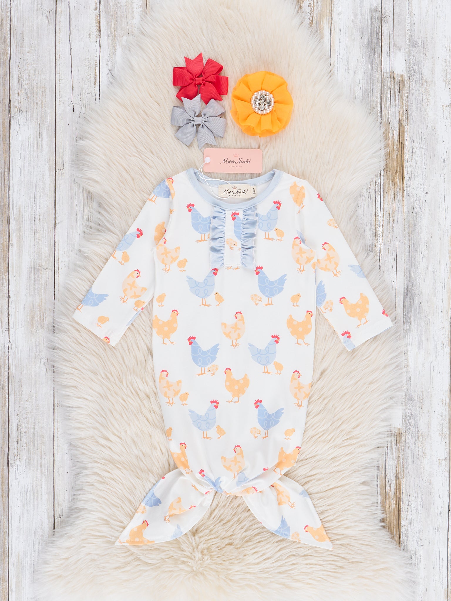 The Cozy Little Chick Knot Gown is a sweet and playful choice that’s perfect for everyday adventures and special occasions. Featuring charming prints and soft ruffle details, this gown from Marie Nicole Clothing blends timeless style with comfortable wearability. Made from breathable, lightweight fabric, it’s ideal for playtime, family gatherings, and picture-perfect moments.