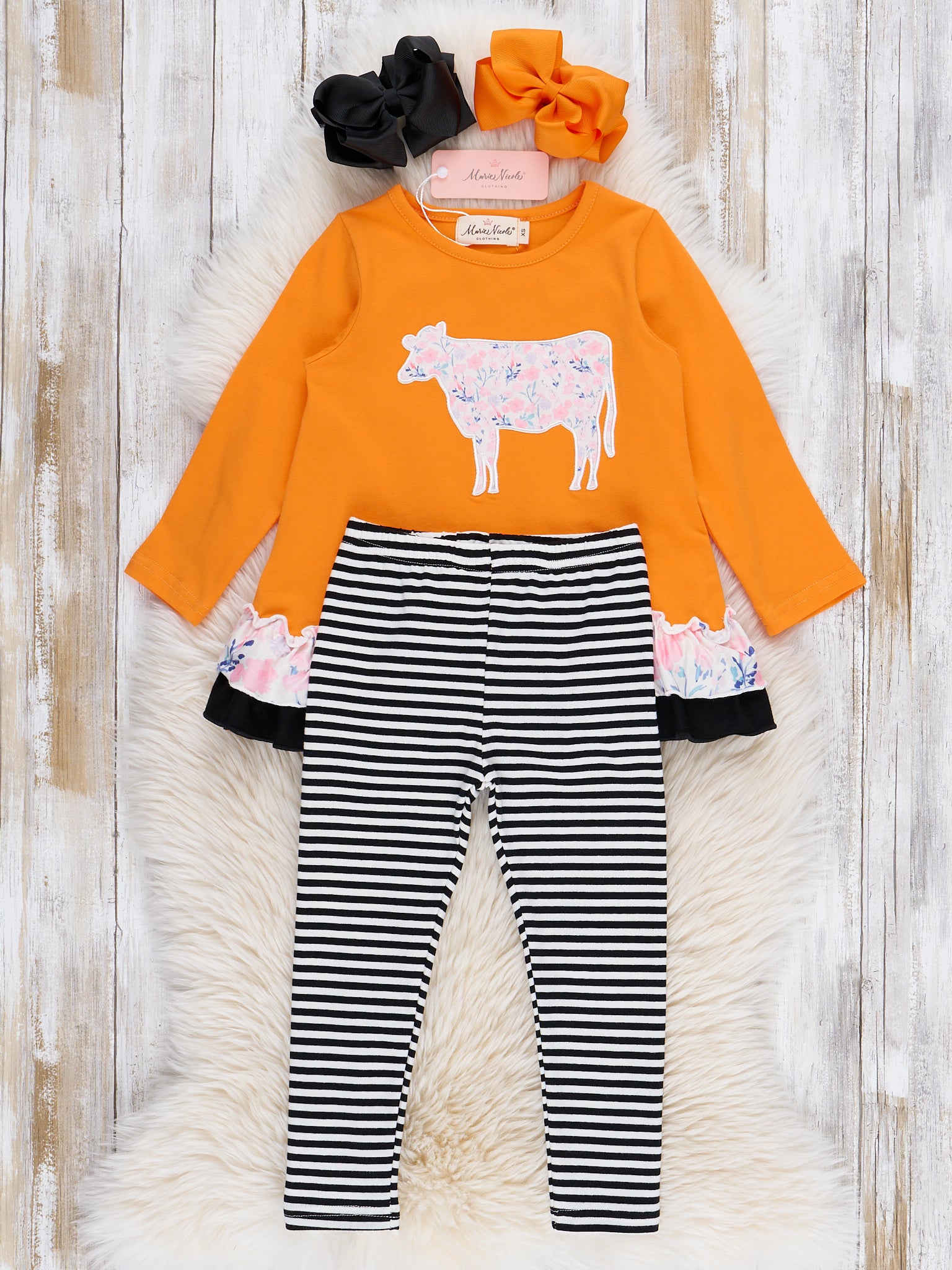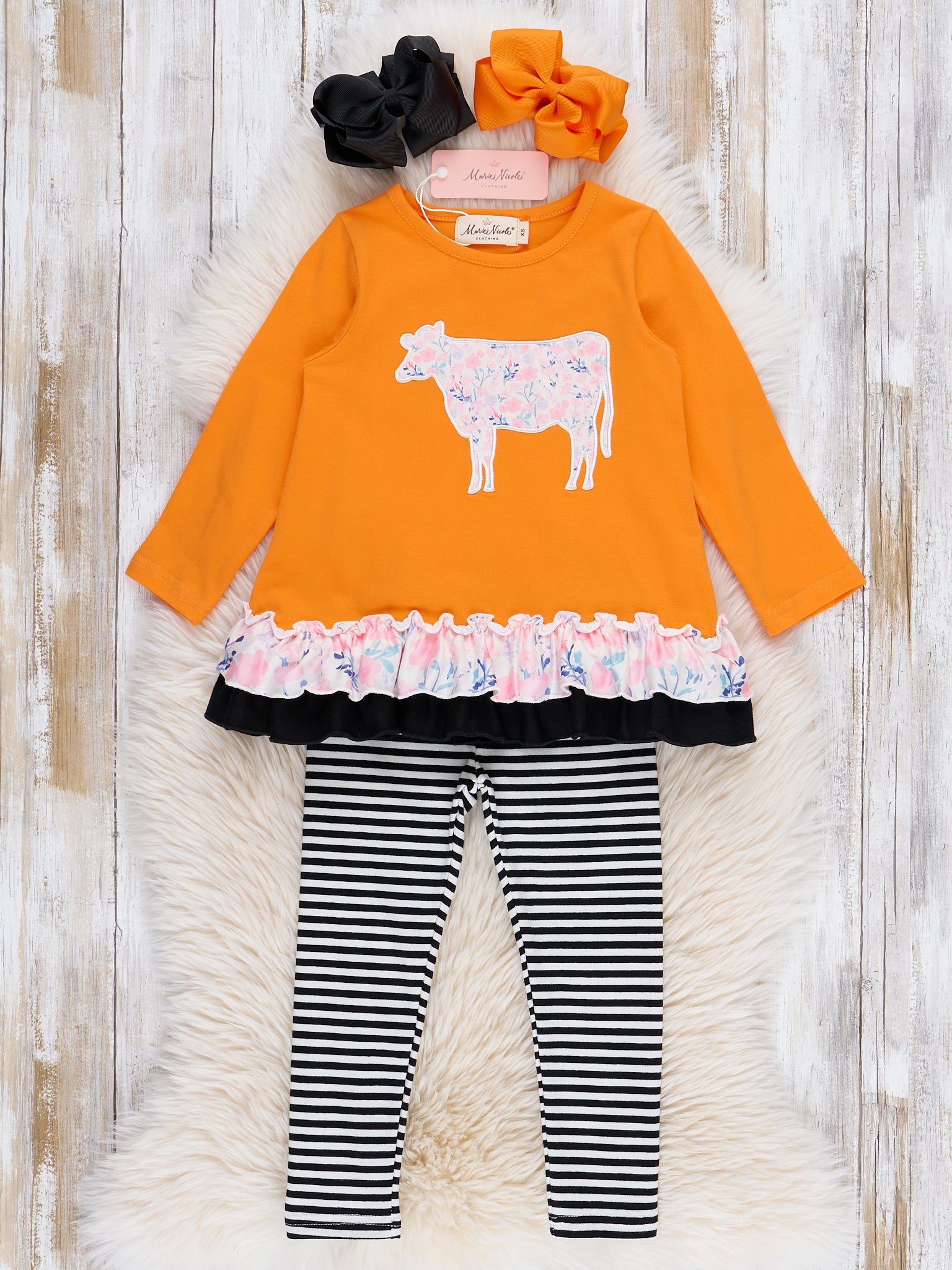 Pasture Pal Embroidered Ruffle Cow Outfit