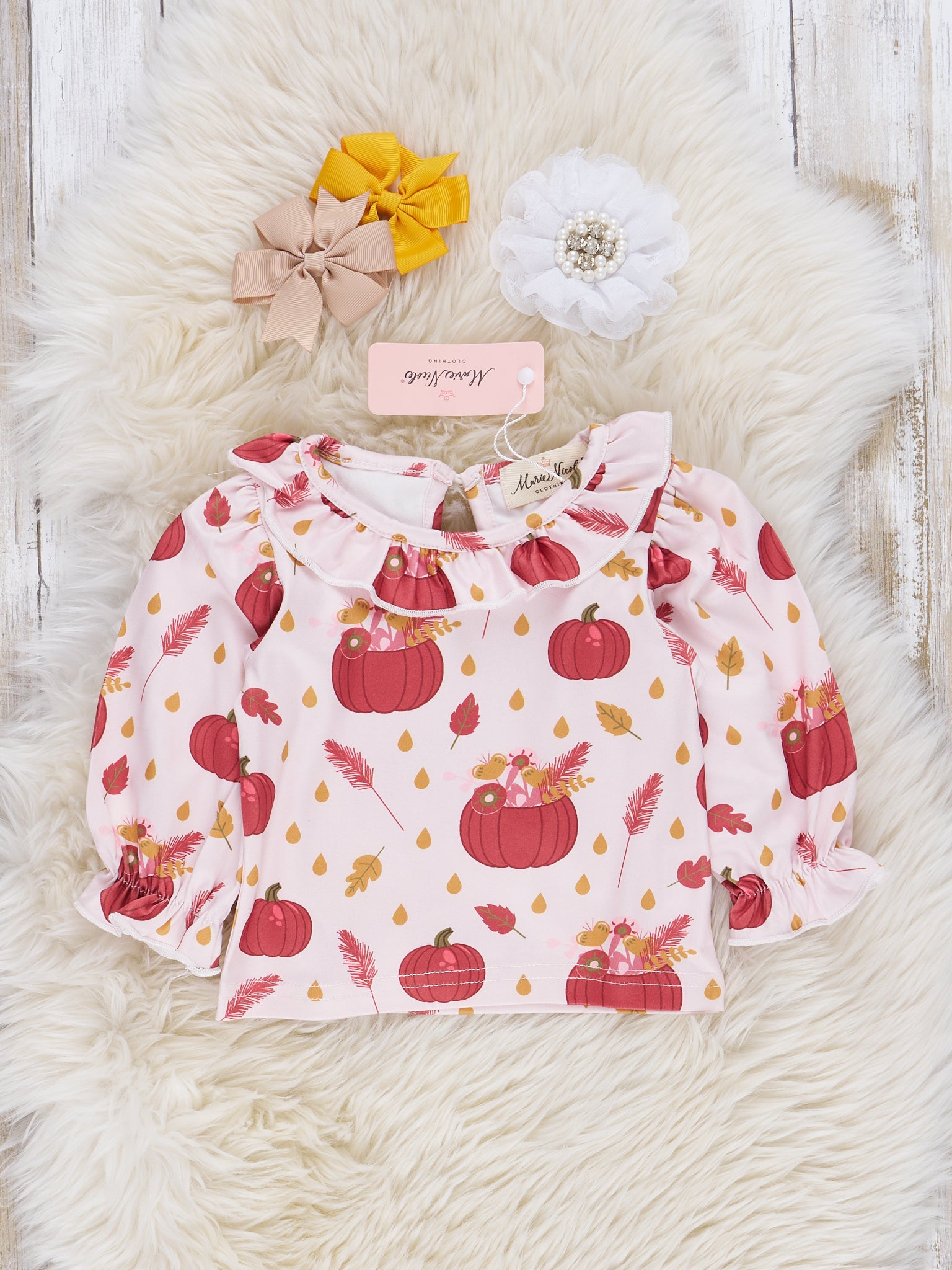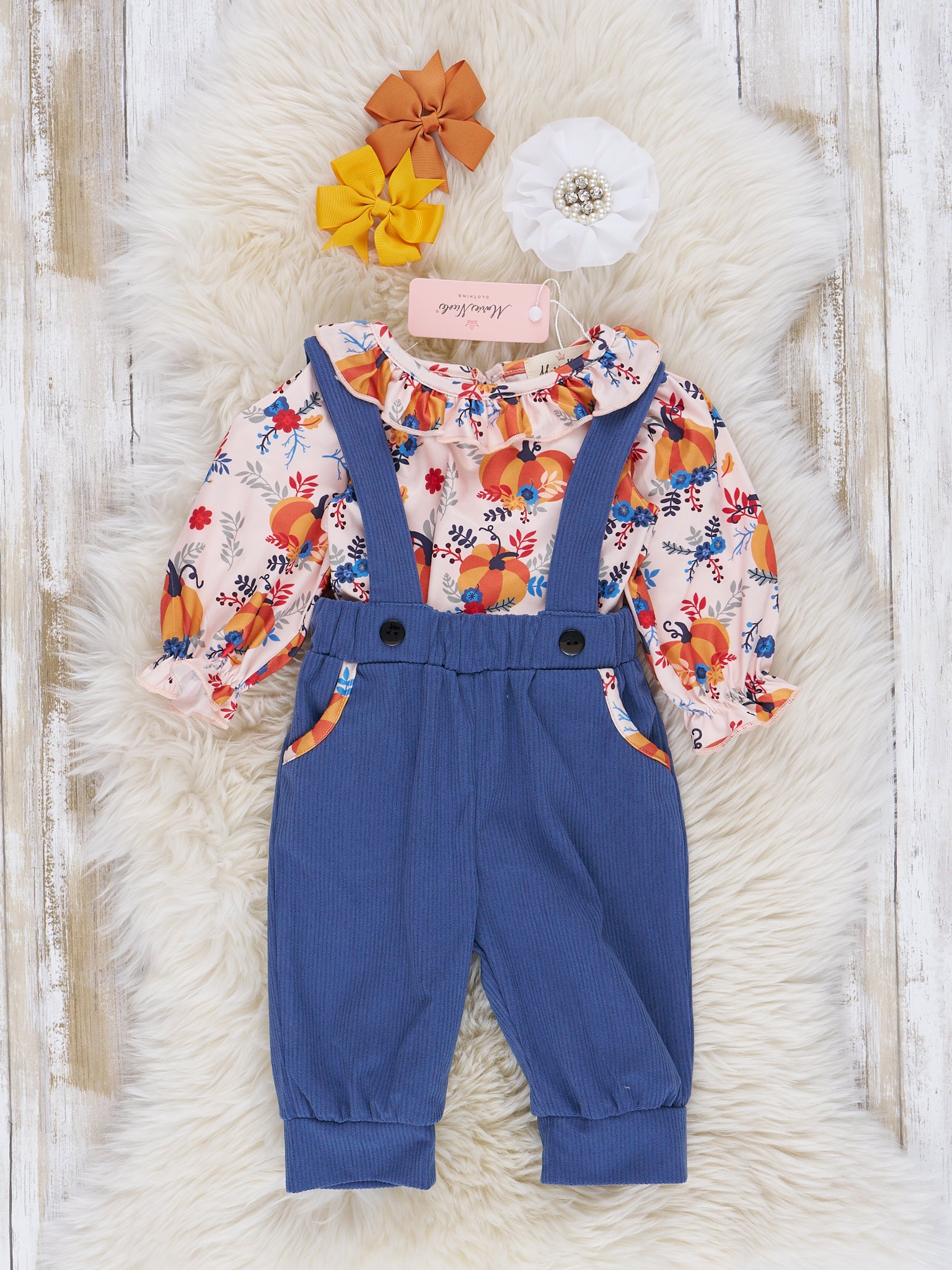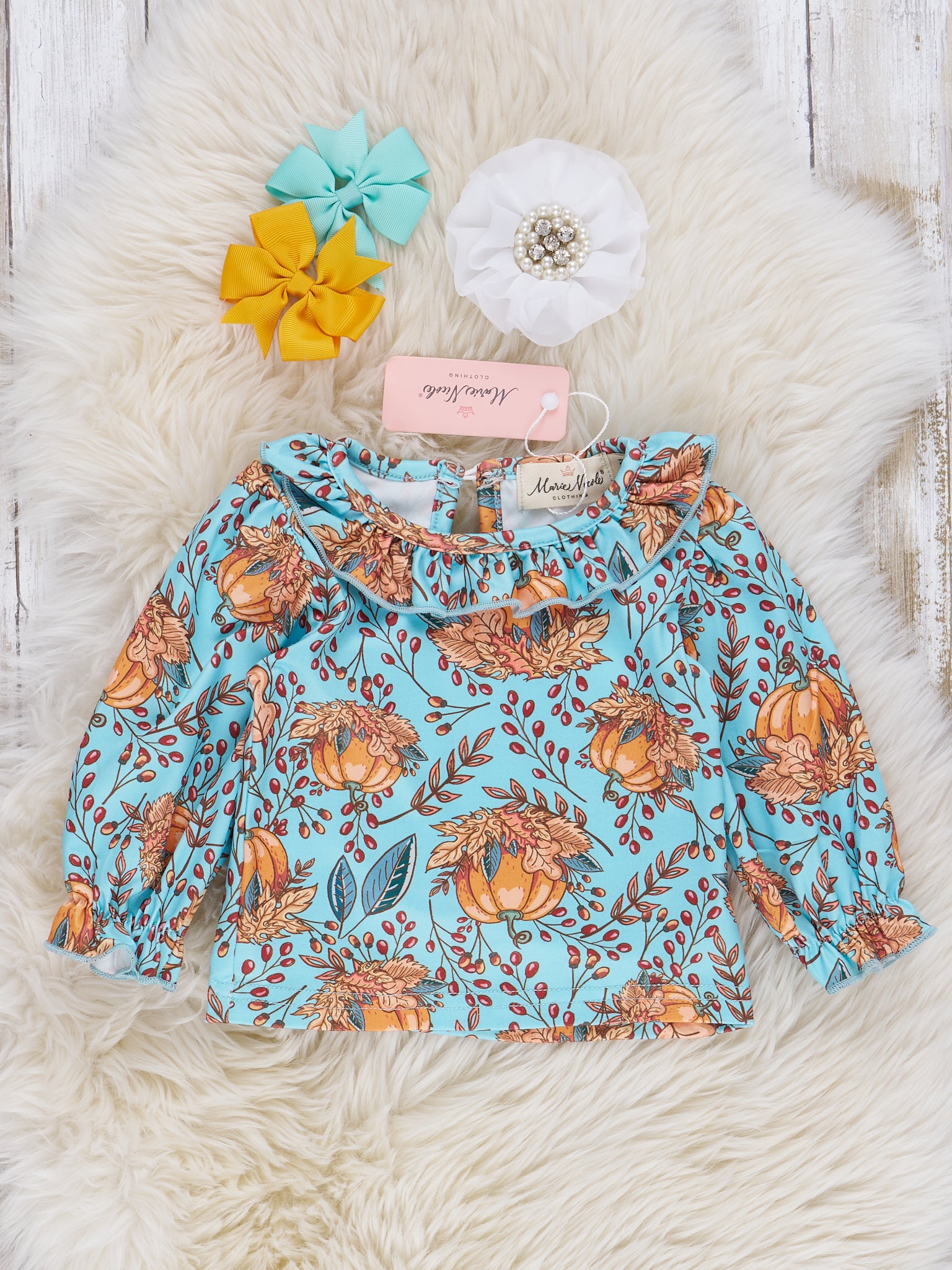 Teal & Coral Autumn Leaves Ruffle Outfit