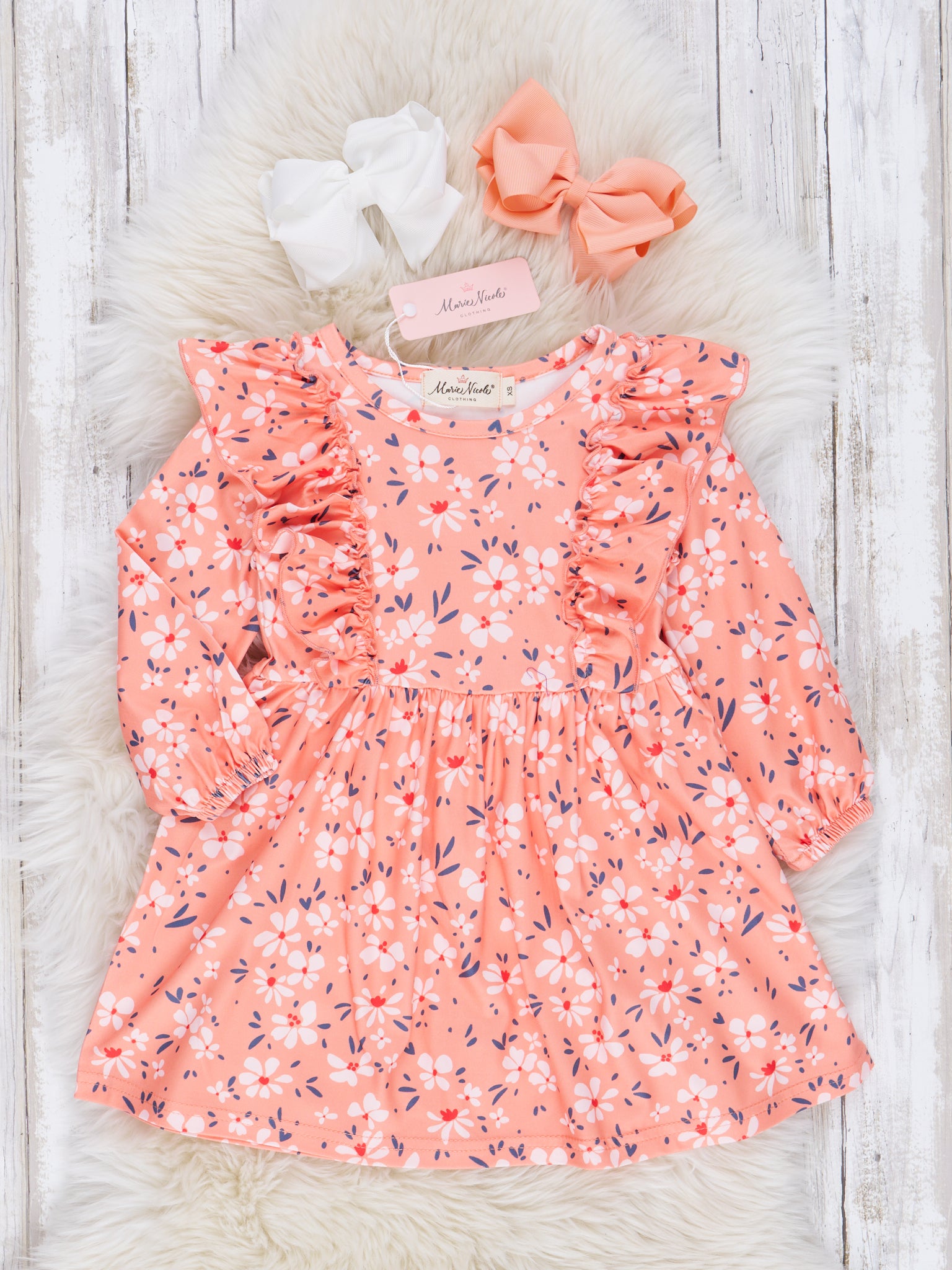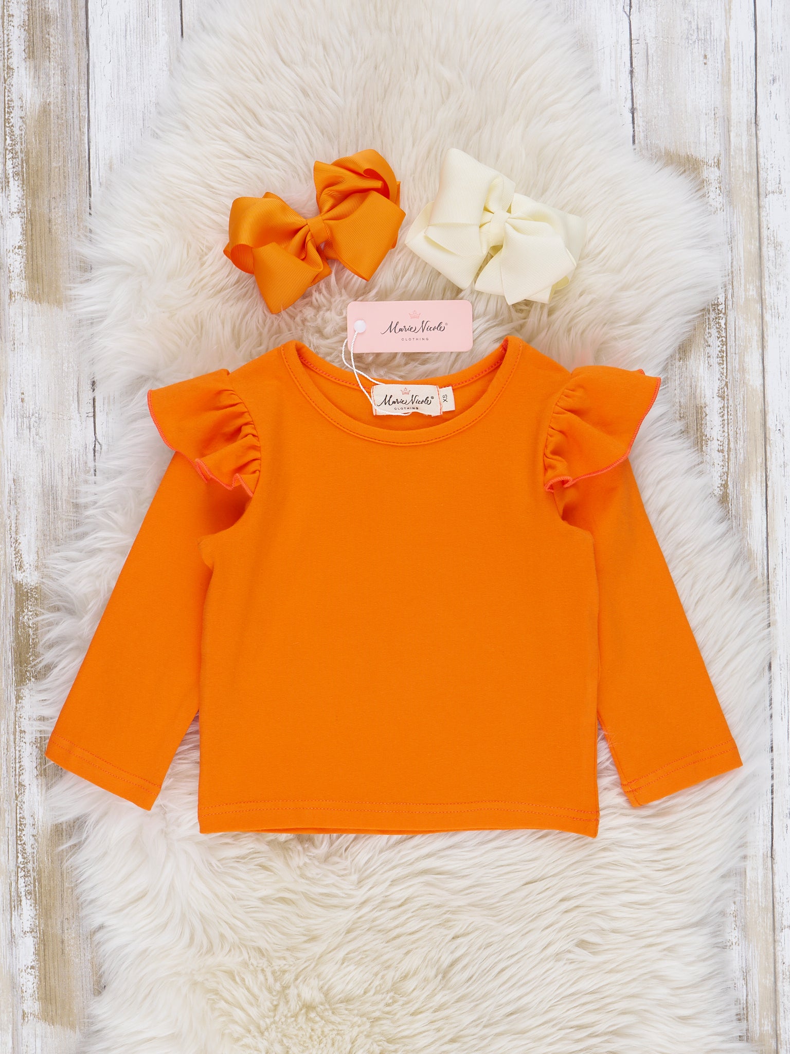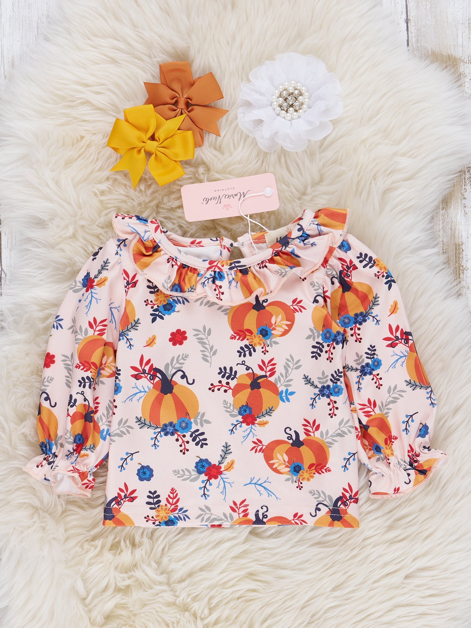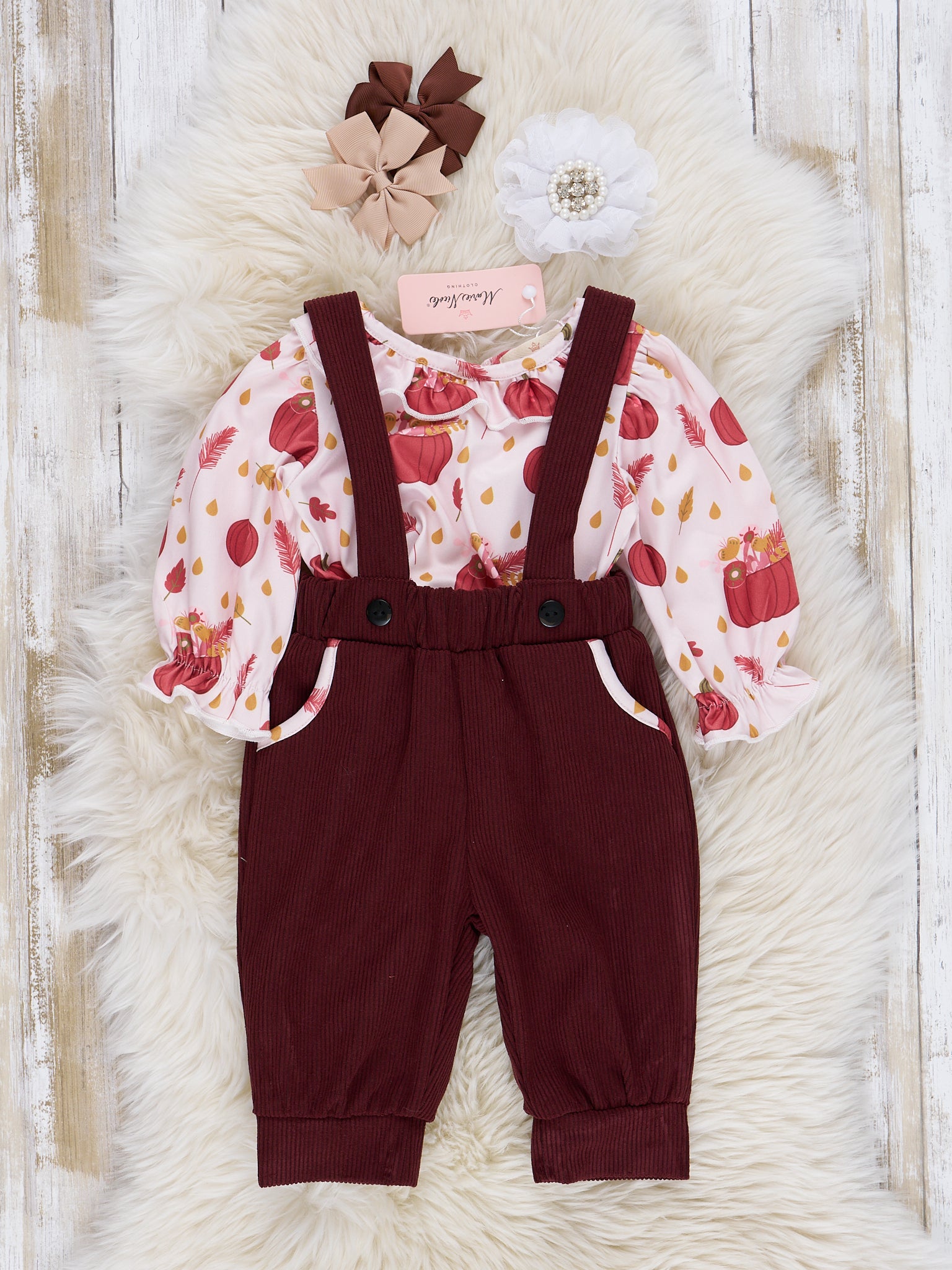 Teal & Coral Autumn Leaves Ruffle Outfit