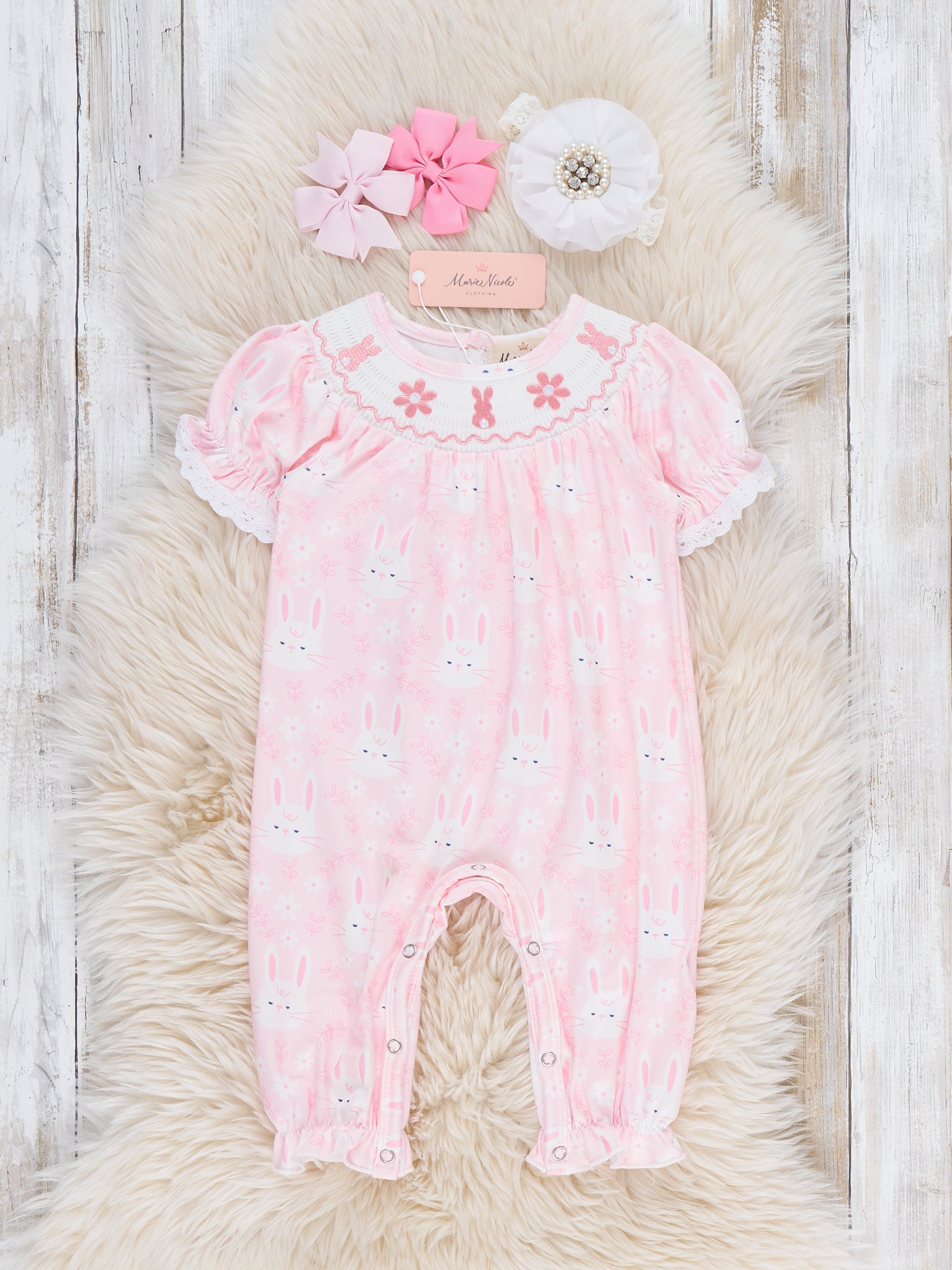 Hoppy Bunnies Smocked Ruffle Romper