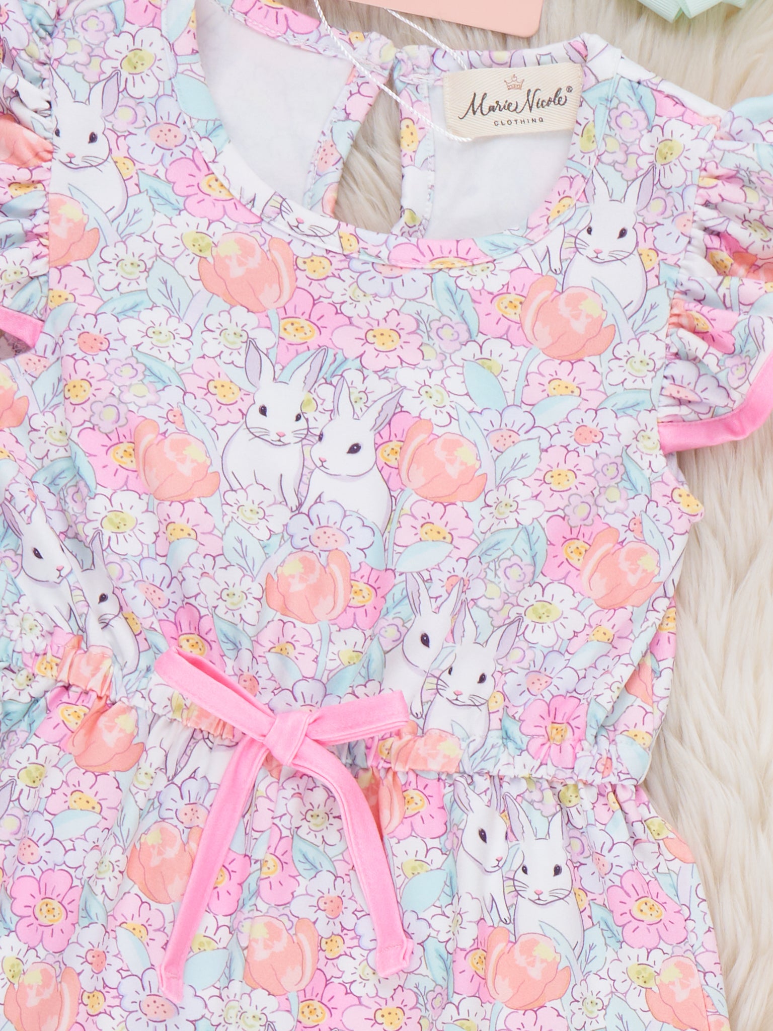 Rainbow Bunnies Embroidered Ruffle Dress