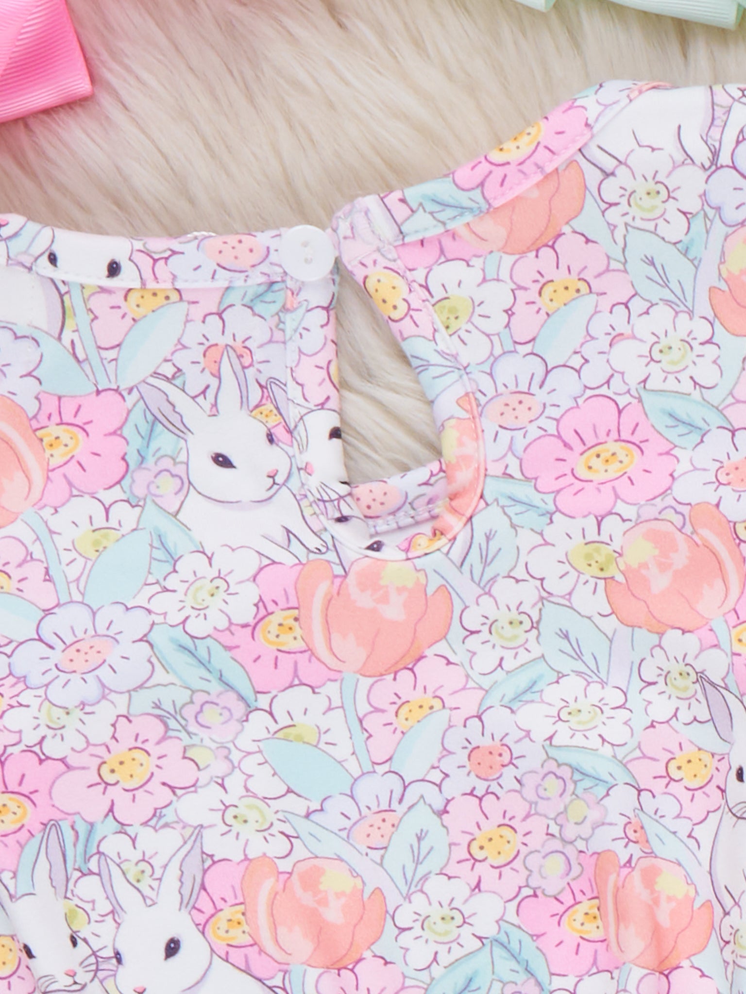 Rainbow Bunnies Embroidered Ruffle Bubble Romper
