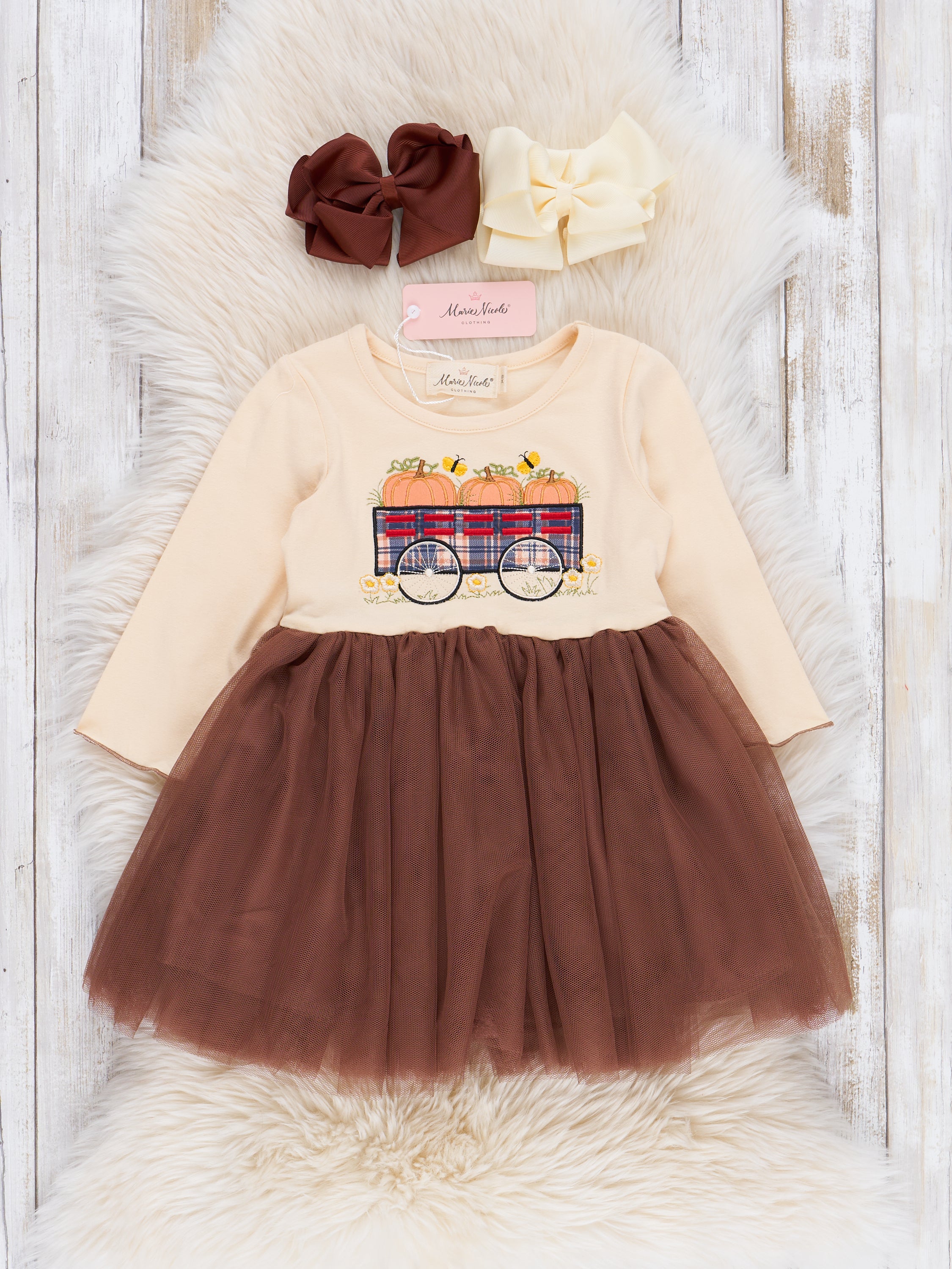 Brown Embroidered Pumpkin Wagon Tulle Dress