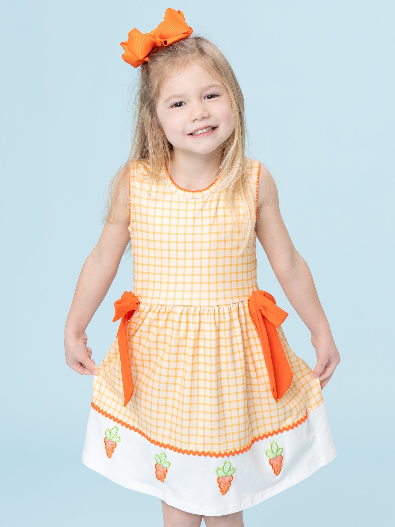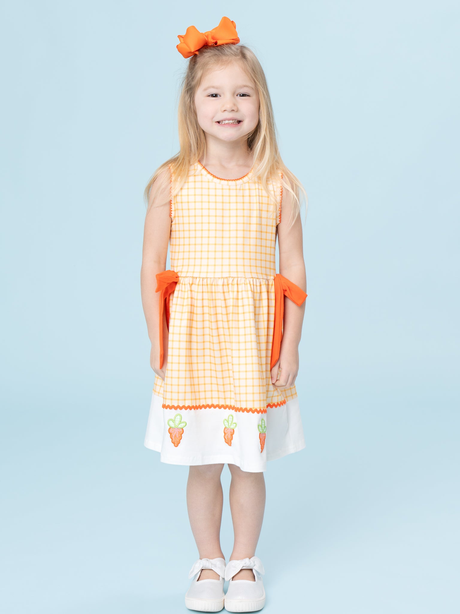 Sweet Carrot Kisses Embroidered Plaid Dress