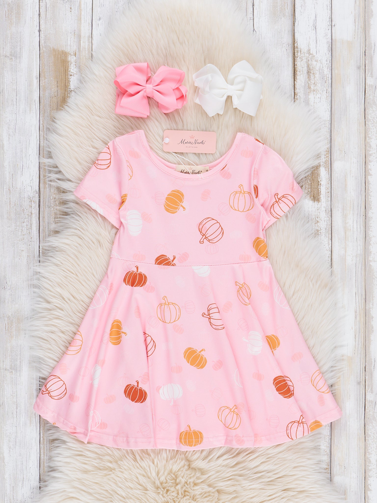 Ready to be worn casually or to your next social event, these dresses feature whimsical pumpkin scenery on a long-sleeve swing dress with five different color and print options.