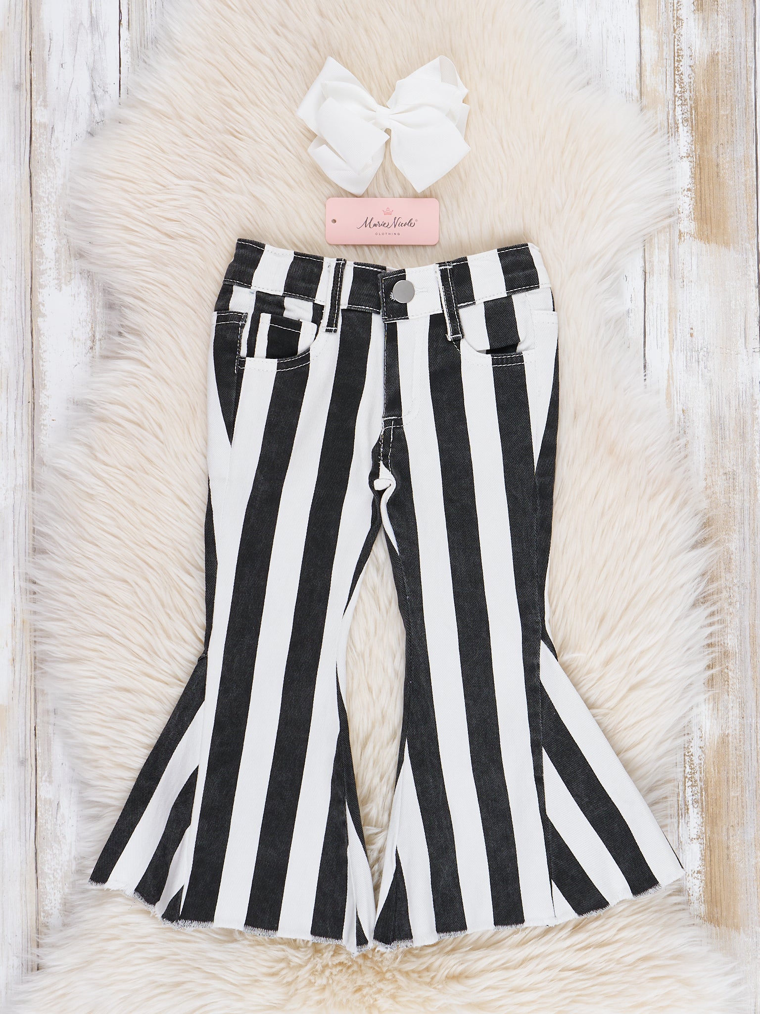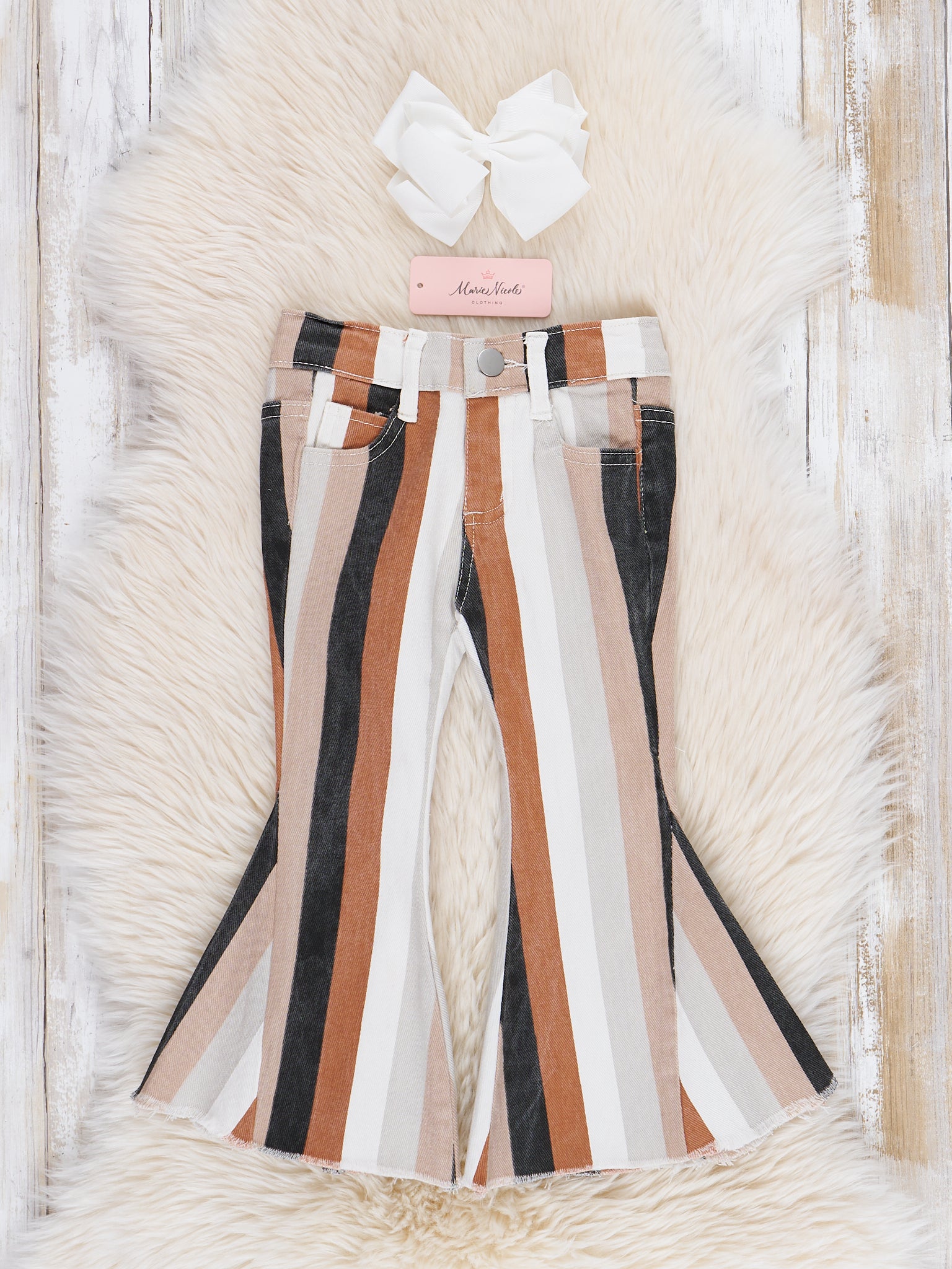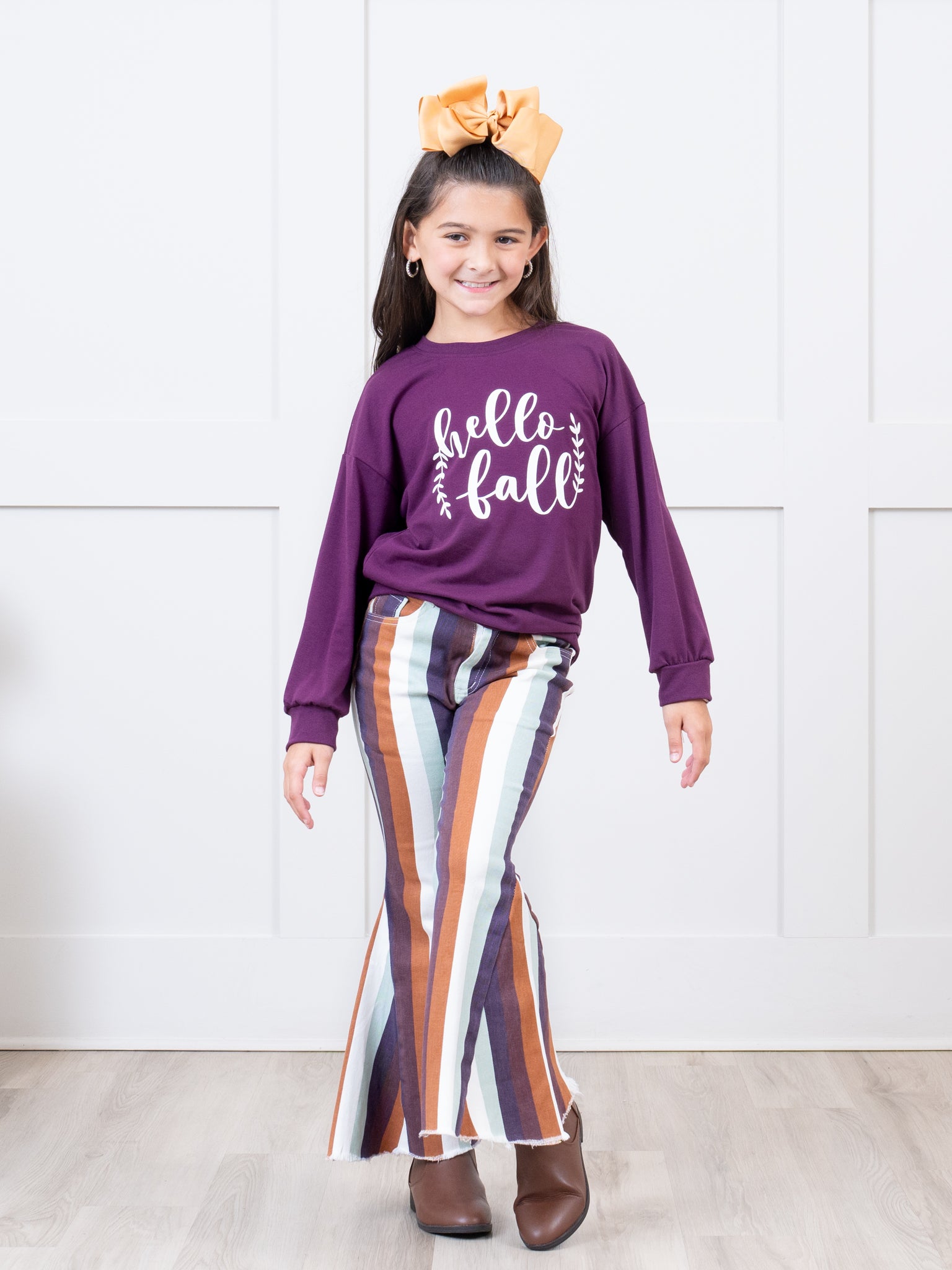 The perfect denim bell bottoms for your little one! These denim bell bottoms feature your choice of fall stripes. Pair one or all three with a white shirt for the perfect look!