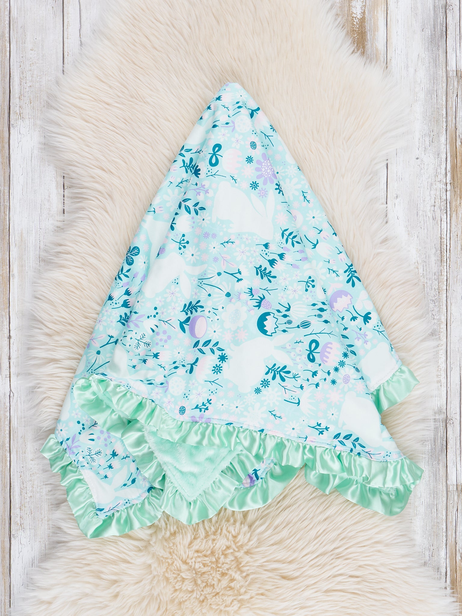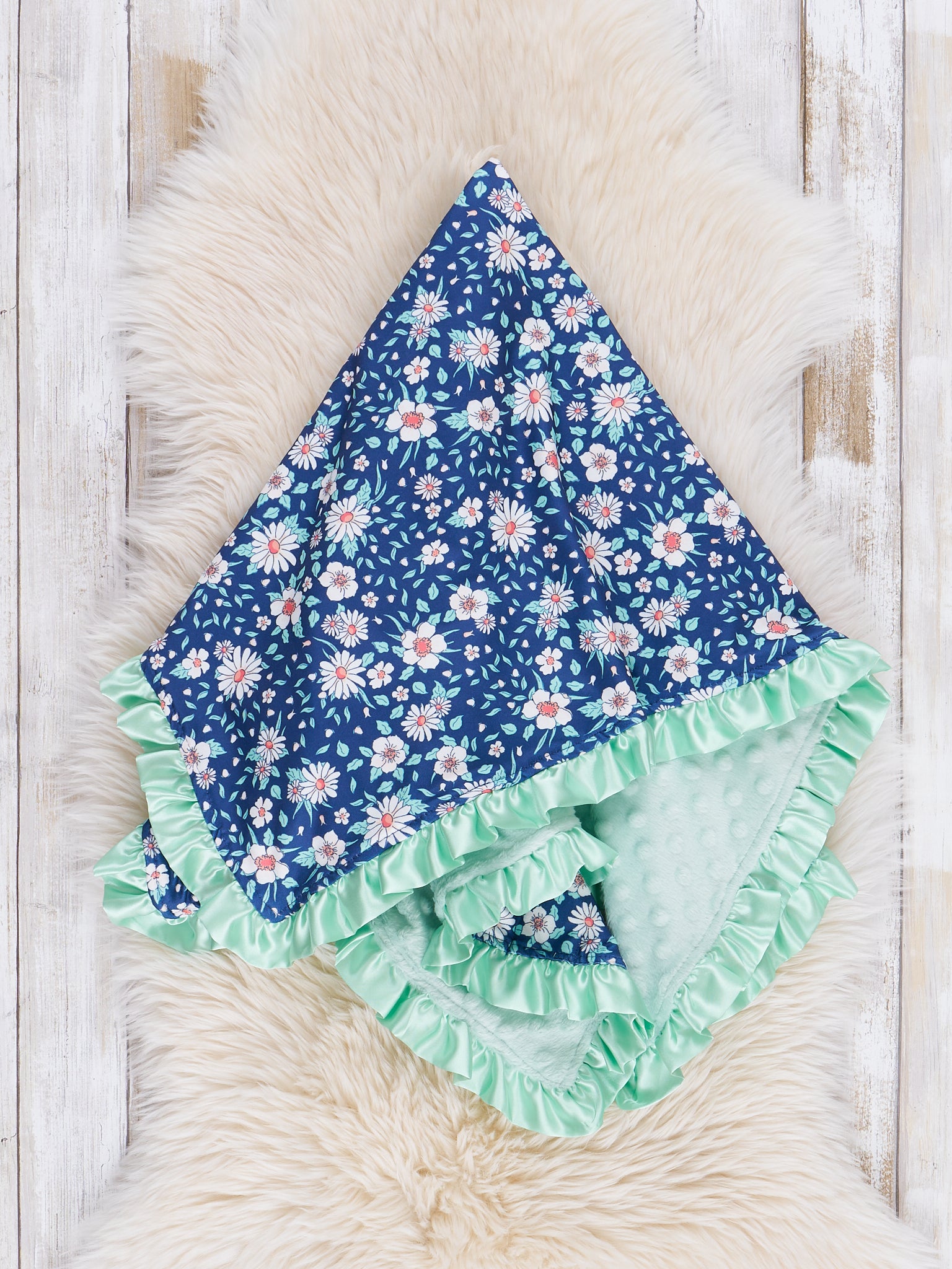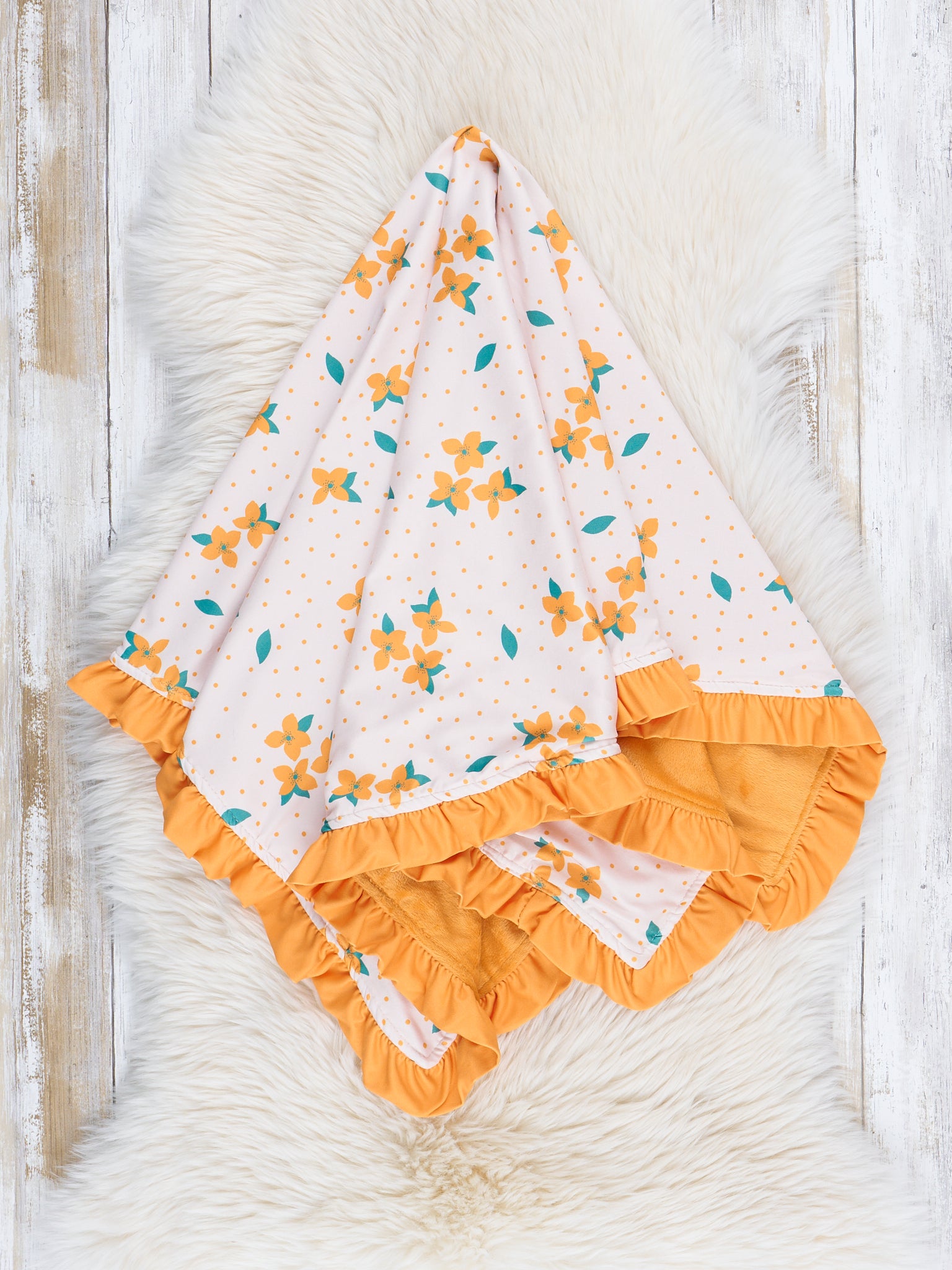 Peach & Green Daisy Garden Ruffle Minky Blanket