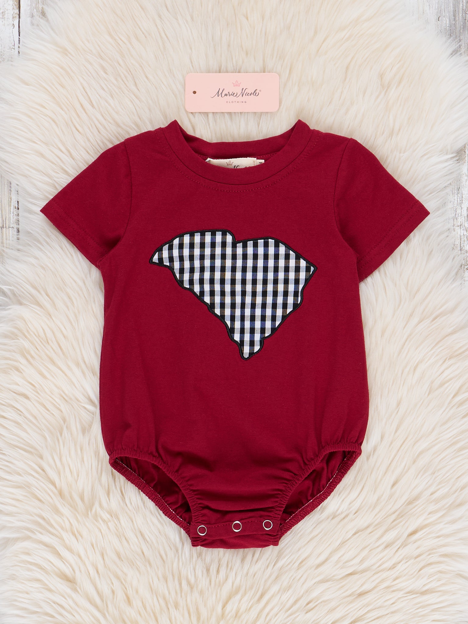 The South Carolina Embroidered Gingham Bubble is a charming blend of Southern pride and classic style. Featuring a black and white gingham pattern and a beautifully embroidered South Carolina applique, this bubble from Marie Nicole Clothing is perfect for showing off team spirit in a sweet, everyday way. Lightweight and breathable, it’s ideal for warm weather, casual outings, or cheering on your favorite team in comfort and style.