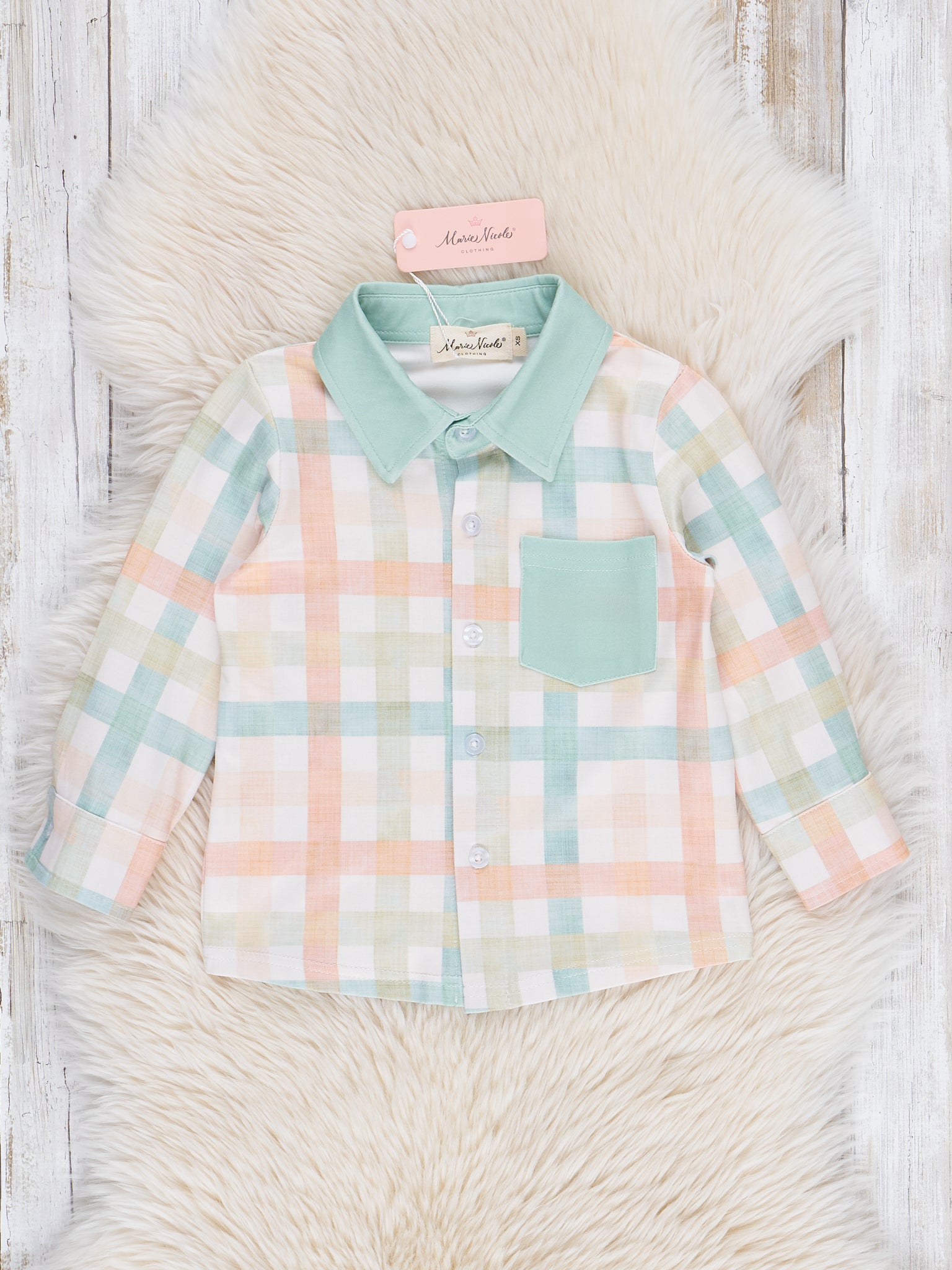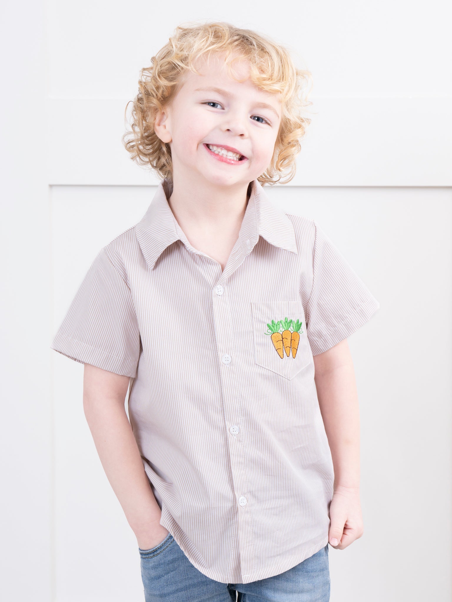 Tan Stripes Embroidered Carrot Button Up Shirt
