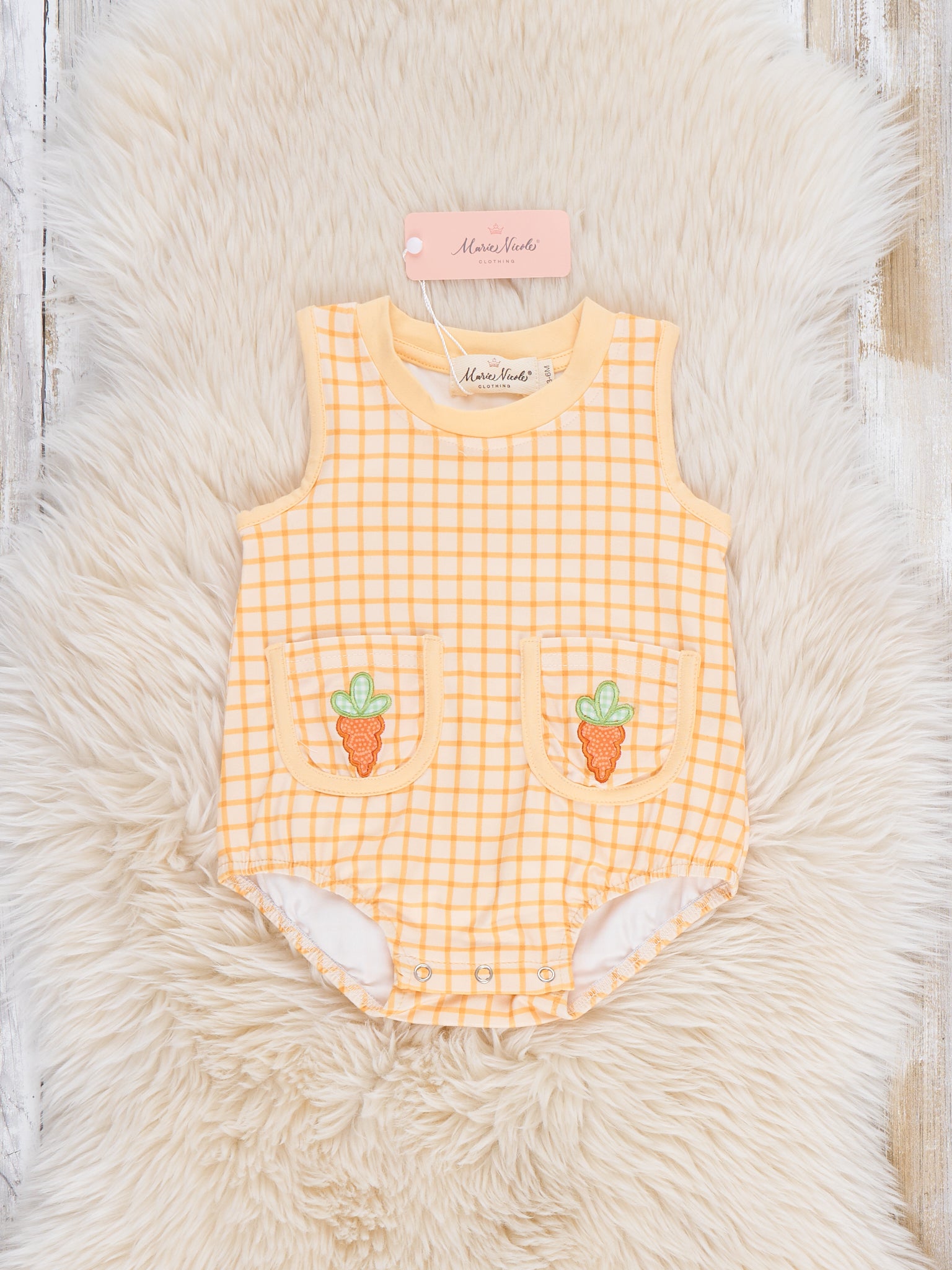 Sweet Carrot Kisses Embroidered Plaid Romper
