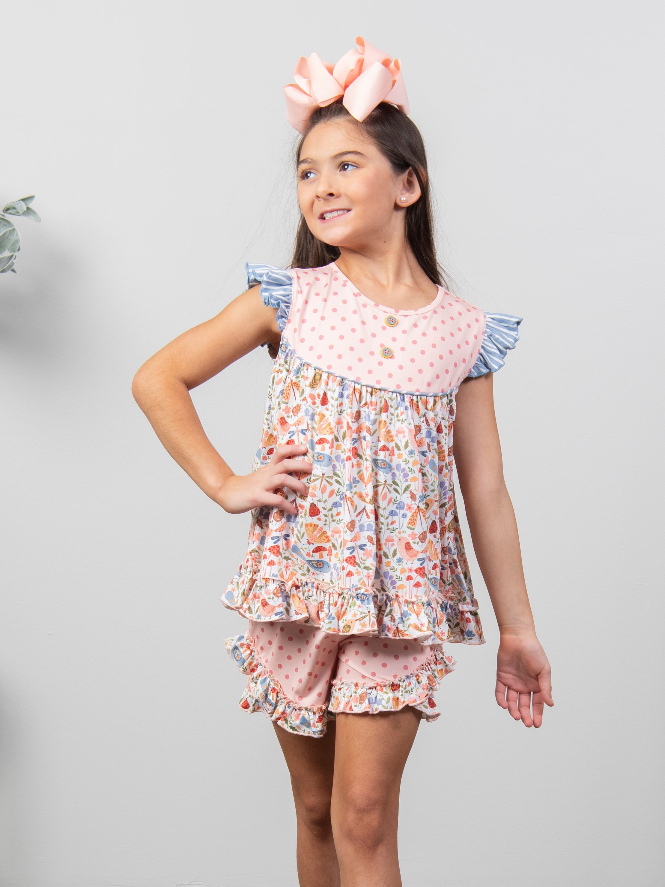 Springtime is just around the corner & this MNC exclusive collection is a MUST-HAVE this season! This high-quality collection has the softest material & is made to grow with your little one! These shorts feature polka dots, ruffle trim in our Tennessee Garden print, & an elastic waistband.