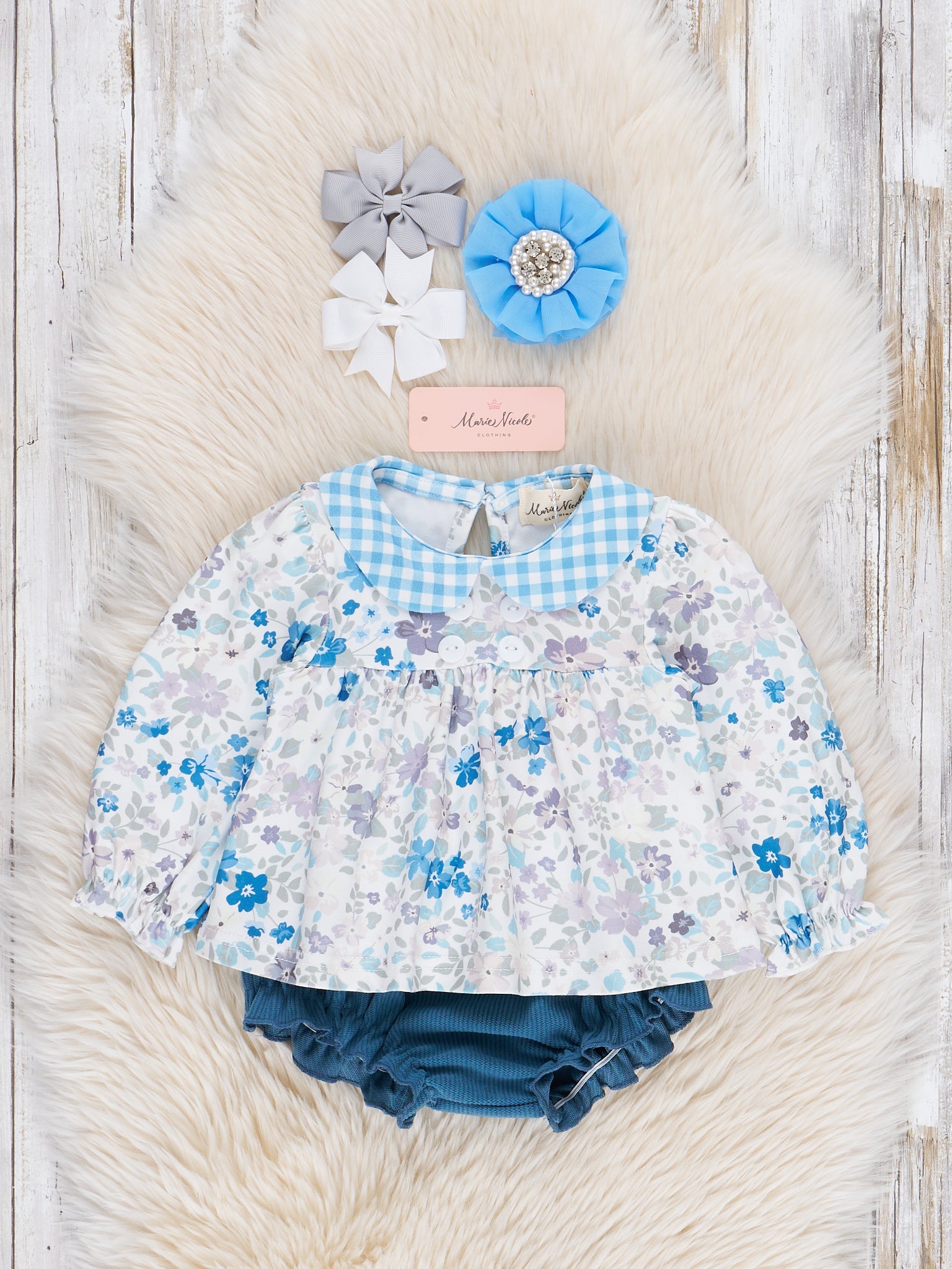 Coral & Teal Embroidered Triceratops Ruffle Outfit