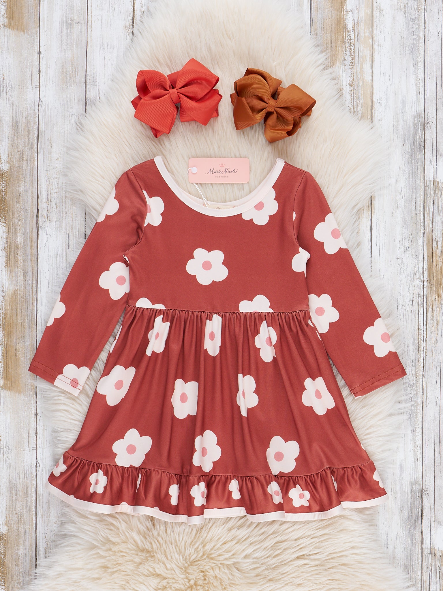Sunshine Pumpkin Drive Embroidered Bow Ruffle Dress
