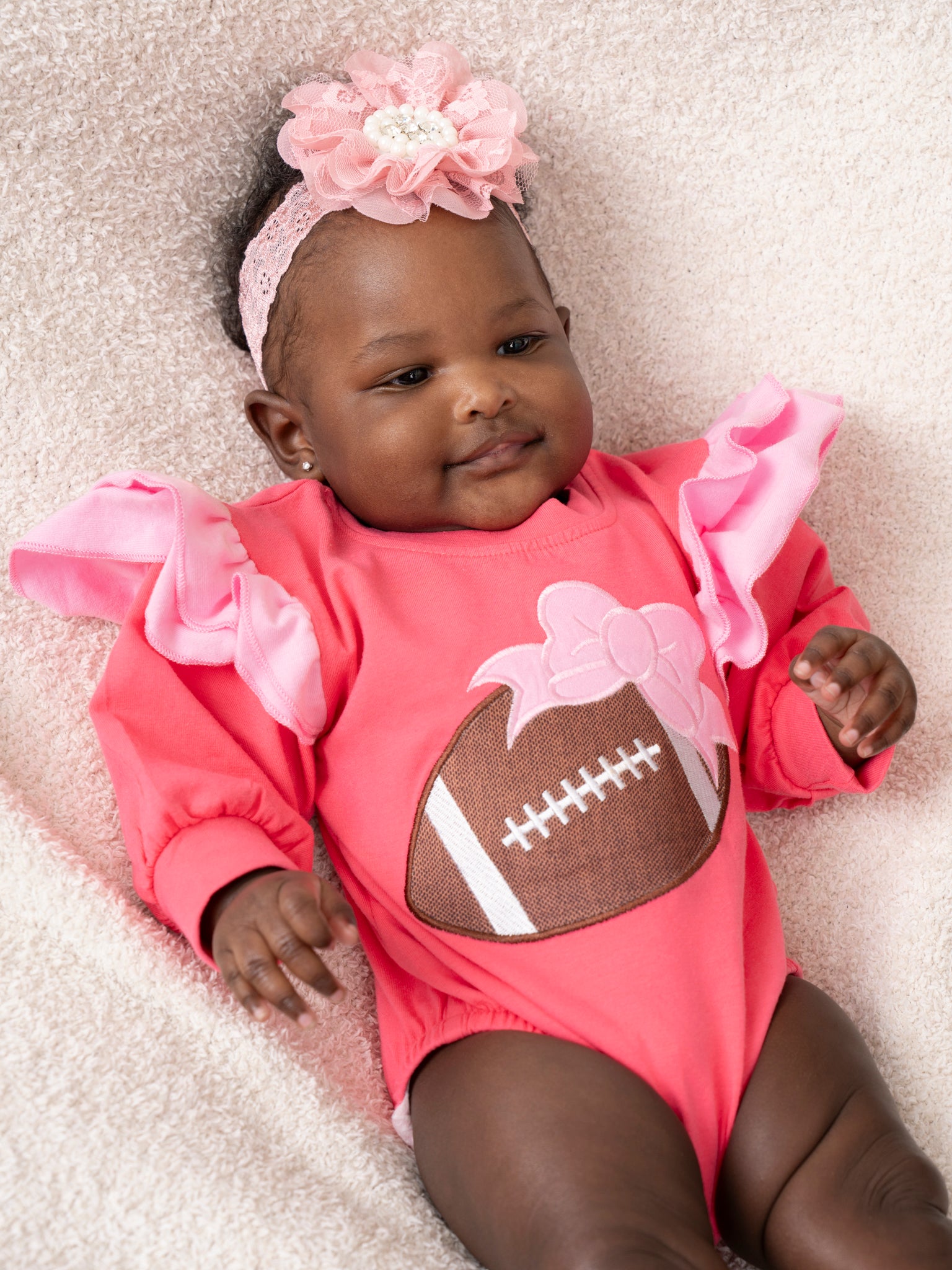 Hot Pink Touchdown Embroidered Ruffle Bubble