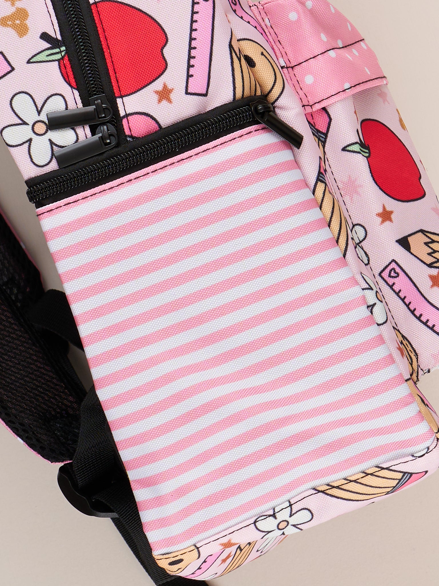 Get ready to rock school with this backpack featuring quirky red apples and pencils! Perfect for girls to carry their supplies in style. A fun and playful way to show off your love for learning.