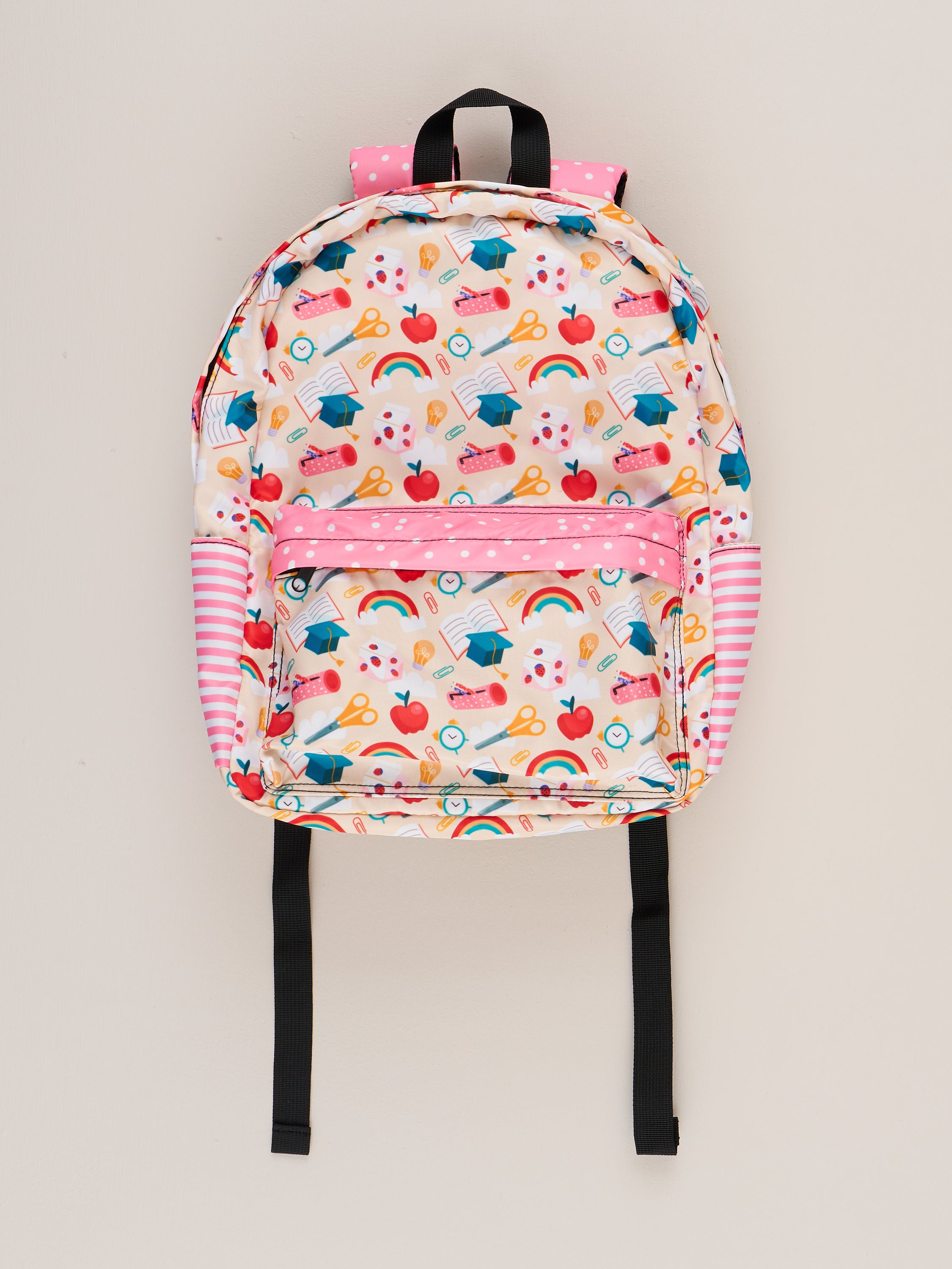 Bring schoolwork with you in style with this amazing School Supplies Backpack! Designed for kids, it features a vibrant school supplies print, front zipper compartment, side pockets for extra goodies, and adjustable straps for comfortable carrying. Say goodbye to boring bags and get ready to hit the books with this super stylish and functional accessory!