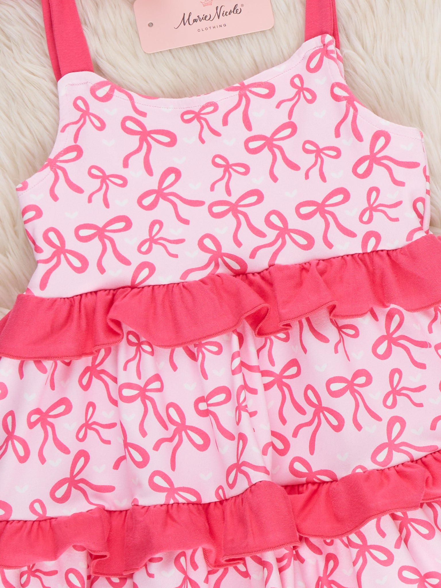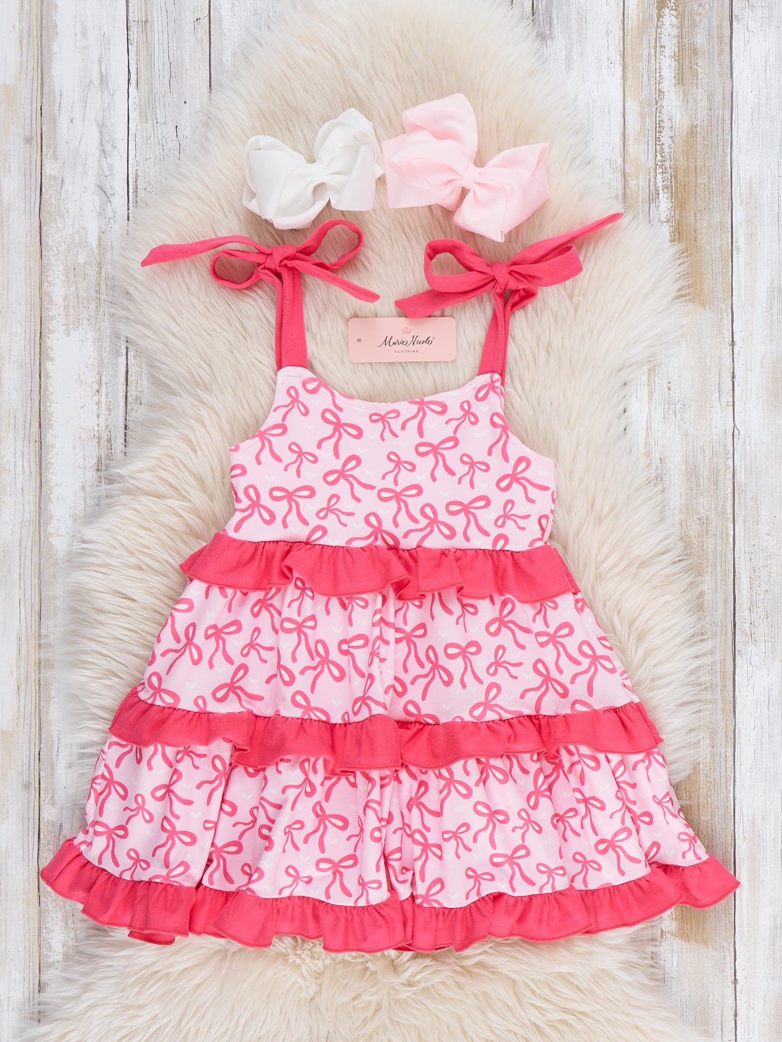 The Bow-tiful Twirl Dress by Marie Nicole Clothing is designed for picture-perfect moments and endless spins. Featuring delicate bow accents, tiered ruffle layers, and adjustable tie straps, this dress offers both charm and comfort. The flowy silhouette allows easy movement, making it perfect for celebrations, family gatherings, and twirl-worthy days filled with fun and smiles.