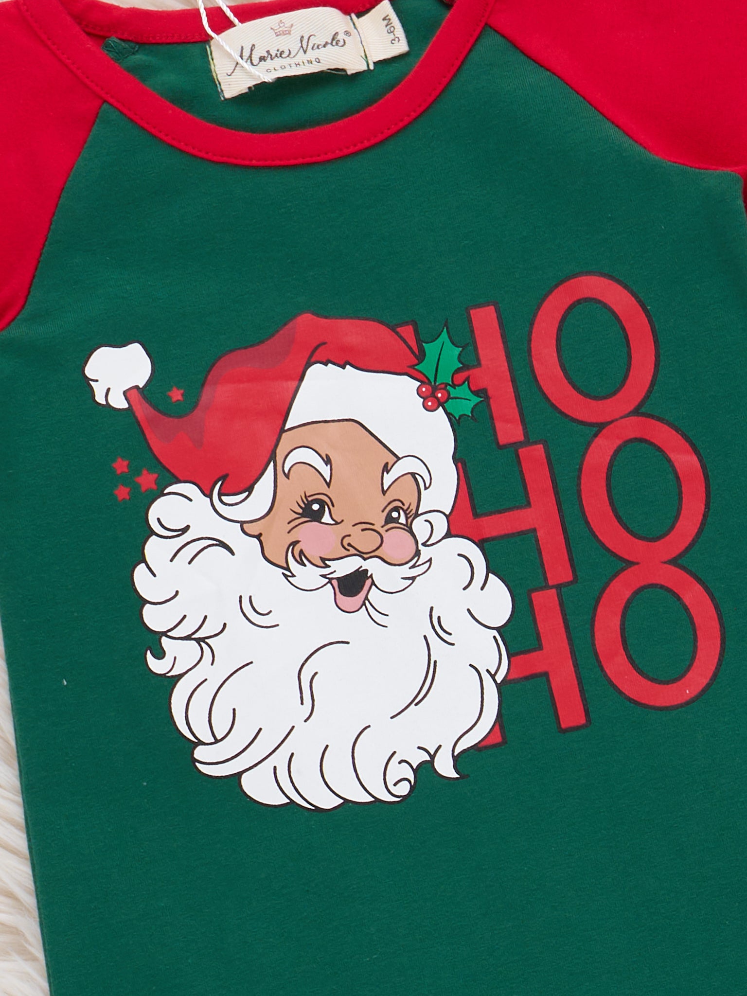 The Holiday Ho Ho Ho Ruffle Romper designed by Marie Nicole Clothing is a festive one-piece featuring playful holiday design and a bright, cheerful print motif of Santa, with ruffle-trimmed legs and fun double-ruffle accents. Designed for comfort and easy dressing, this romper is perfect for seasonal gatherings and family photos, offering a joyful look for holiday celebrations.