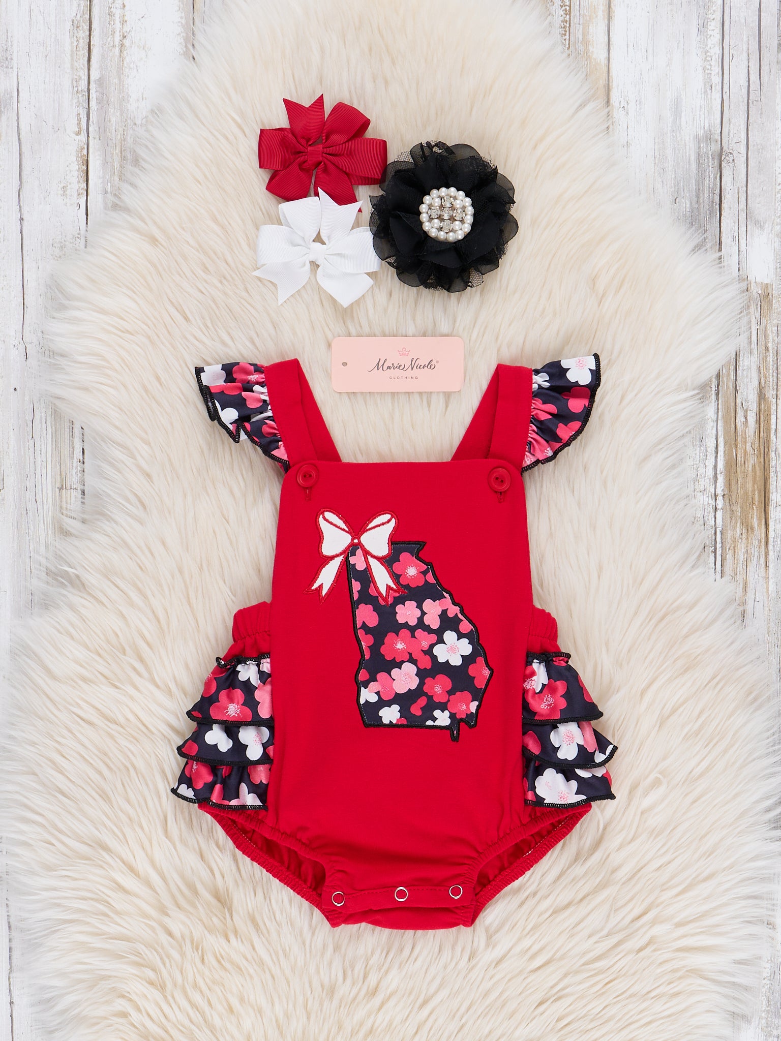 Discover baby girl boutique outfits at Marie Nicole Clothing. From infant girls’ smocked dresses to boutique ruffle pant outfit options, we’ve got what you are looking for.