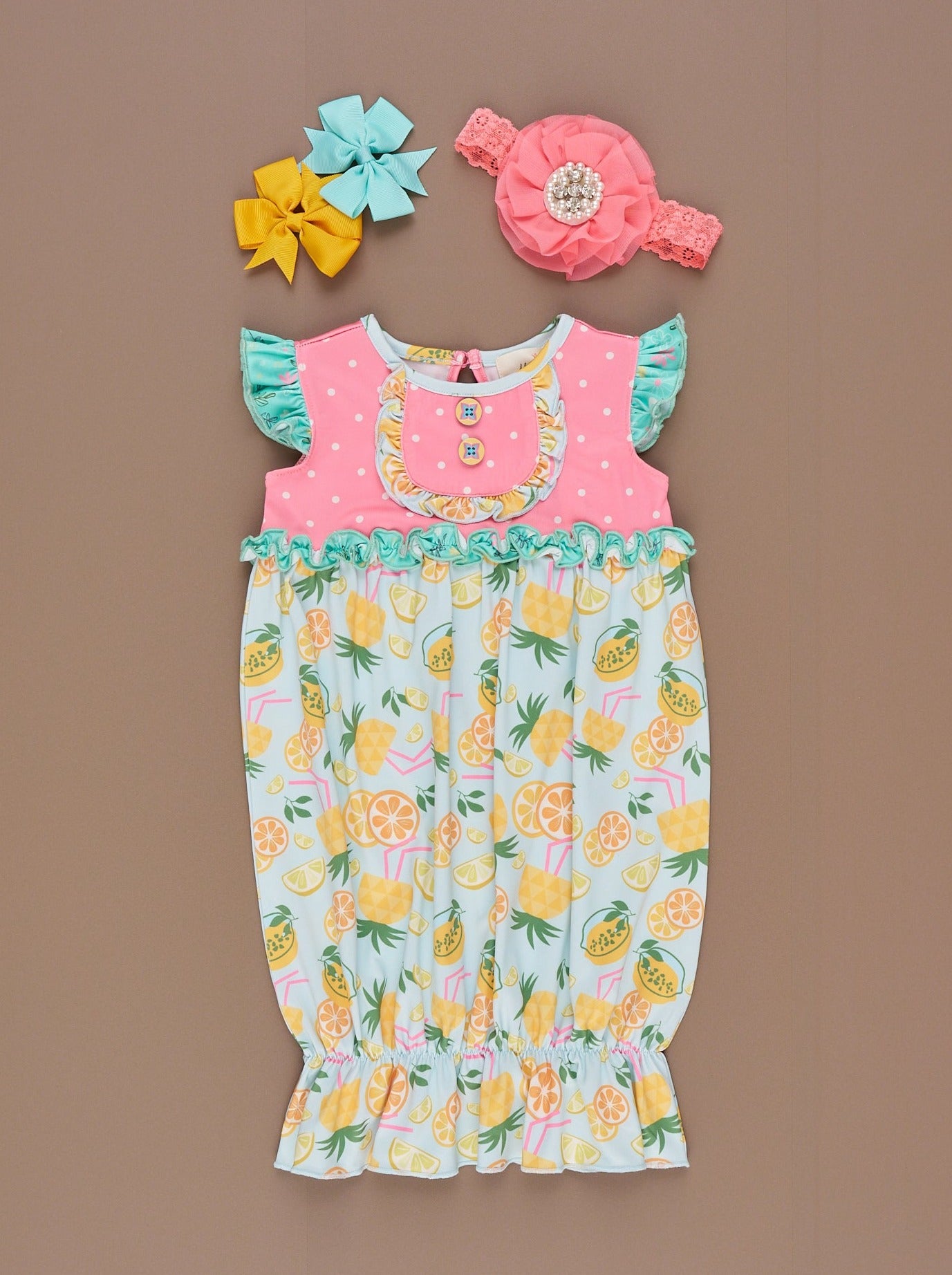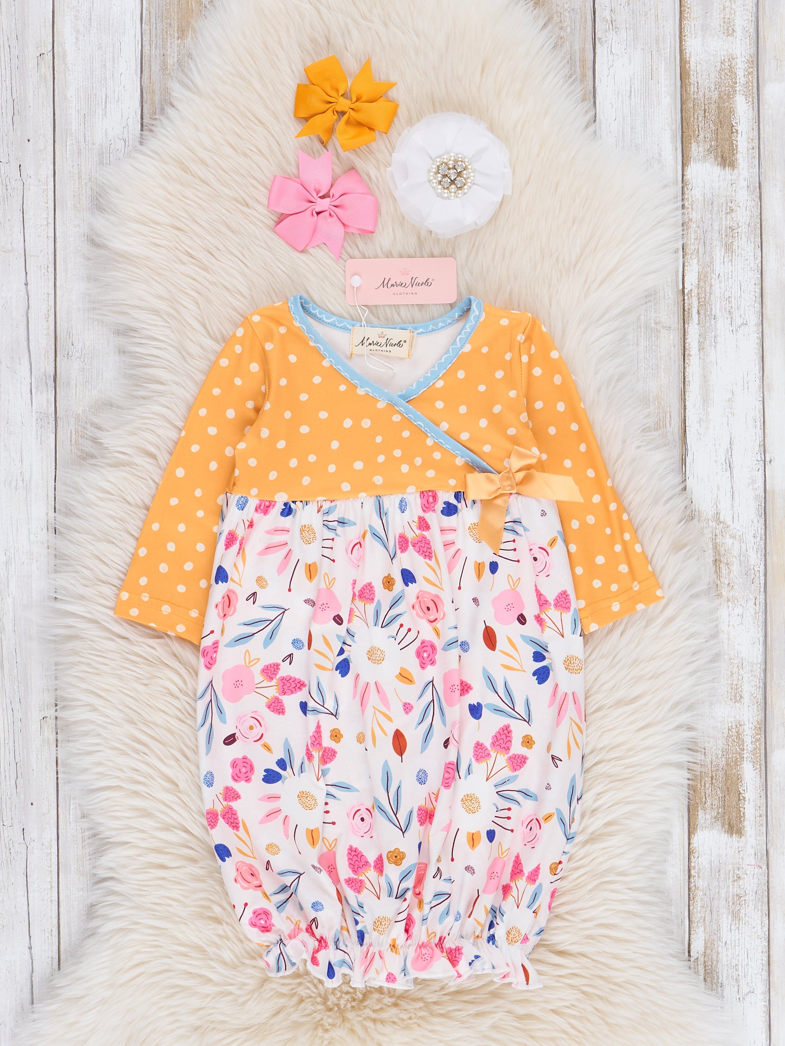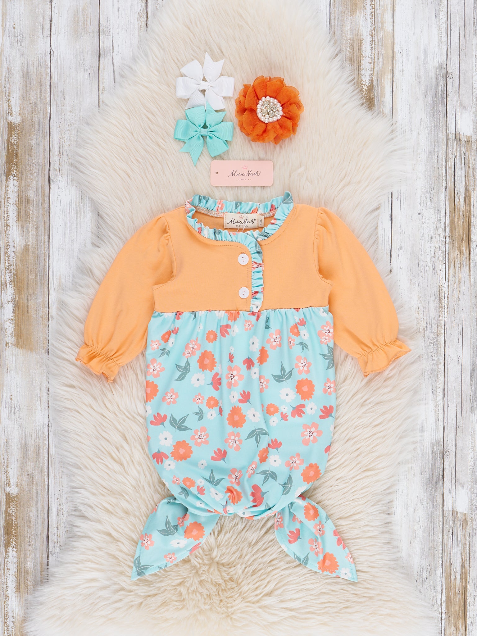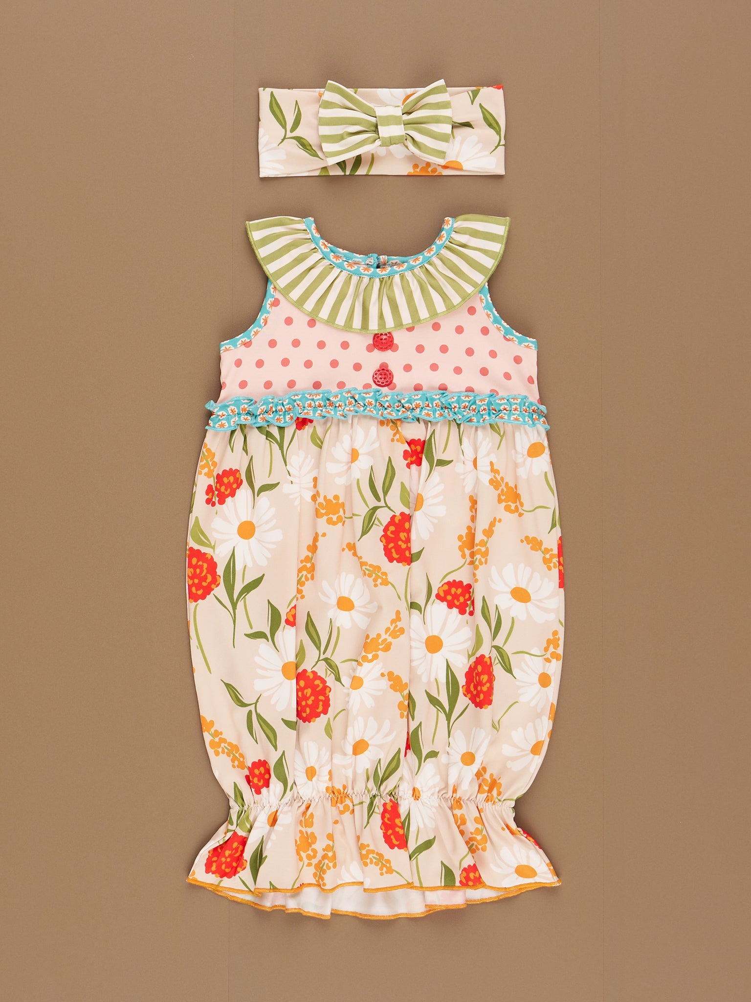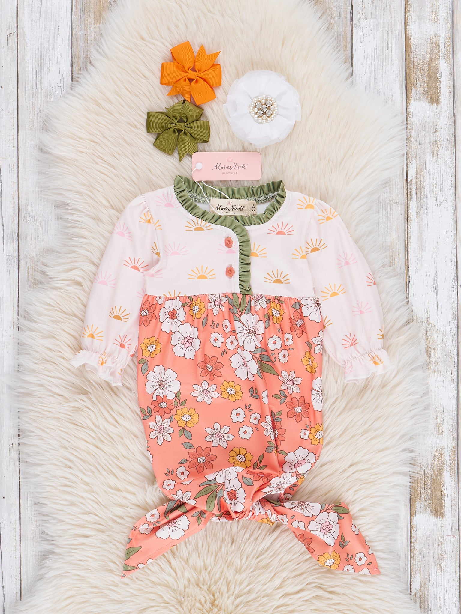 Peach & Green Daisy Garden Ruffle Knot Gown