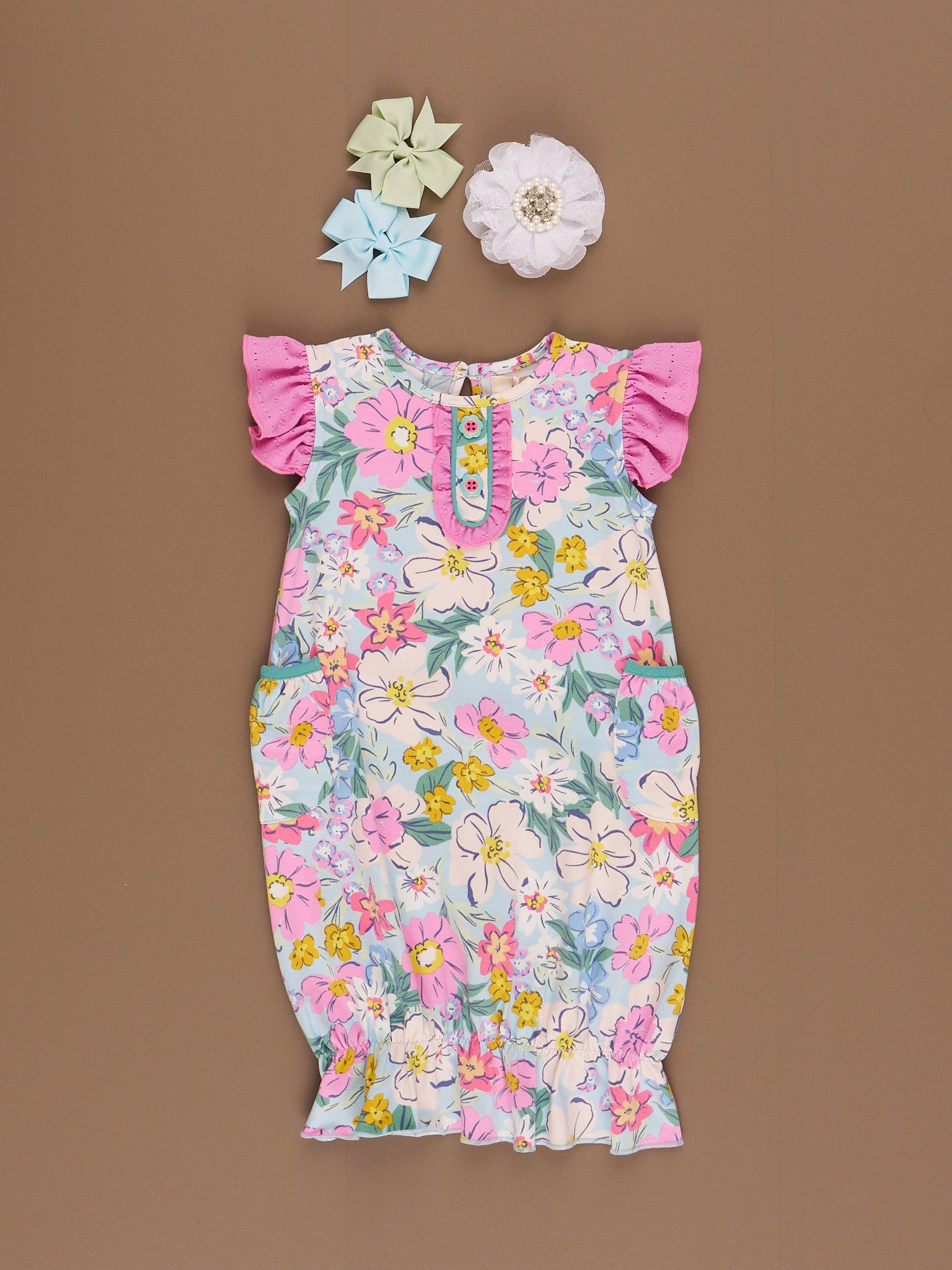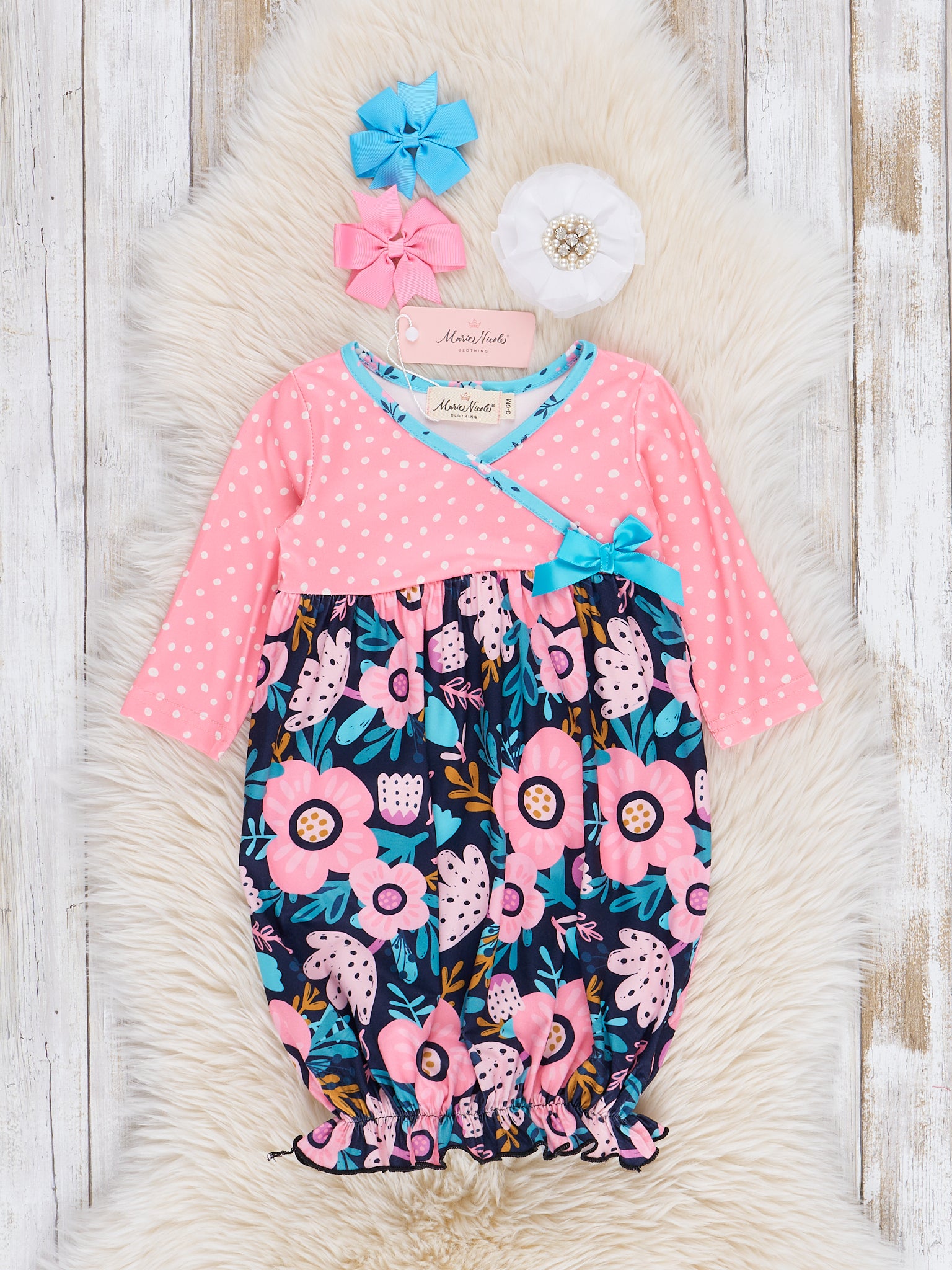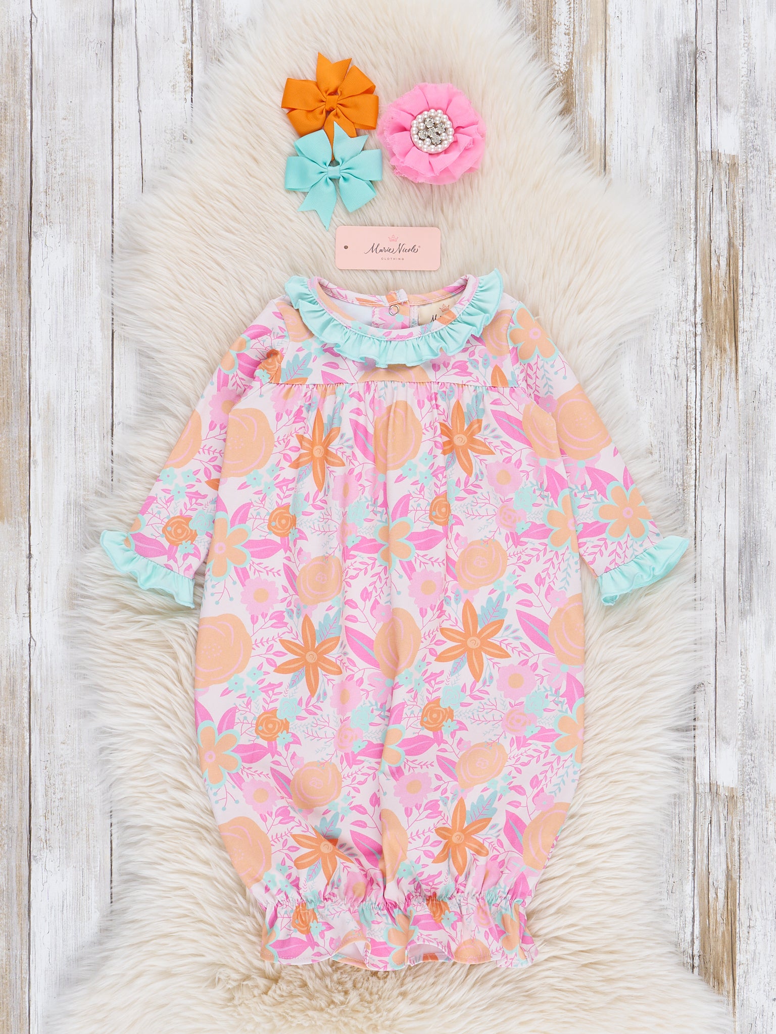 Pink & Blue Beautiful Blooms Sleeper Gown