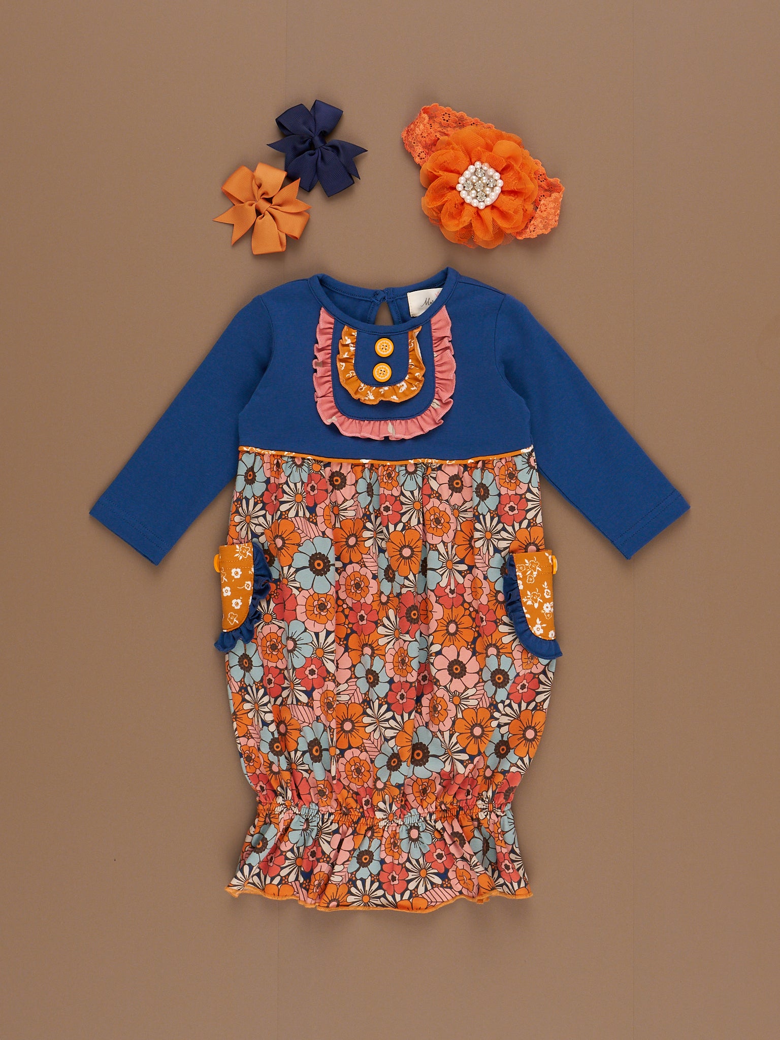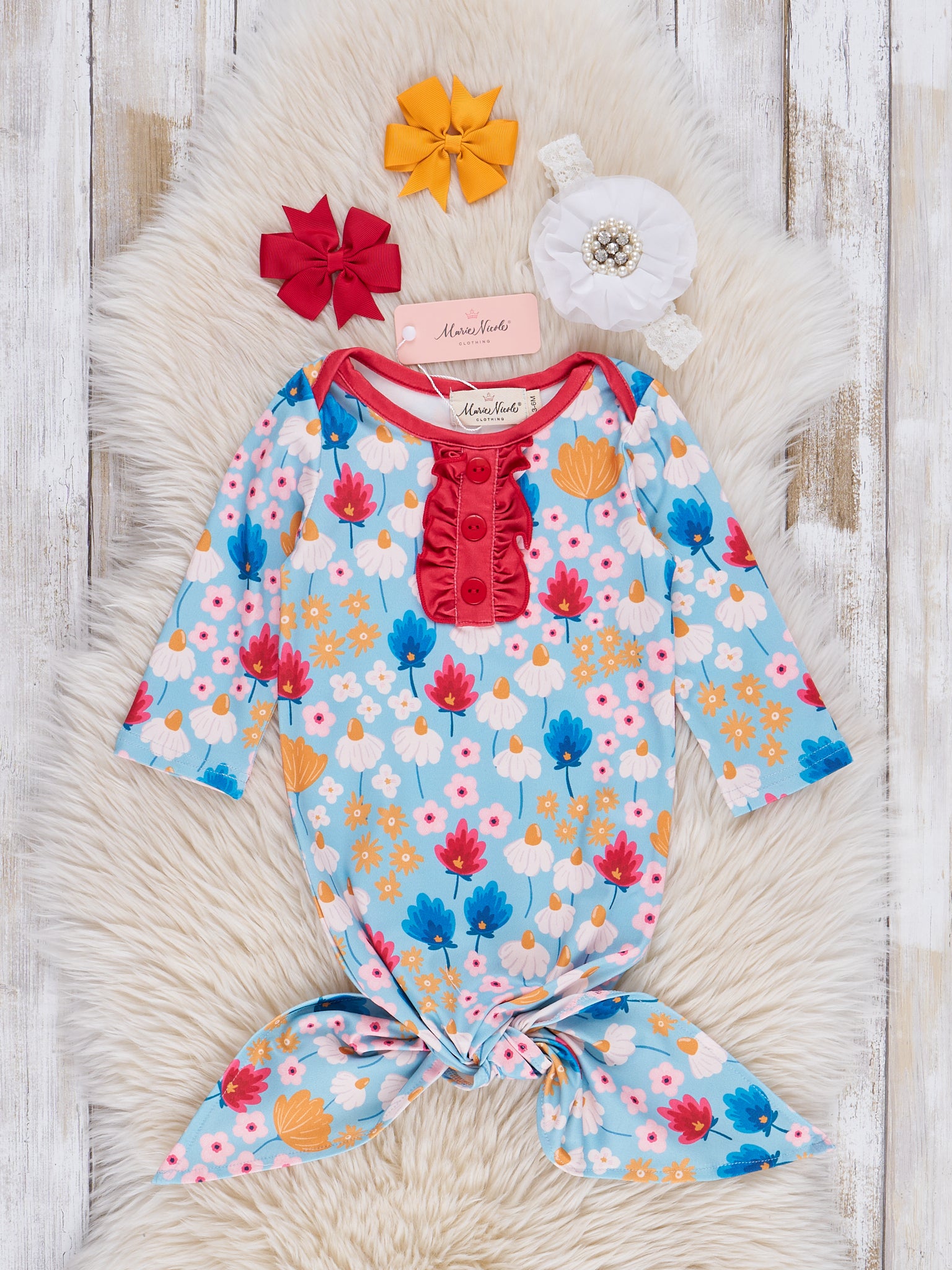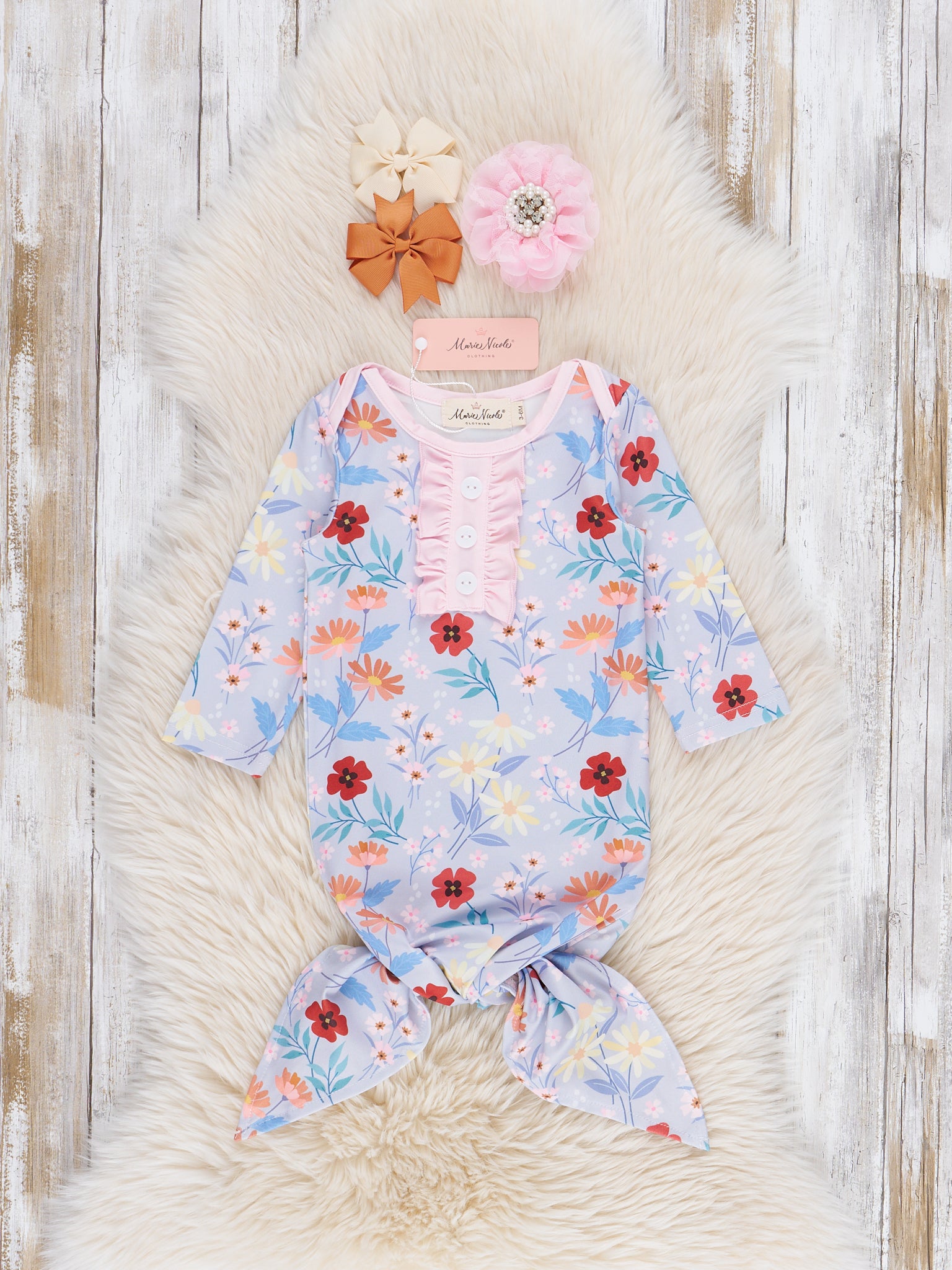 Pink & Blue Beautiful Blooms Sleeper Gown