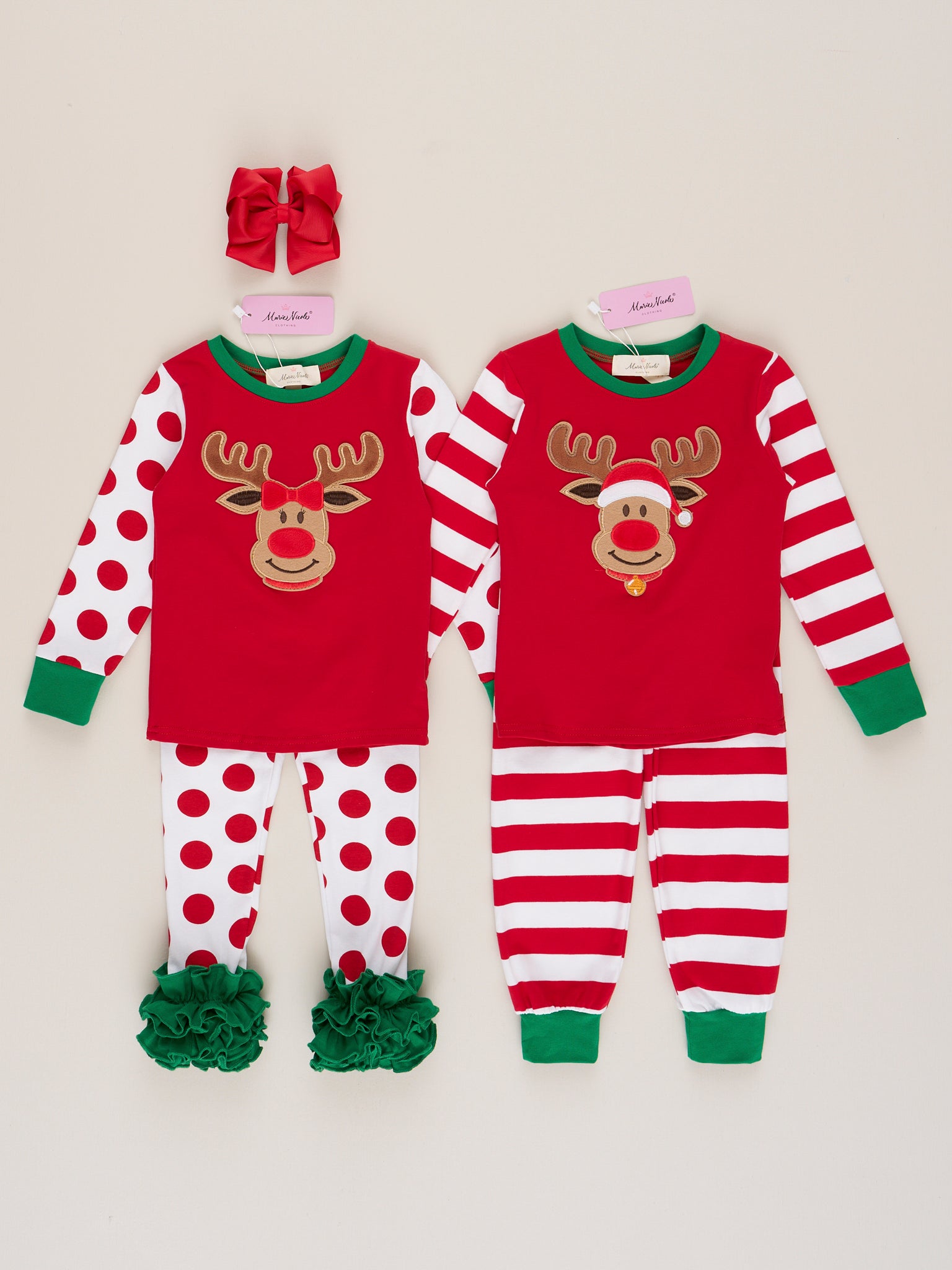 The Christmas Reindeer Pajamas are the cutest jammies for your little girl to wear this Christmas (or year-round -- we won't judge)! Crafted with 100% super soft cotton, this set by Marie Nicole Clothing has the right amount of stretch for a comfy fit, whether sleeping or waiting for Santa. We love the fun patterns and reindeer applique!