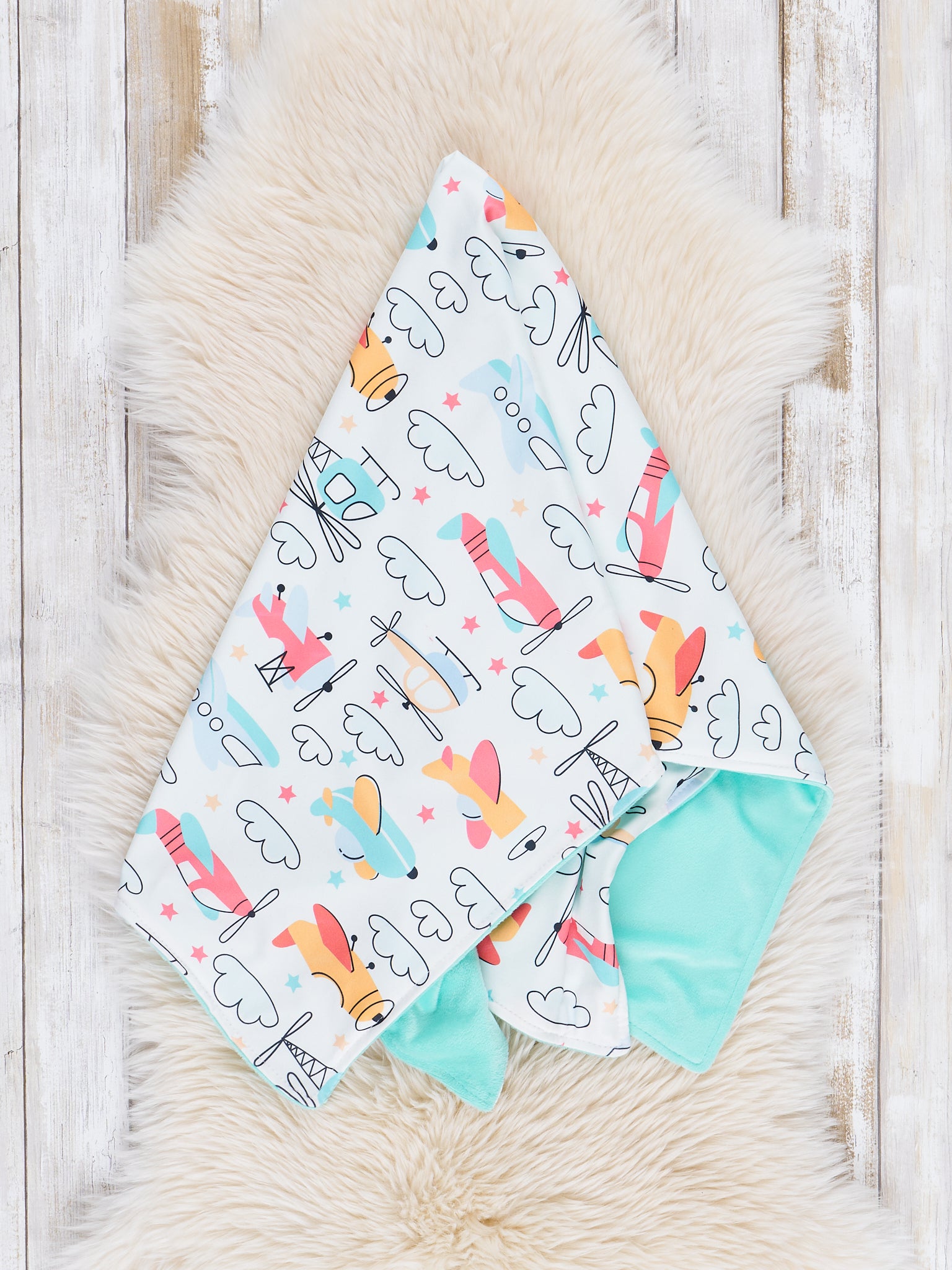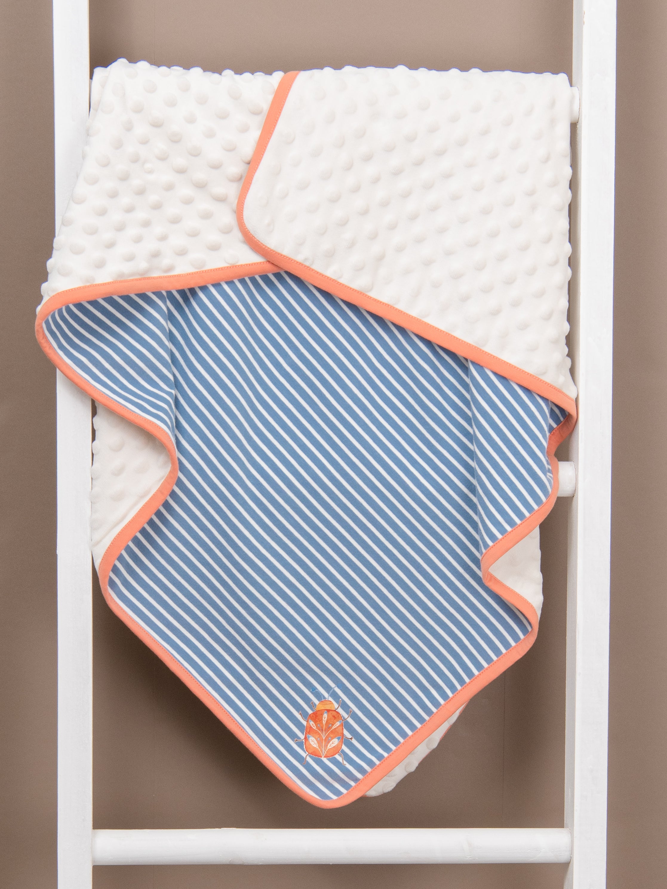 Red & Light Blue Holiday Joy Minky Ruffle Blanket