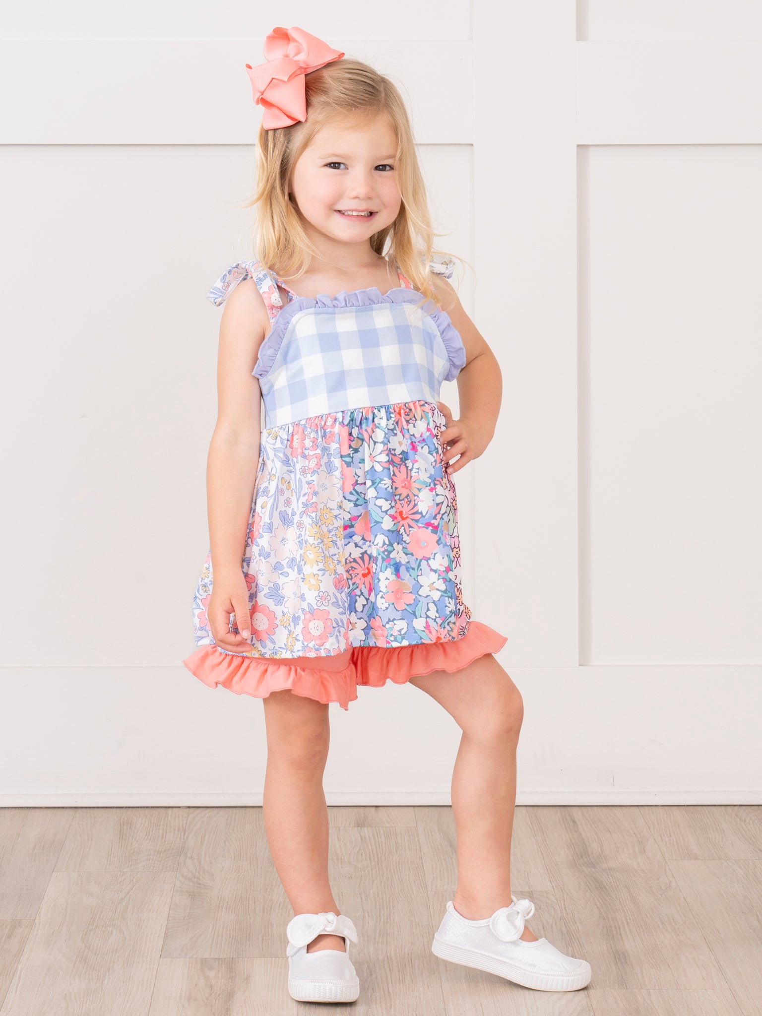 Purple Gingham & Florals Ruffle Outfit