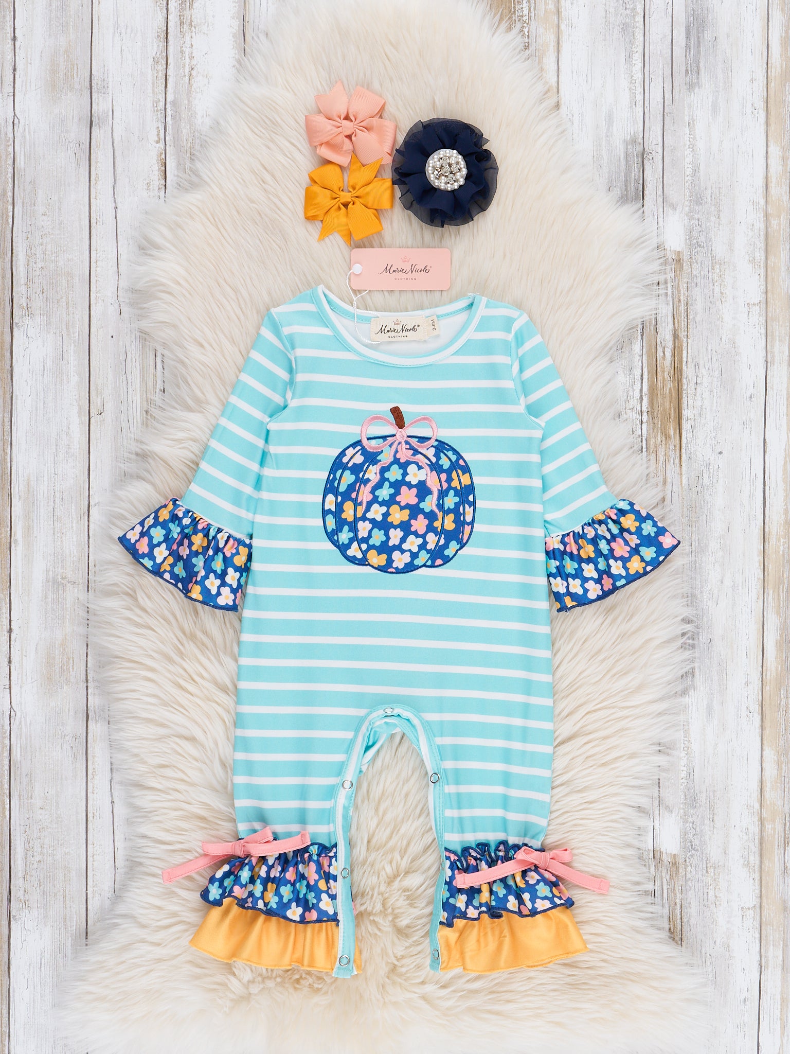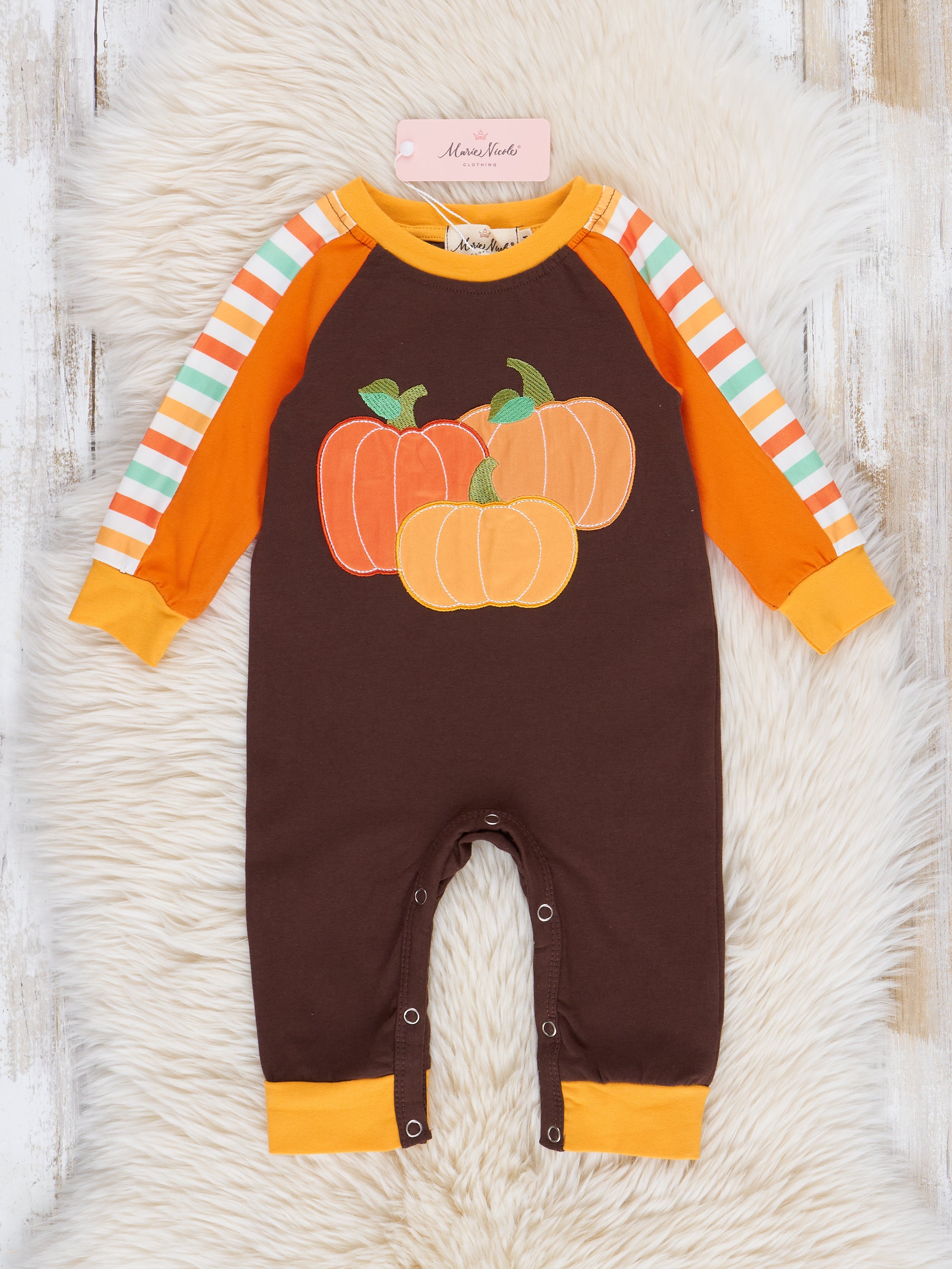 Brown & Orange Pumpkin Harvest Raglan Romper