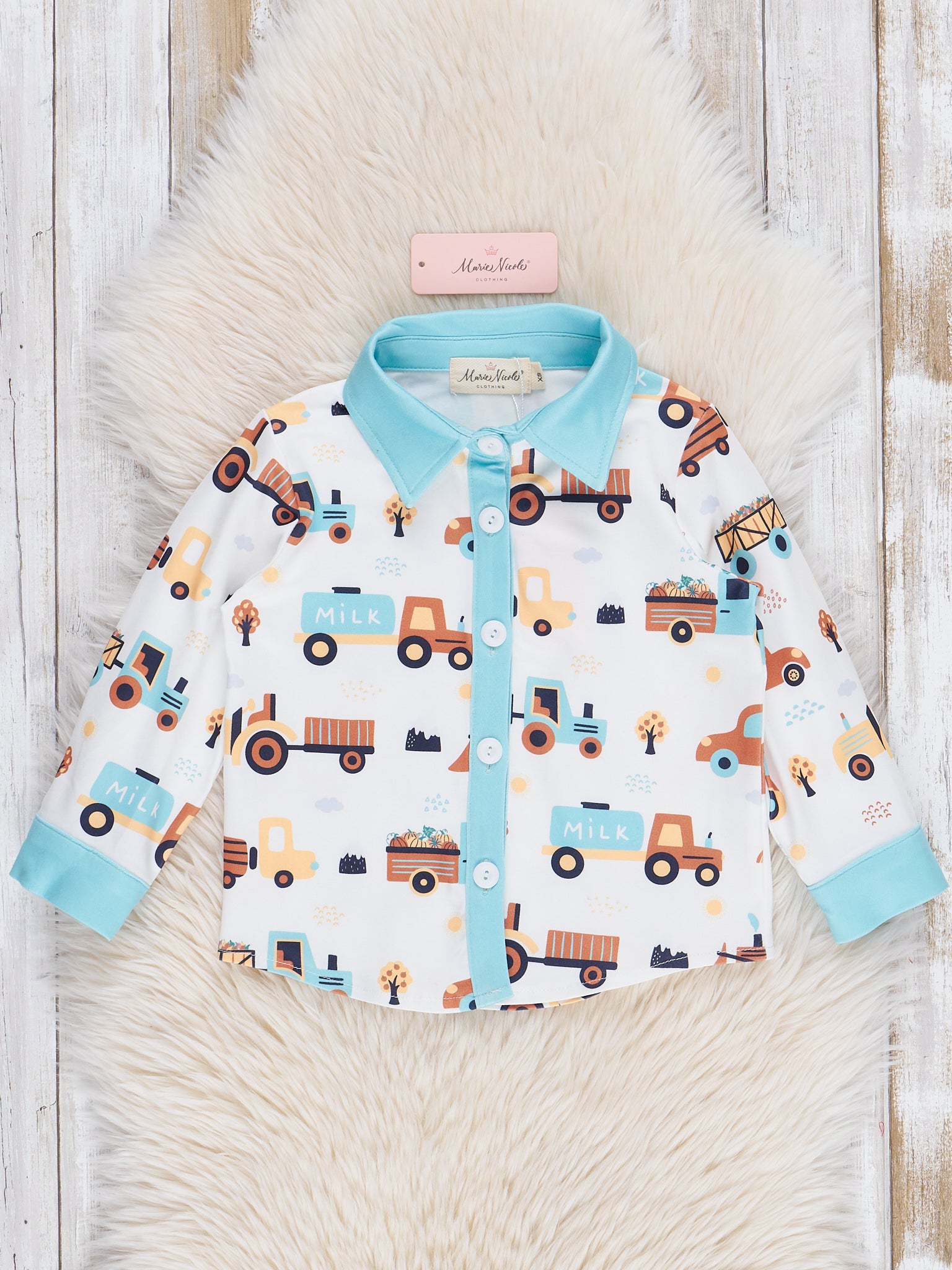 Turquoise Pumpkin Trucks Button-Up Bubble