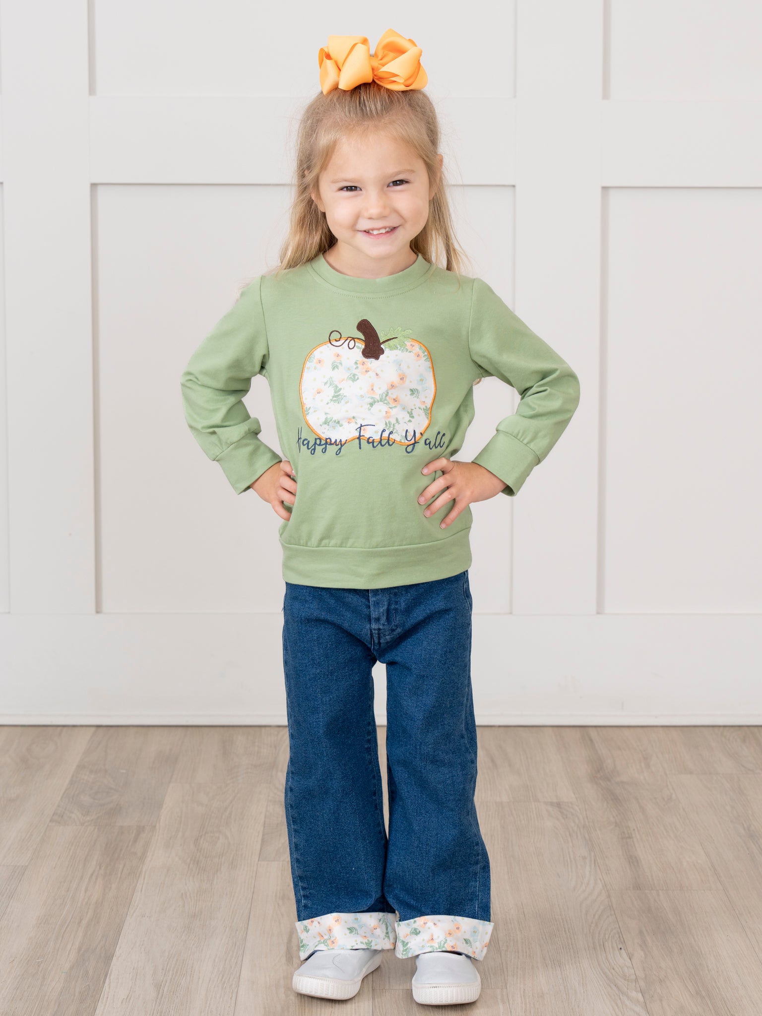 Embroidered "Happy Fall Y'all" Denim Outfit