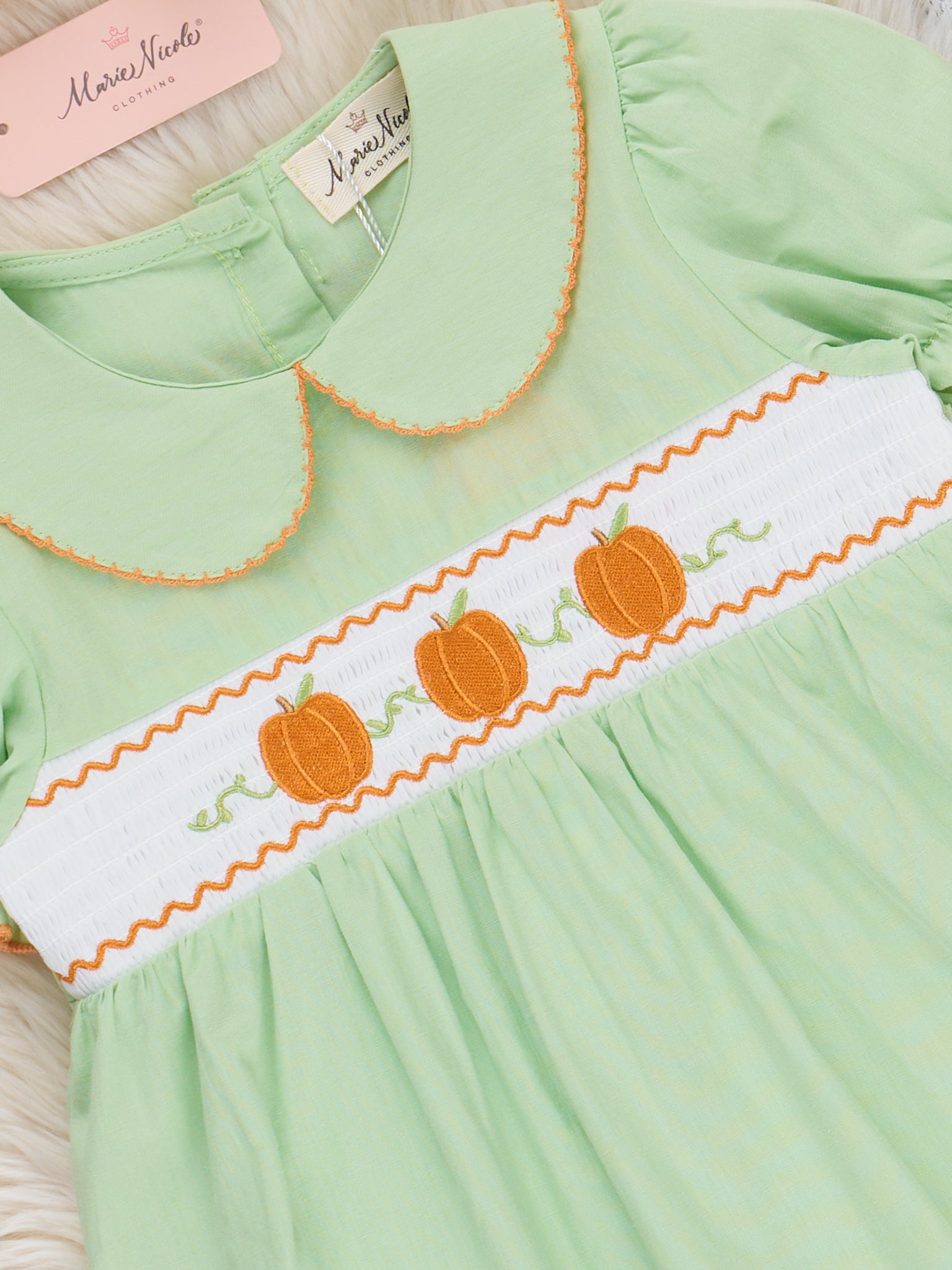 Smocked Embroidered Sweet Pea Pumpkin Dress