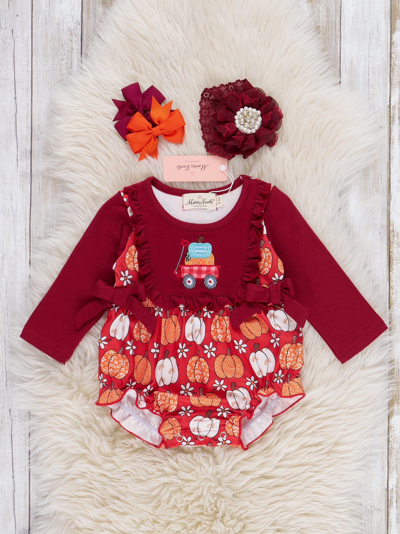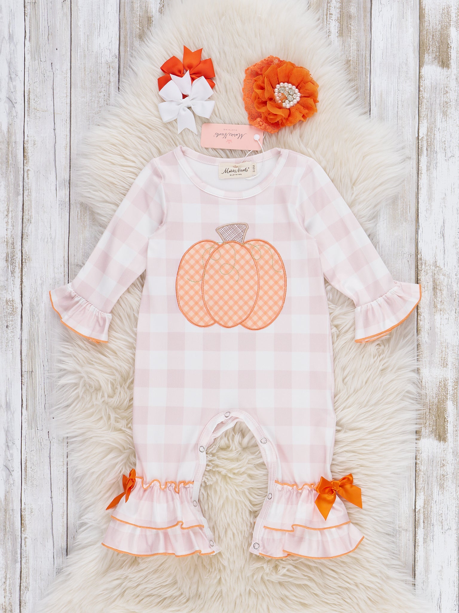 Picnic in the Pumpkin Patch Embroidered Plaid Ruffle Romper