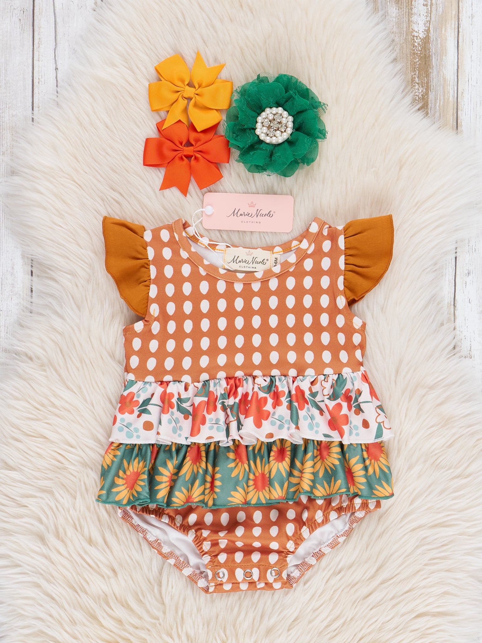Thankful Graceful & Blessed Pumpkin Ruffle Romper