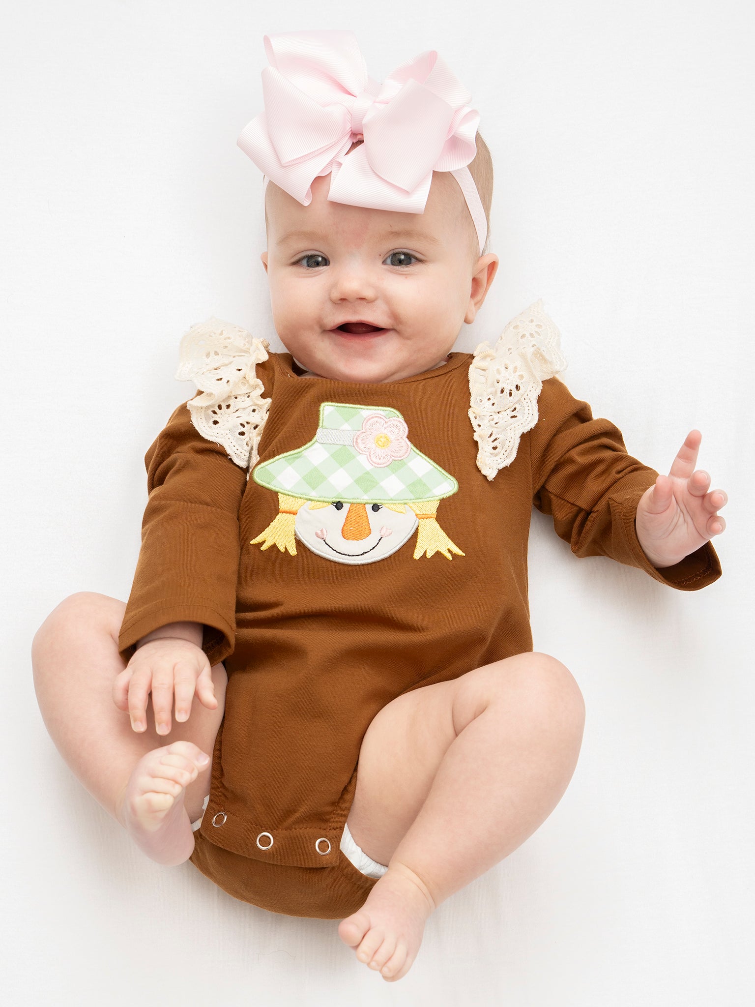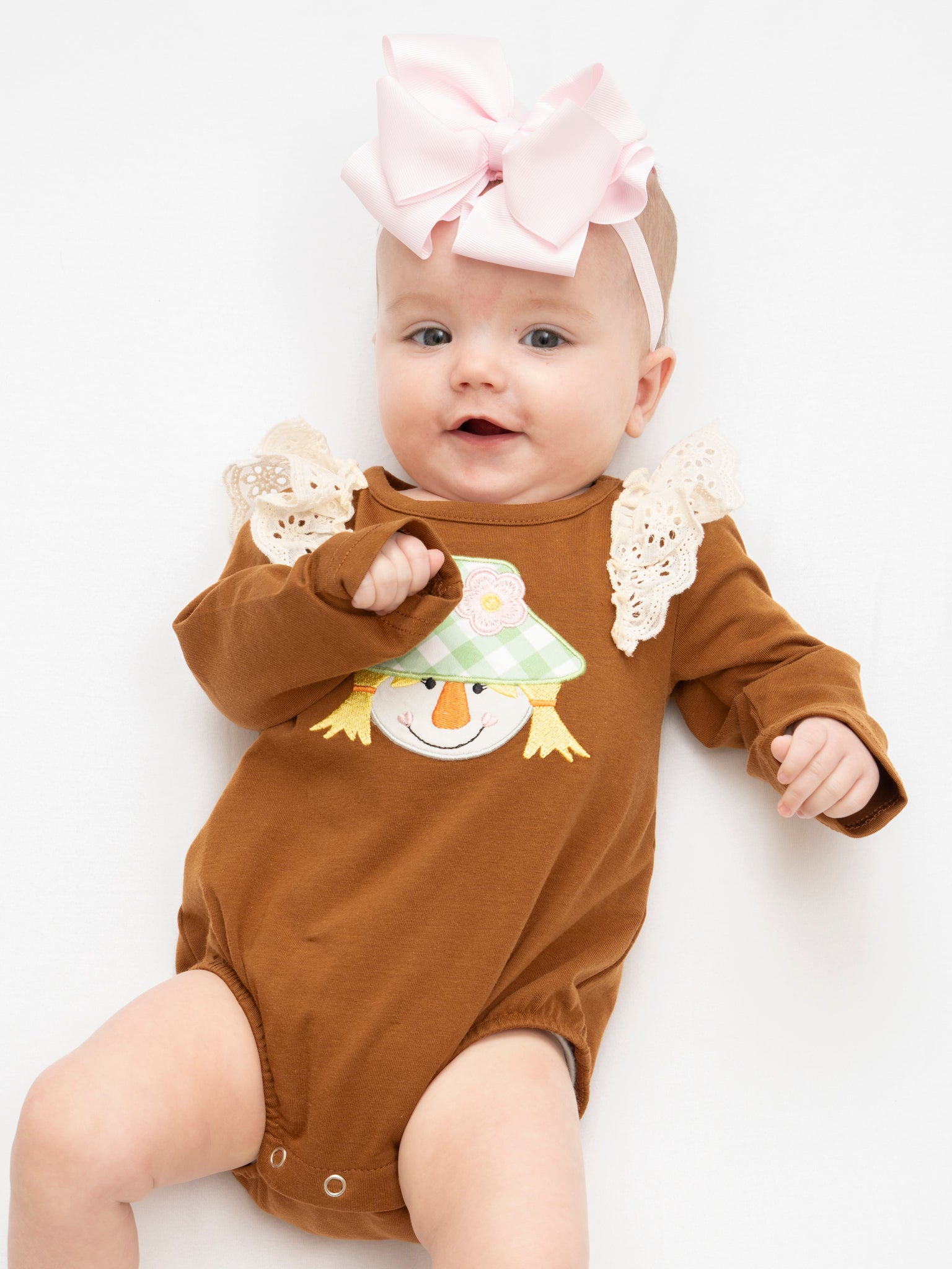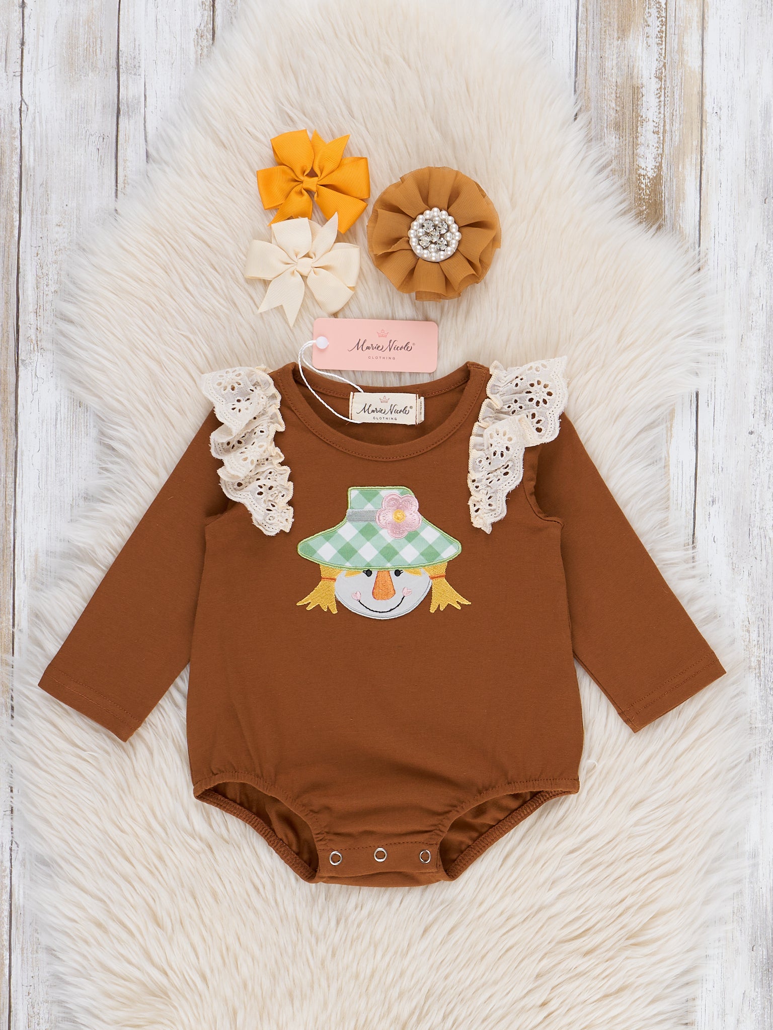 The Rustic Charm Scarecrow Lace Romper is a whimsical and festive pick that’s perfect for harvest fun and fall celebrations. Featuring playful scarecrow details, delicate lace accents, and warm autumn tones, this romper from Marie Nicole Clothing blends farmhouse flair with girly charm. Made from soft, breathable fabric, it’s ideal for pumpkin patch visits, hayrides, and picture-perfect seasonal moments.