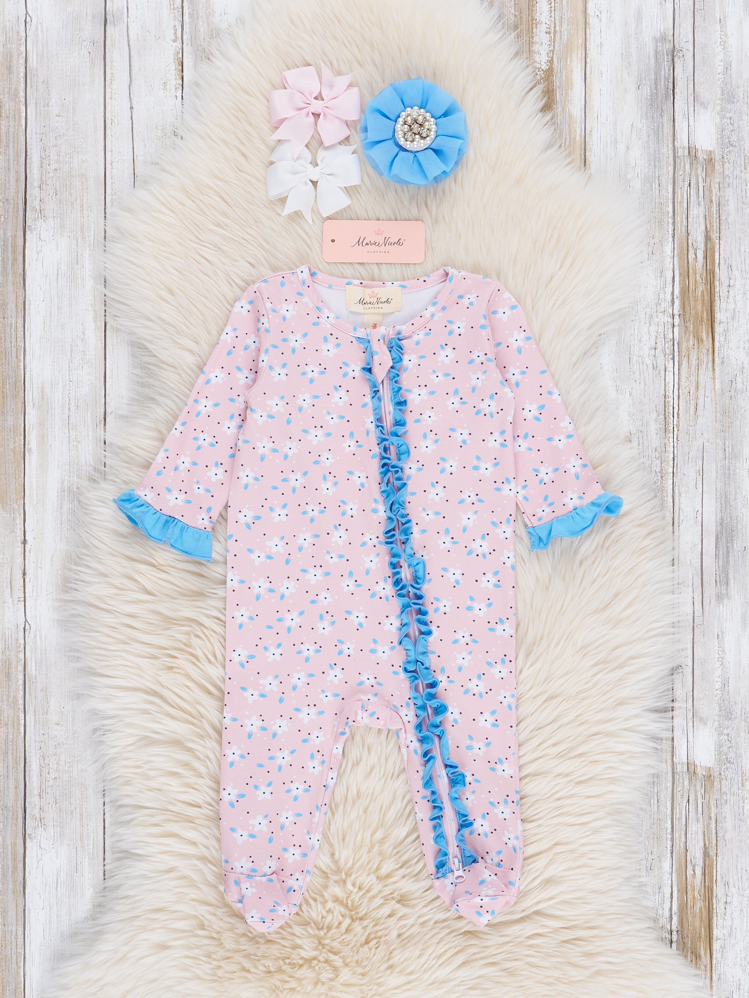 Cornflower Cottage Ruffle Footed Sleeper Pajamas