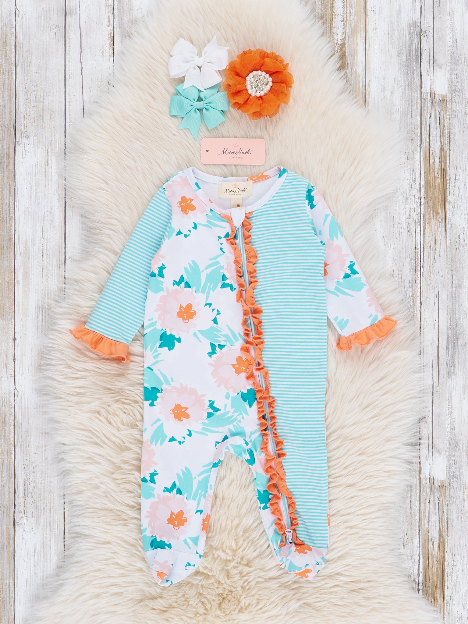 Sherbet Stripes Ruffle Footed Sleeper Pajamas