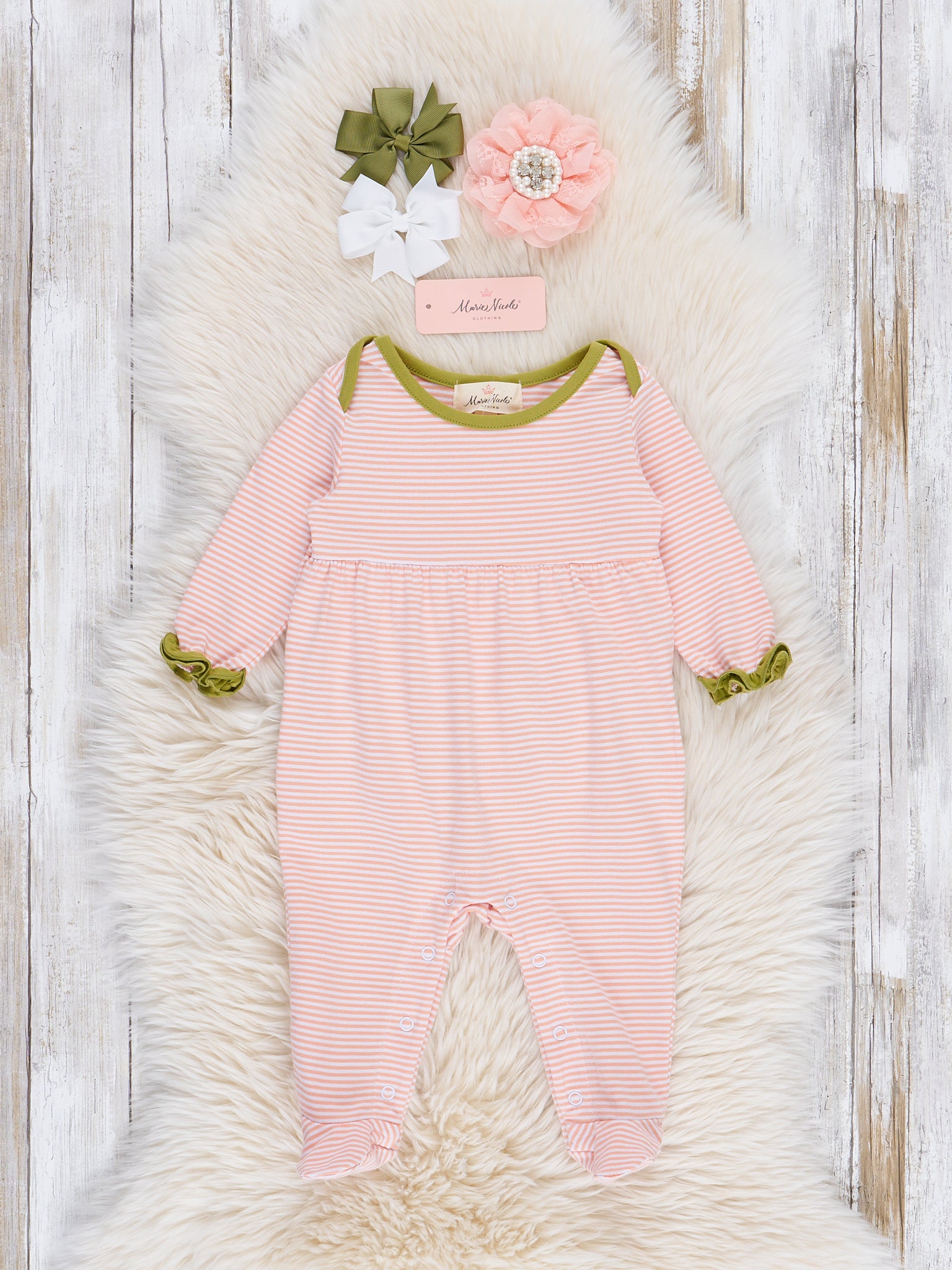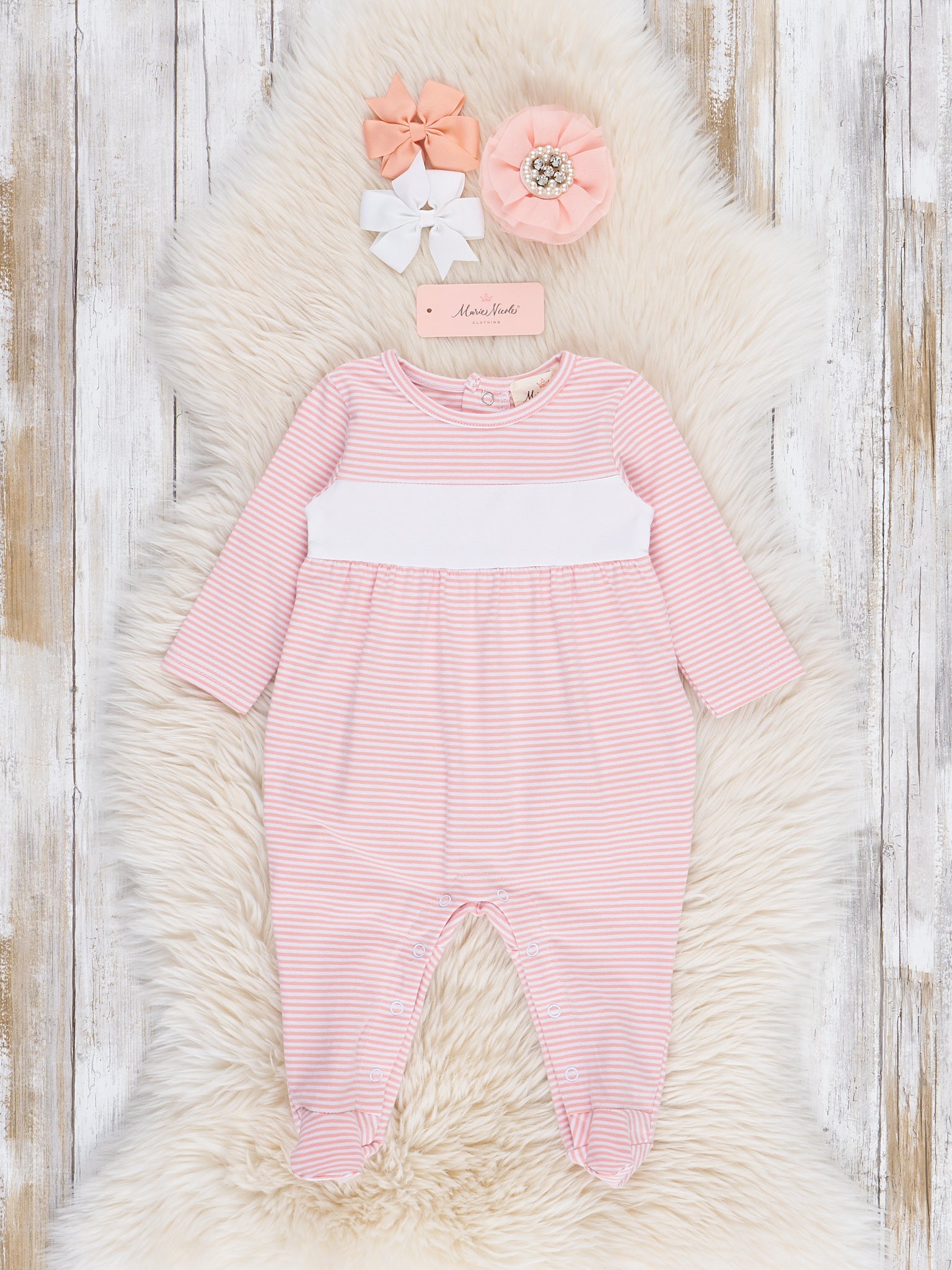 Blushing Bouquets Striped Footed Sleeper Pajamas