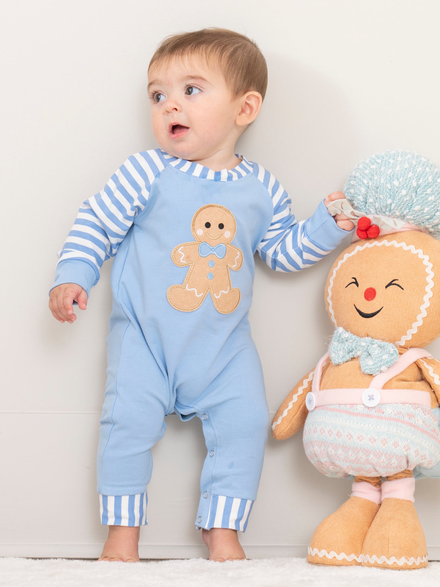 Christmas Gingerbread Romper Pajamas - Blue