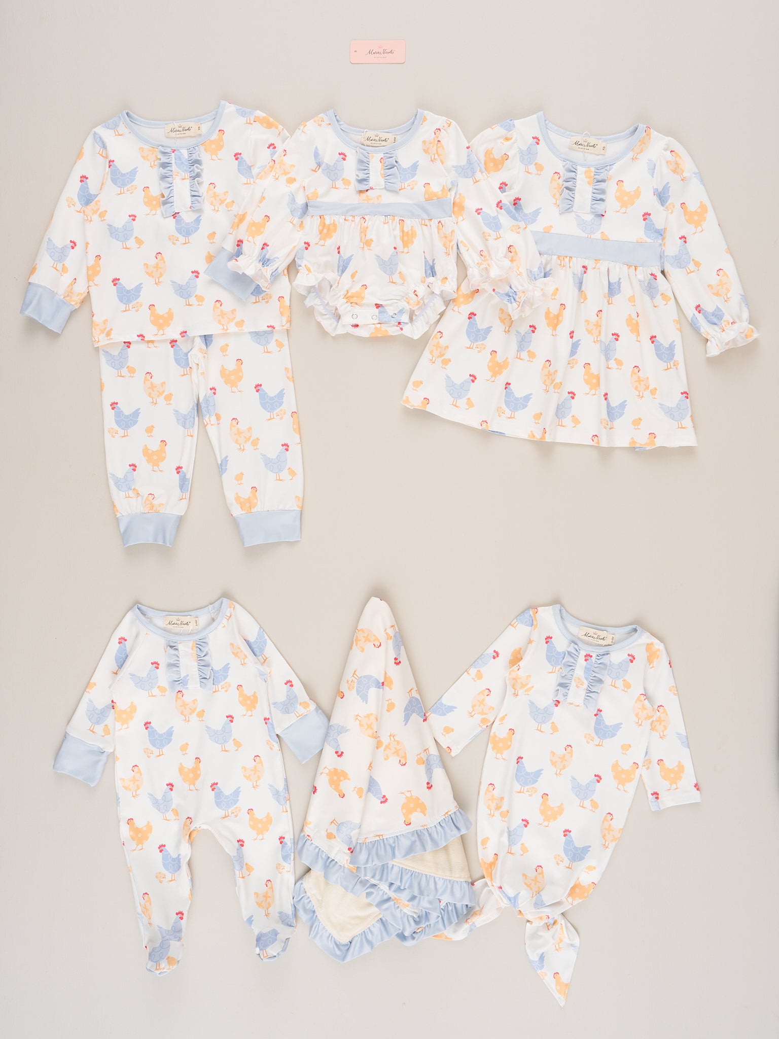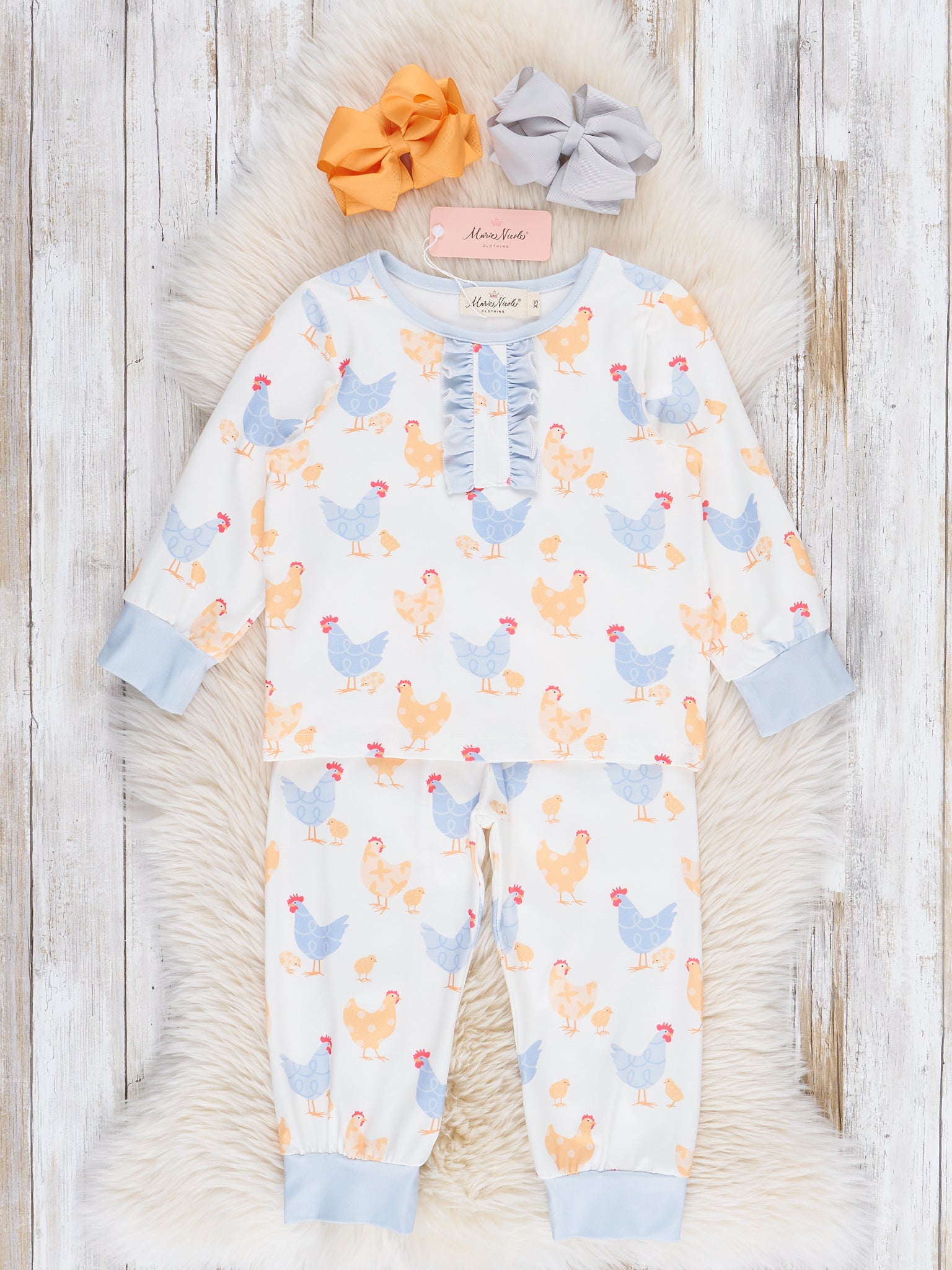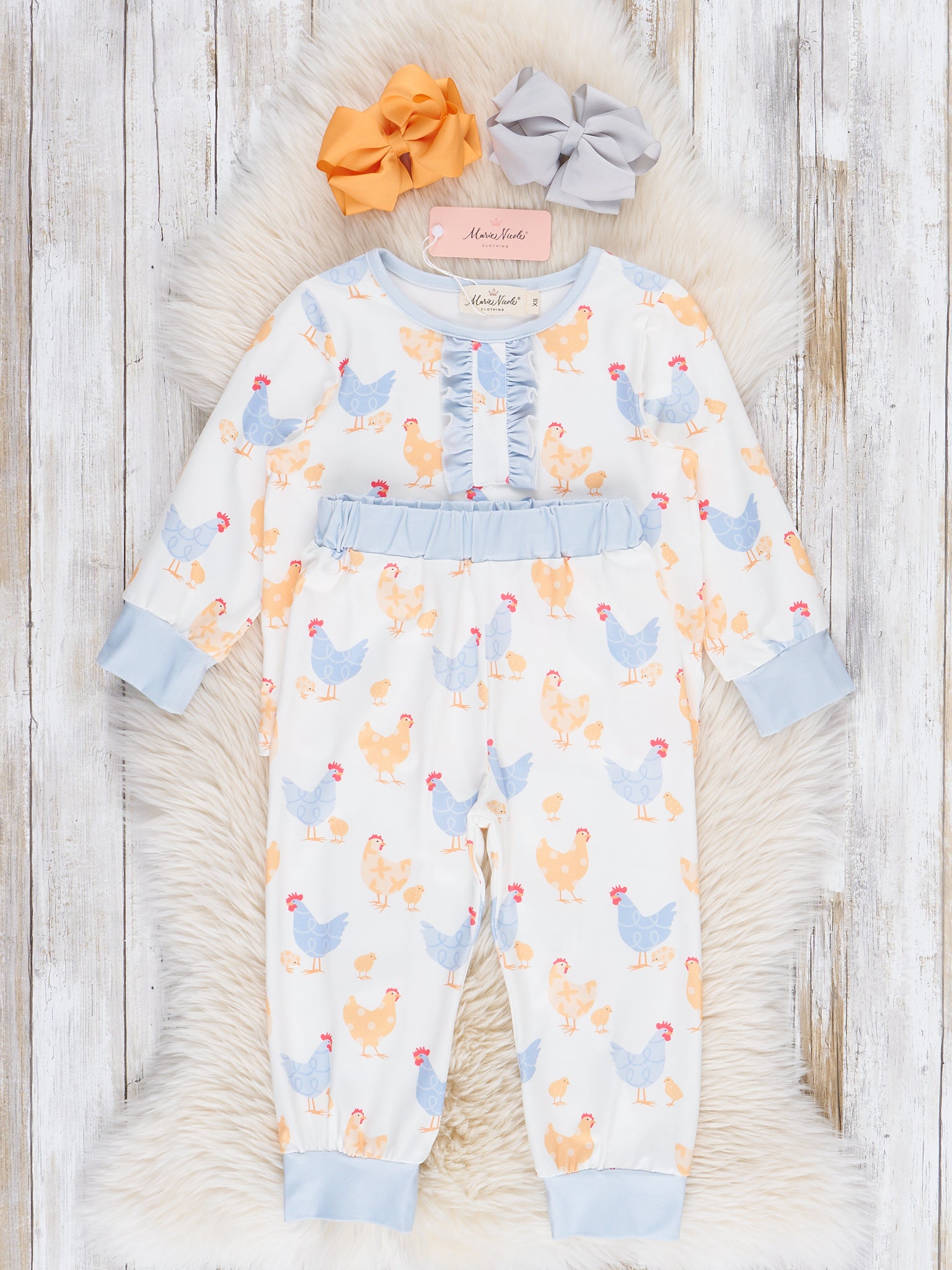The Cozy Little Chick Pajamas is a sweet and playful choice that’s perfect for everyday adventures and special occasions. Featuring charming prints and soft ruffle details, this pajama from Marie Nicole Clothing blends timeless style with comfortable wearability. Made from breathable, lightweight fabric, it’s ideal for playtime, family gatherings, and picture-perfect moments.
