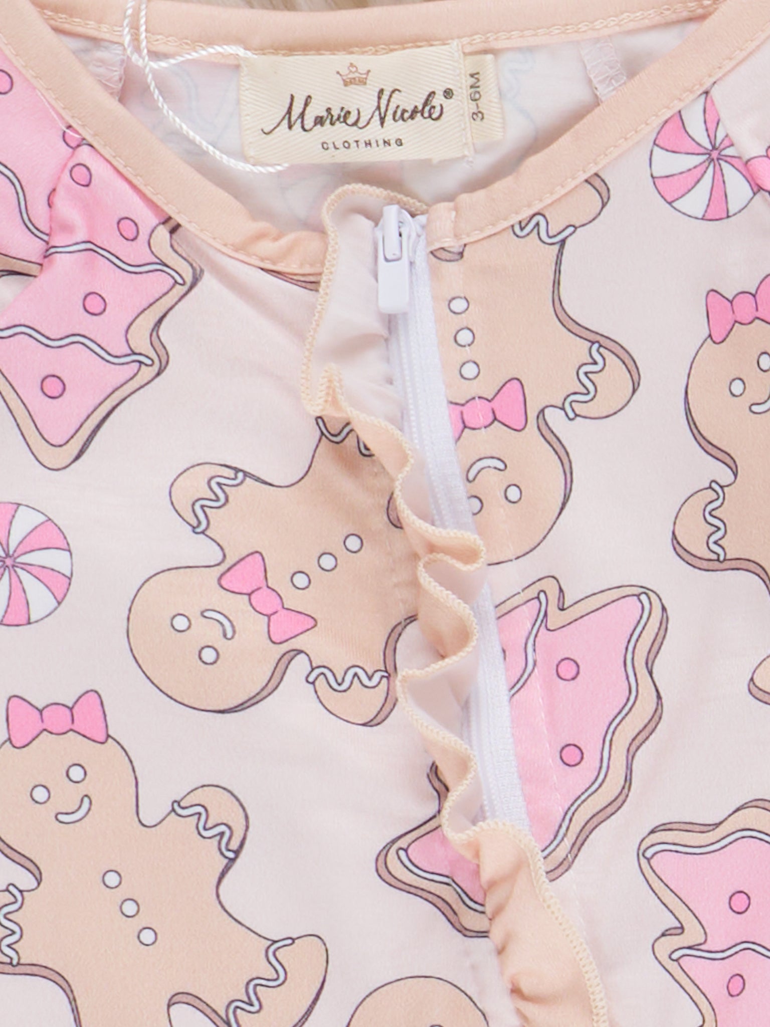 The Gingerbread Forest Sleeper Pajamas by Marie Nicole Clothing is full of decorated gingerbread men and trees. Sweet and cute, this one-piece is perfect for the holidays, whether baking cookies or celebrating!