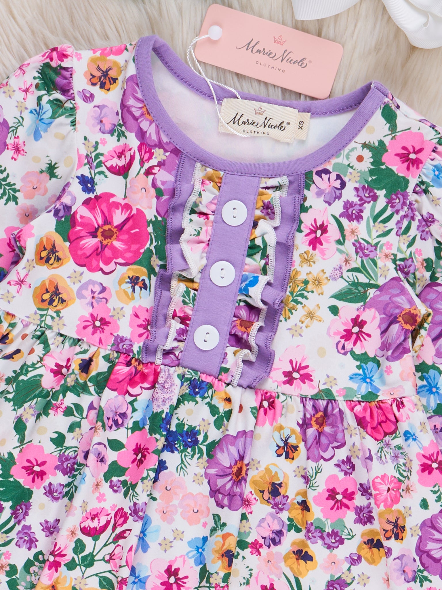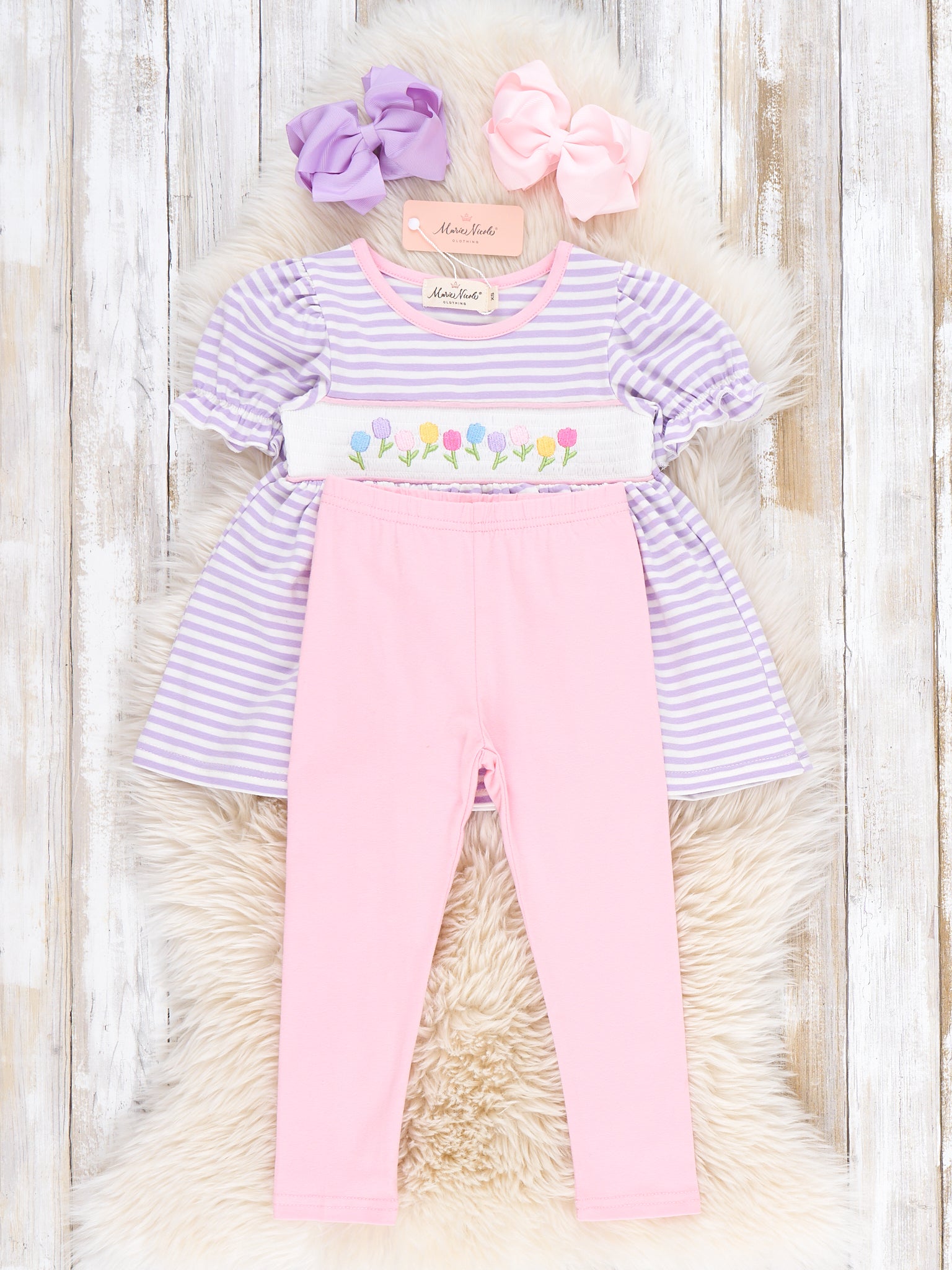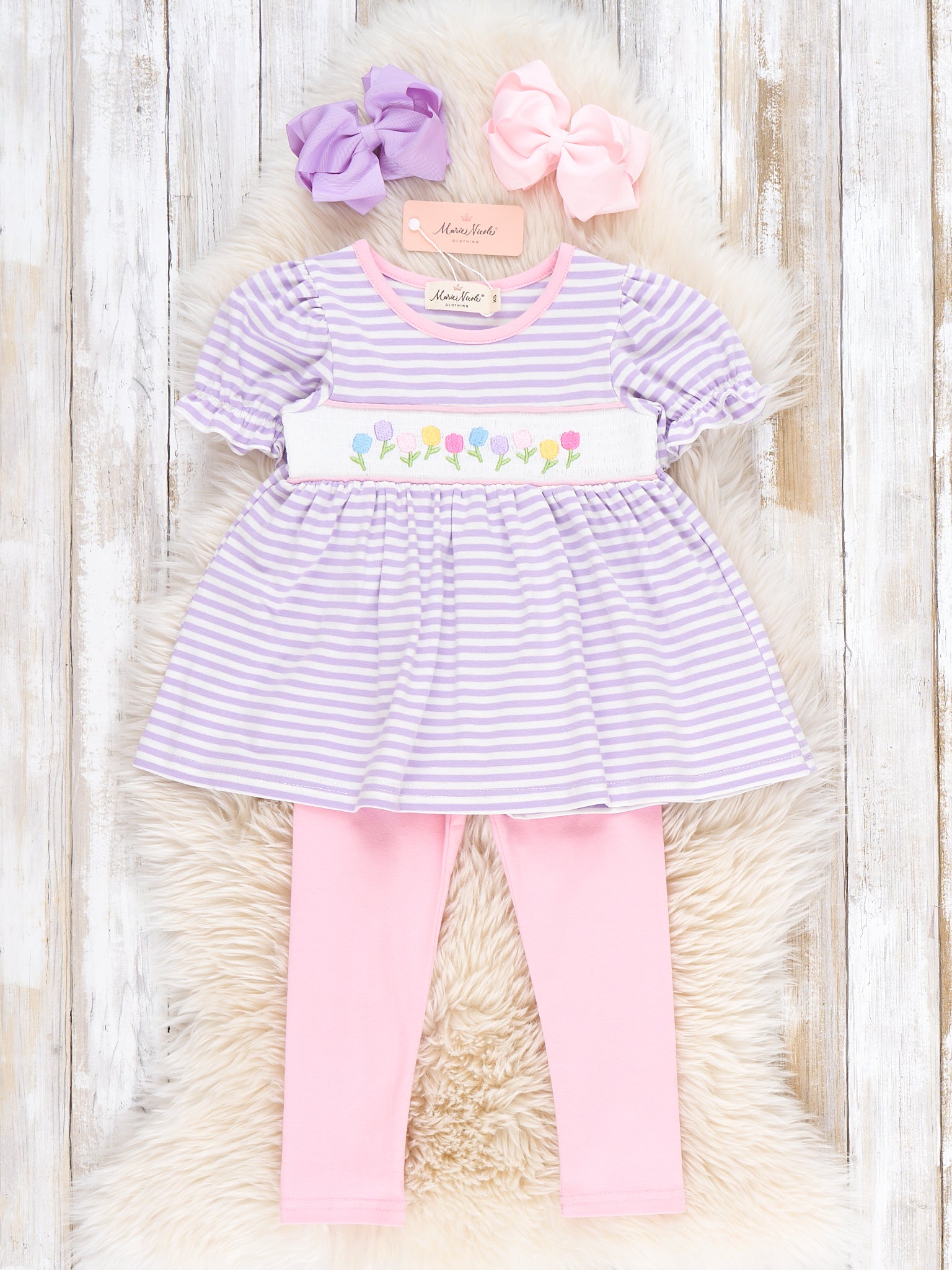 Tiny Spring Blossoms Smocked Ruffle Outfit