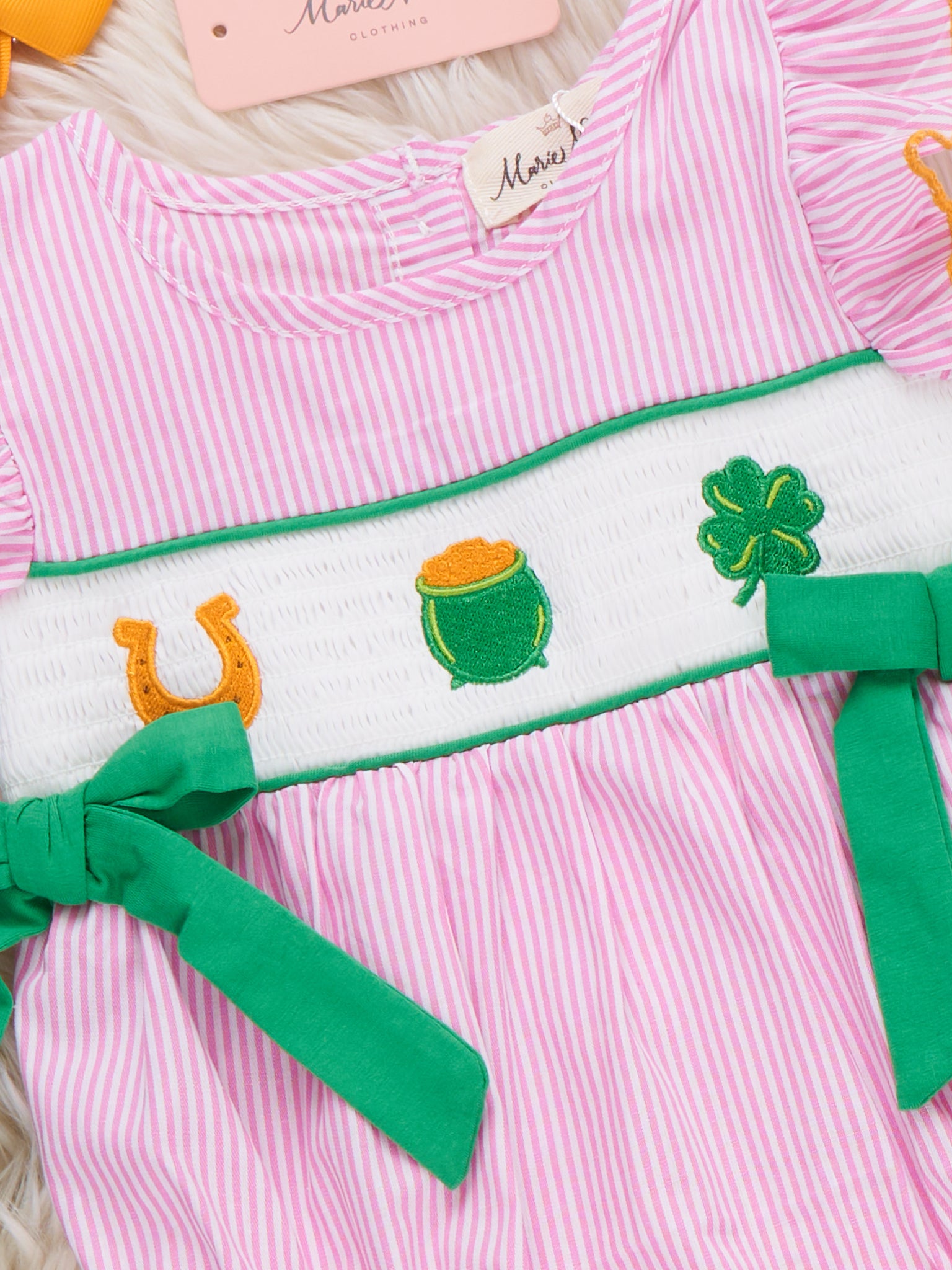 Shamrock Sweetheart Embroidered Ruffle Romper